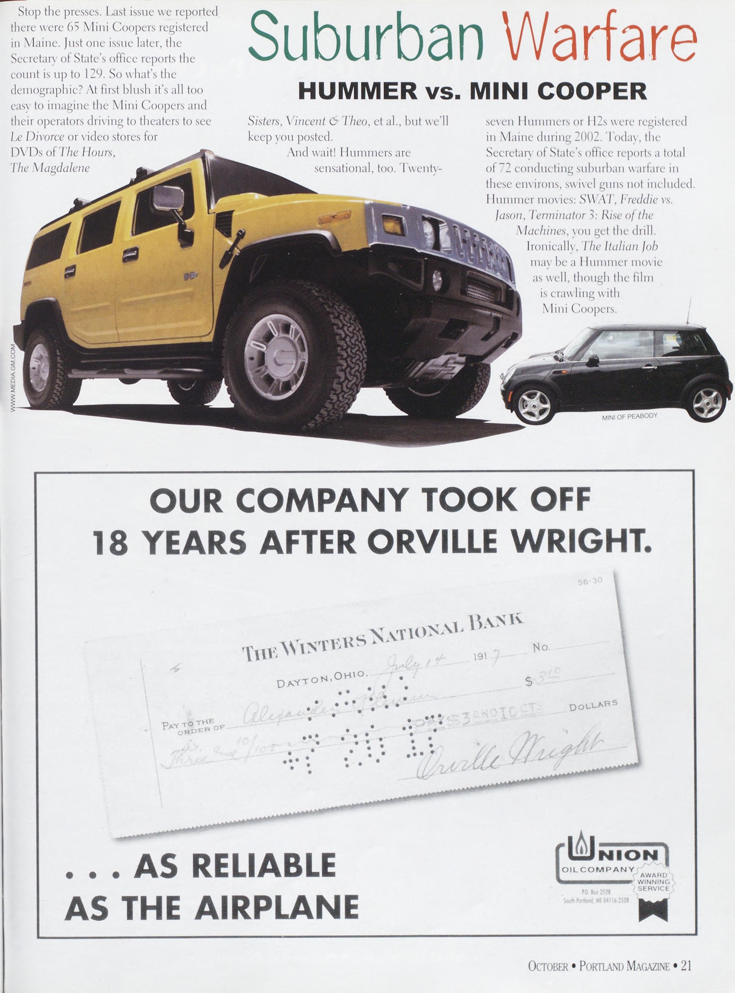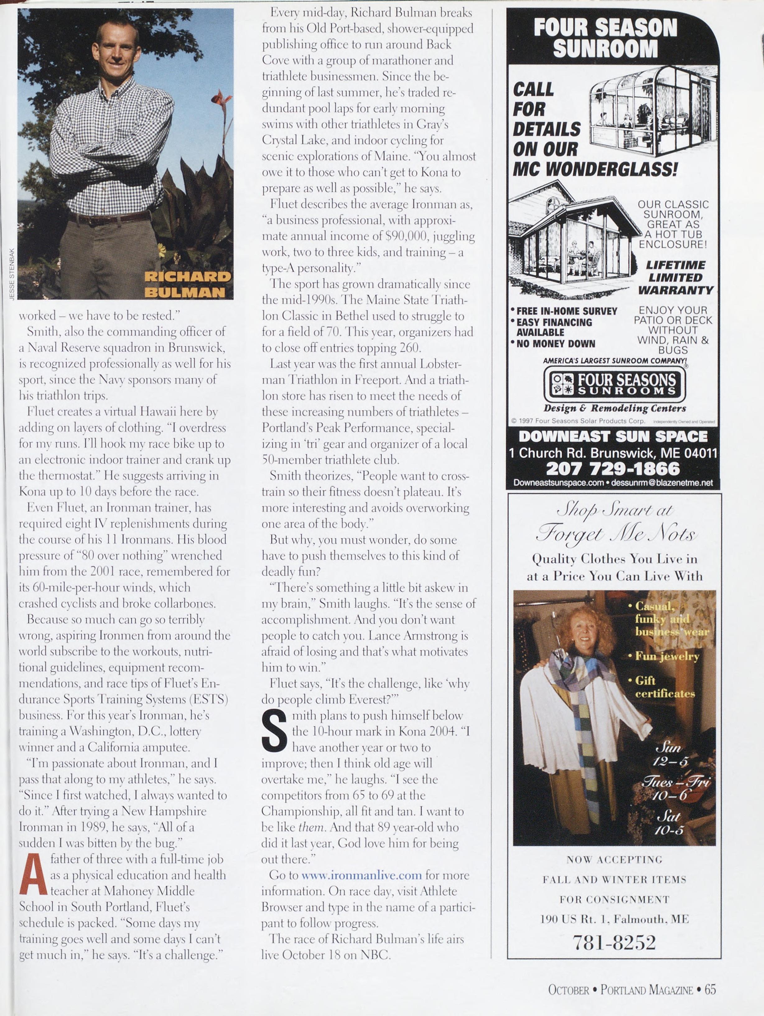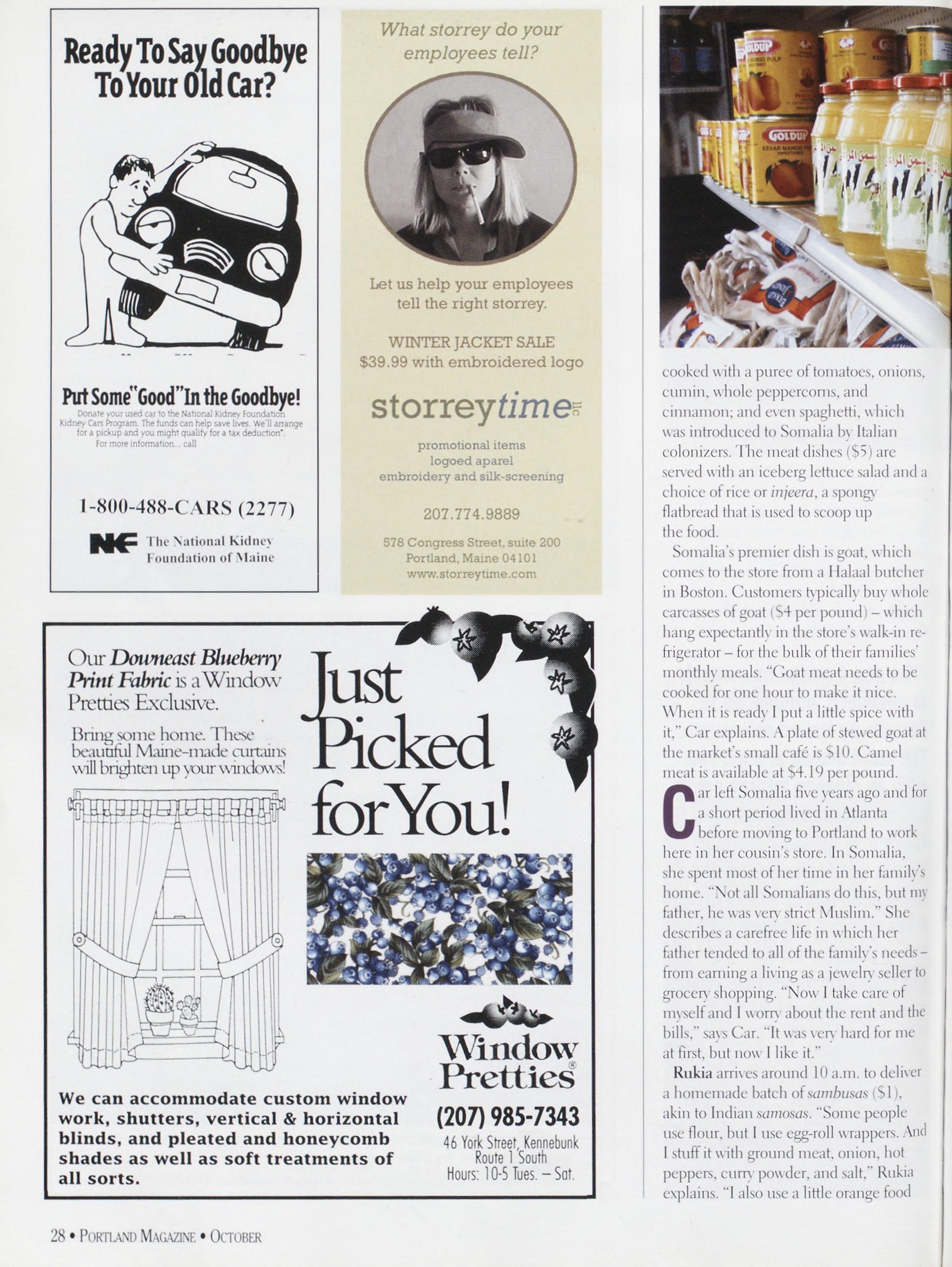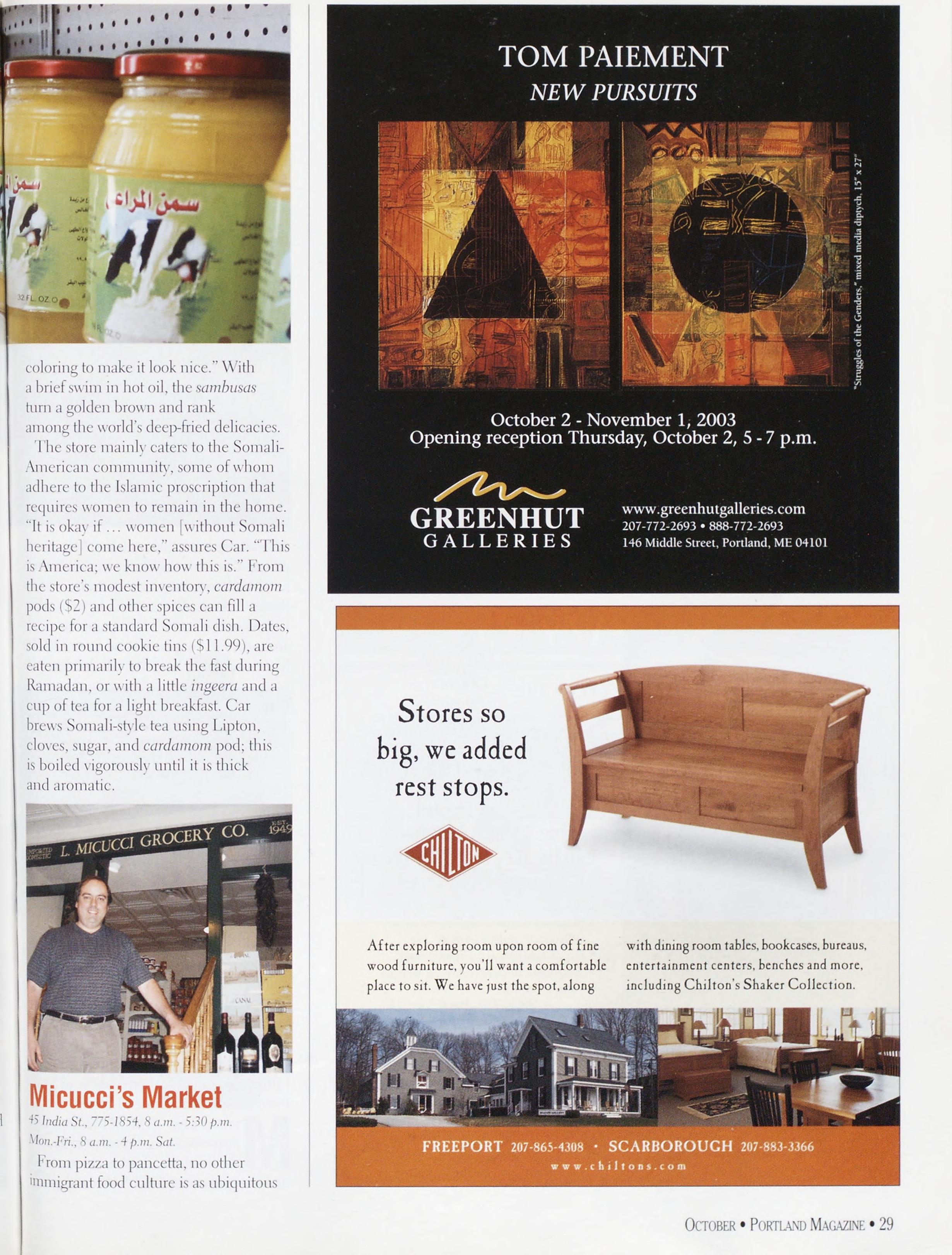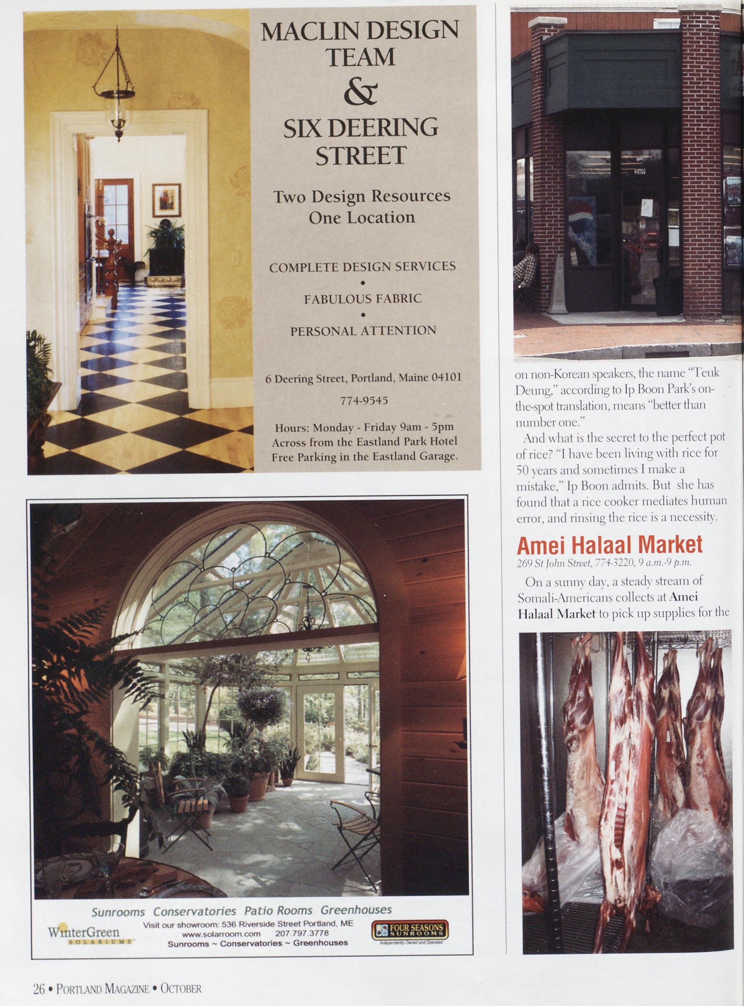NewsstandCoverDate:October2003.publishedinSeptember2003,Vol.18,No.7,copvright2003. PORTLAND MAGAZINE ismailedatthird-classmailratesinPortland,ME04101(ISSN:1073-1857). Opinionsexpressedinarticlesarethoseofauthorsanddonotrepresenteditorialpositionsof PORTLAND MAGAZINE. Letterstotheeditorarewelcomeandwillbetreatedasunconditionallyassignedfor publicationandcopyrightpurposesandassubjectto PORTLAND MAGAZINE’Sunrestrictedrighttoedit andcommenteditorially.Responsibleonlyforthatportionofanvadvertisementwhichisprinted incorrectly.Advertisersarcresponsibleforcopvrightsofmaterialsthevsubmit.Nothinginthisissue maybereprintedinwholeorinpartwithoutwrittenpermissionfromthepublishers.Submissions welcome,butwetakenoresponsibilityforunsolicitedmaterials.