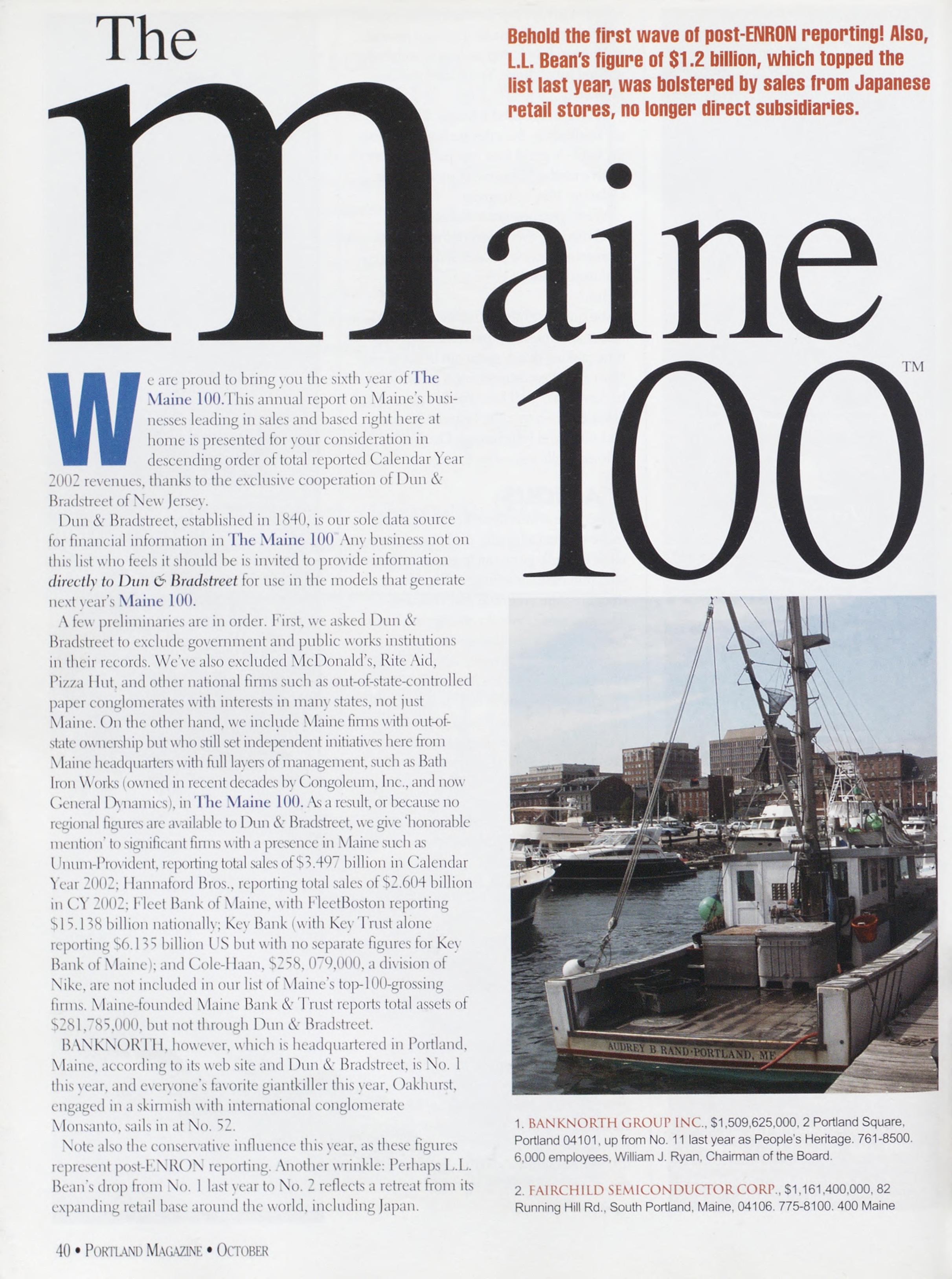 I,ookformainsurprisesthisscar aswereviewMaine'slop100firms inorderoftotalgrossrevenue StatisticsfromDun&■Bradstreet