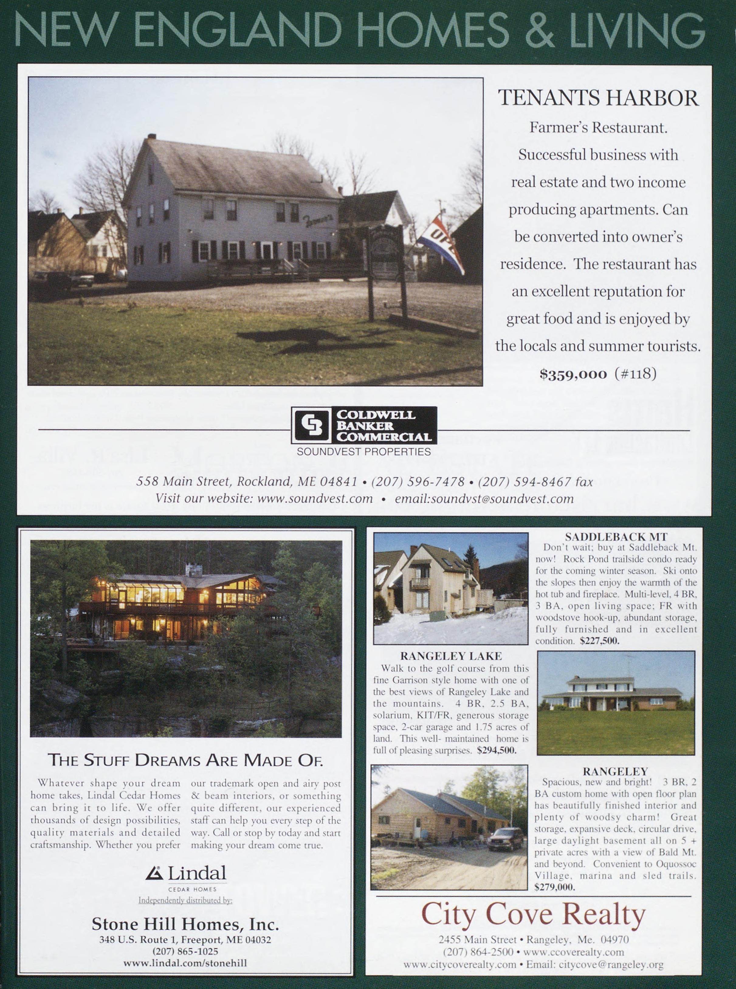 TENANTS HARBOR Farmer’sRestaurant. Successfulbusinesswith realestateandtwoincome producingapartments.Can beconvertedintoowner’s residence.Therestauranthas anexcellentreputationfor greatfoodandisenjoyedby thelocalsandsummertourists.