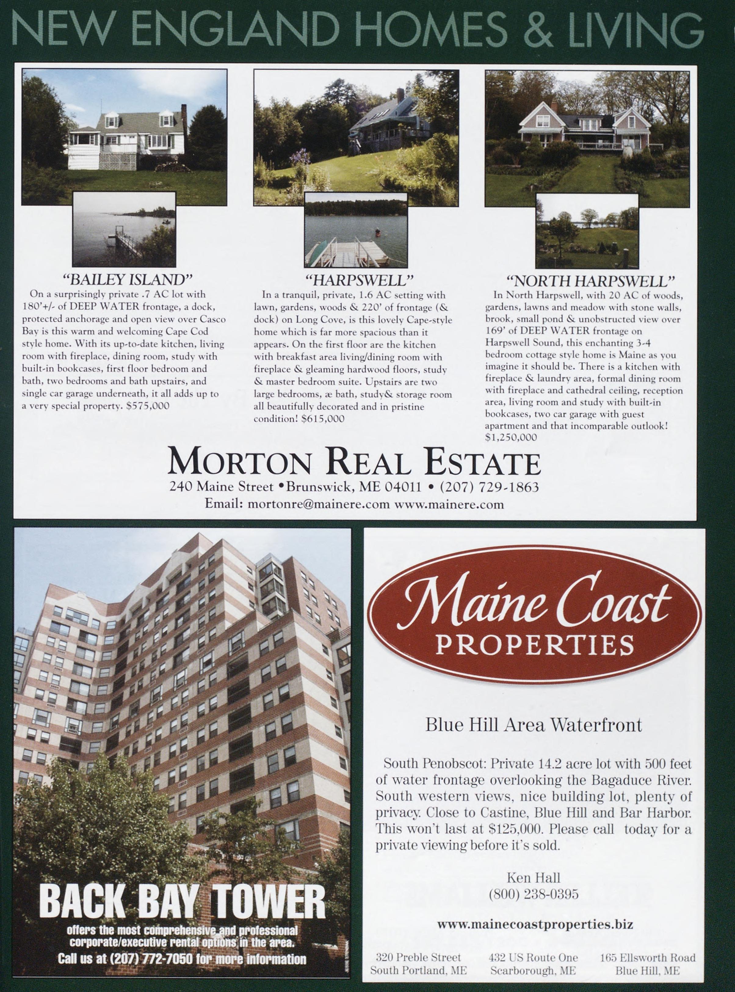 NORTH HARPSWELL” InNorthHarpswell,with20ACofwoods, gardens,lawnsandmeadowwithstonewalls, brook,smallpond&unobstructedviewover 169* of DEEP WATER frontage on HarpswellSound,thisenchanting3-4 bedroomcottagestylehomeisMaineasyou imagineitshouldbe.Thereisakitchenwith fireplace&laundryarea,formaldiningroom withfireplaceandcathedralceiling,reception area,livingroomandstudywithbuilt-in bookcases,twocargaragewithguest apartmentandthatincomparableoutlook! $1,250,000