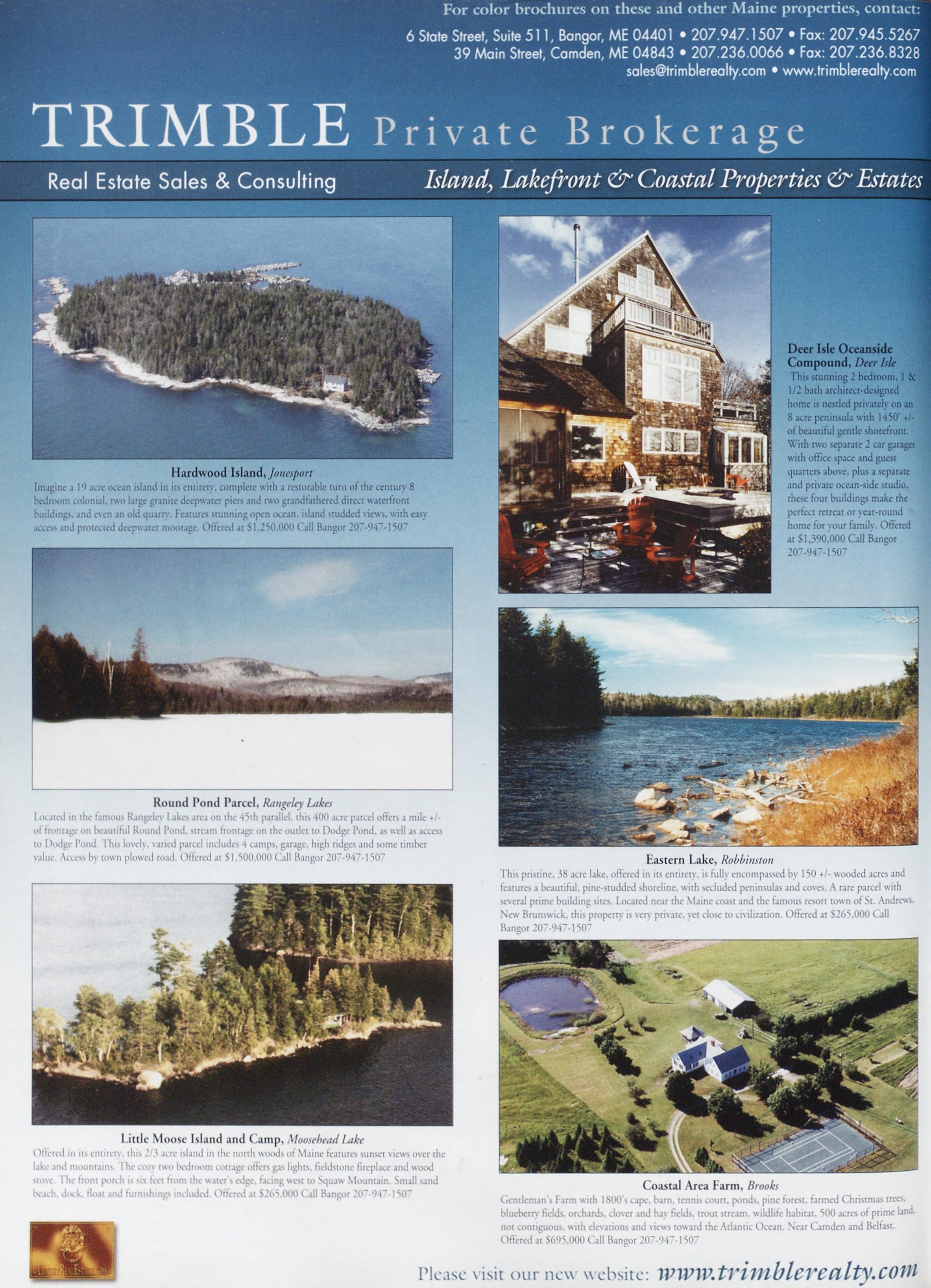 TRIMBLE Private Brokerage Real Estate Sales & Consulting^ HardwoodIsland, Jonesport ImagineaI 1)acreoceanislandinitsentirety,completewitharestorableturnofthecentury8 bedroomcolonial,twolargegranitedeepwaterpiersandtwograndfathereddirectwaterfront buildings,andevenanoldquarry.Featuresstunningopenocean.islandstuddedviews,witheasy accessandprotecteddeepwatermoorage.Otteredat$1,250,000CallBangor20“-94“-150~