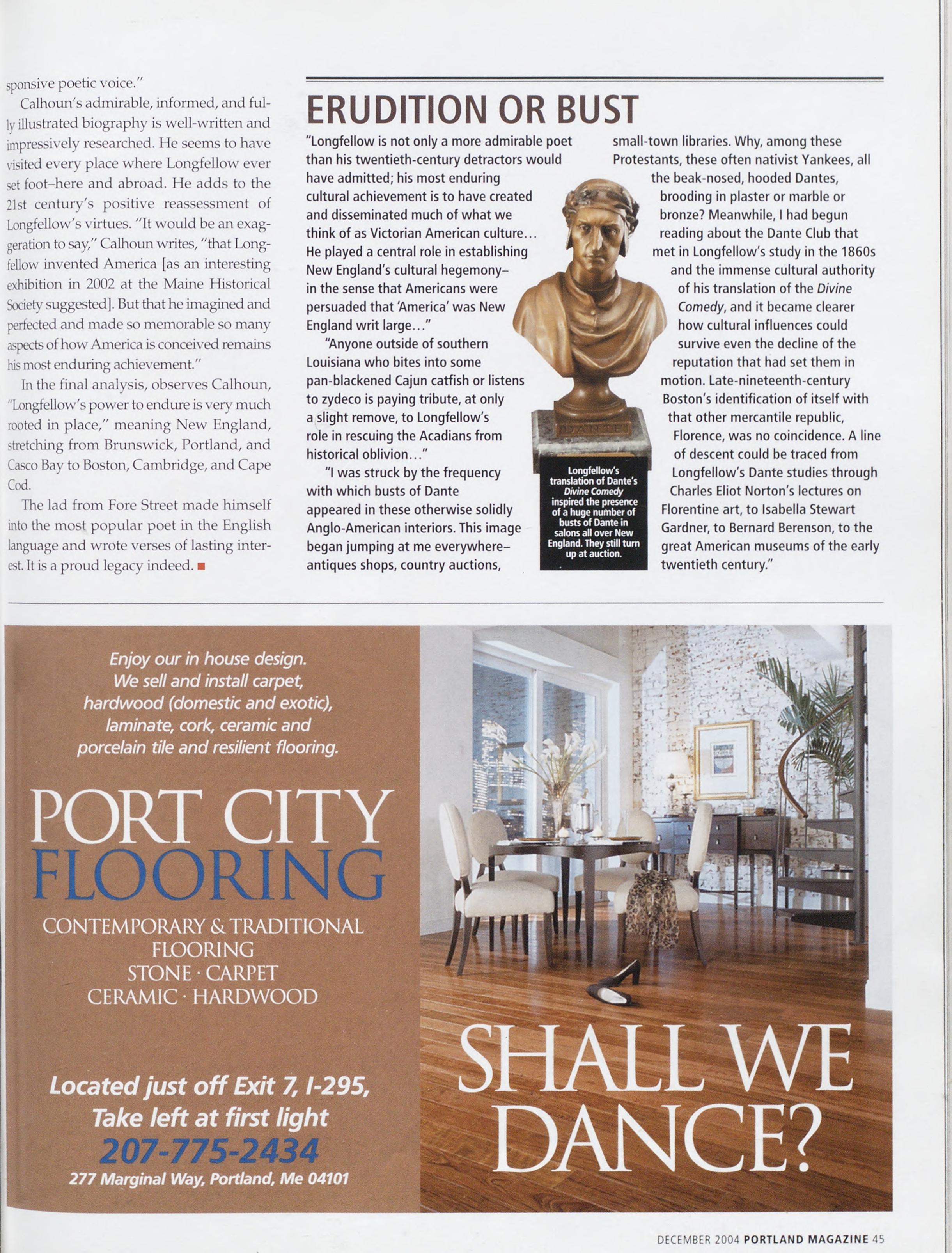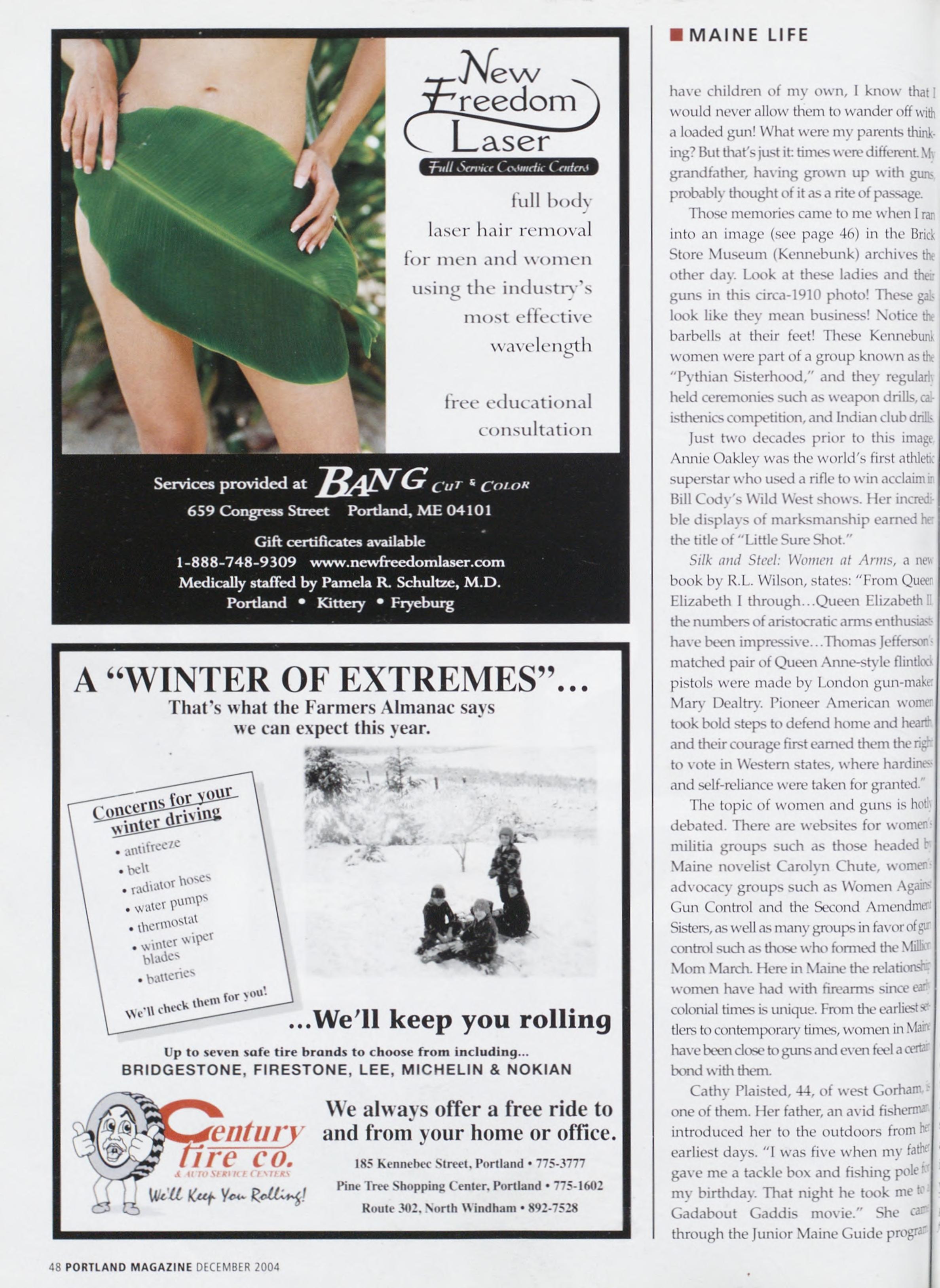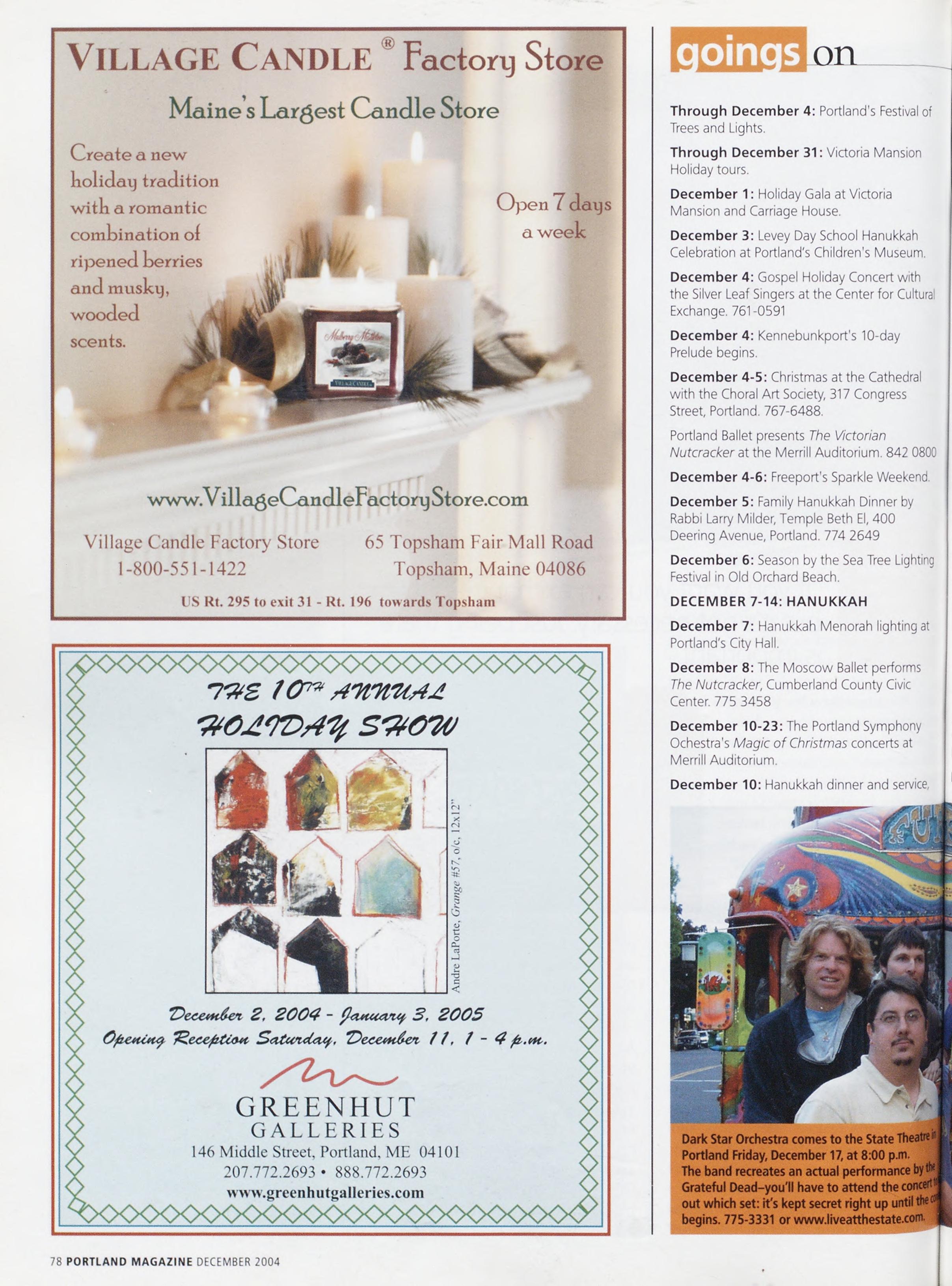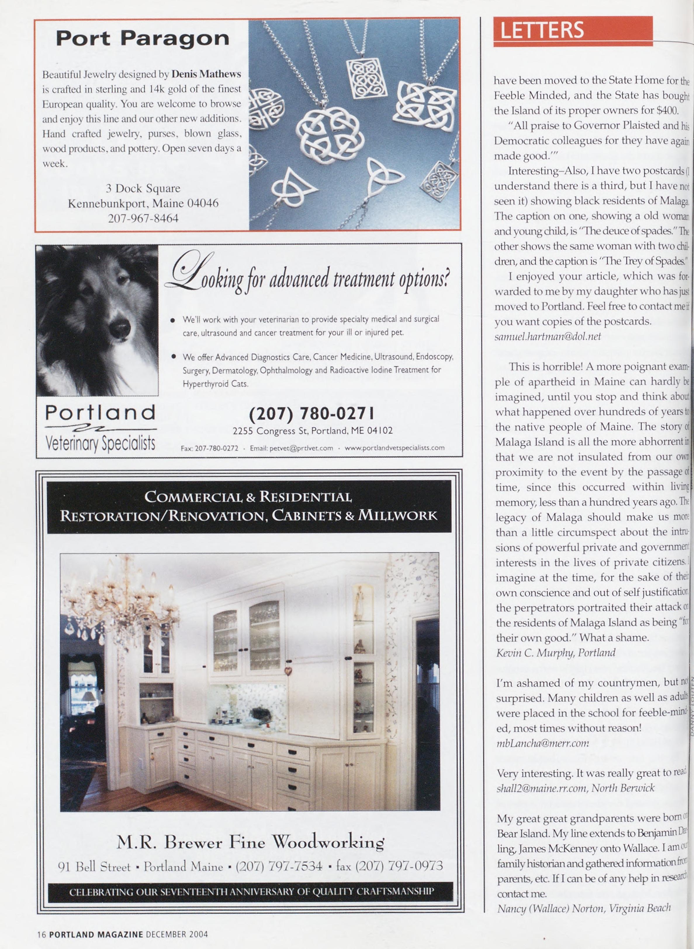 Thank you PORTLAND MAGAZINE forprinting "Shudder Island" [October 2004] but more emphatically, thank you Jan Grieco for using a critical history aproach to how Maine has developed over the years. It is easy for Mainers to sit on the old history laurels that we helped free slaves, but the reality'isthatwehavenoideaofwhatreal¬ ly went on during those times. Things in the pastremainthereandruntireriskofbeing repeated if we do not uncover them. Un¬ derstanding history for history's sake is a precious commodity and it's important peopleseeit.