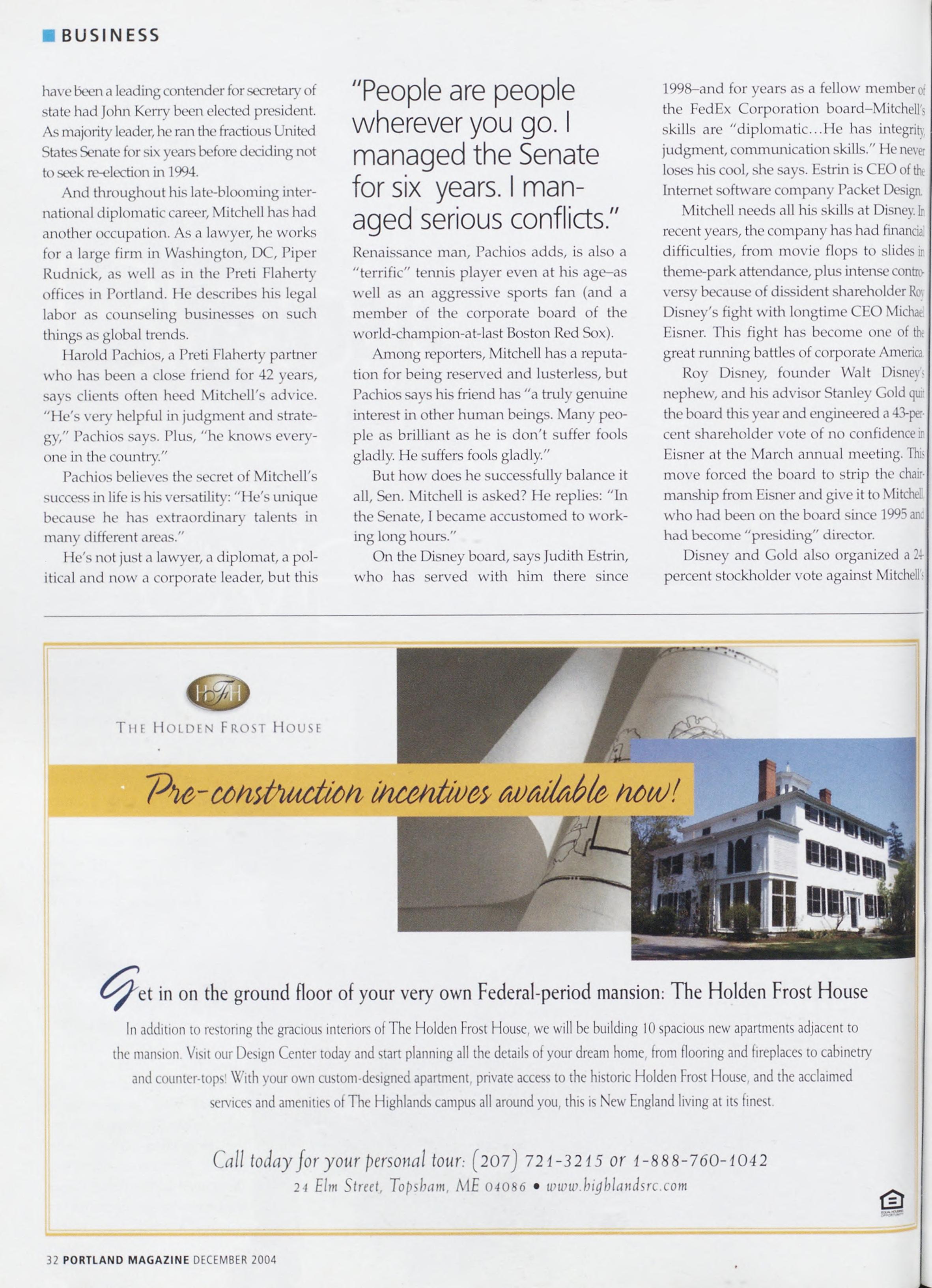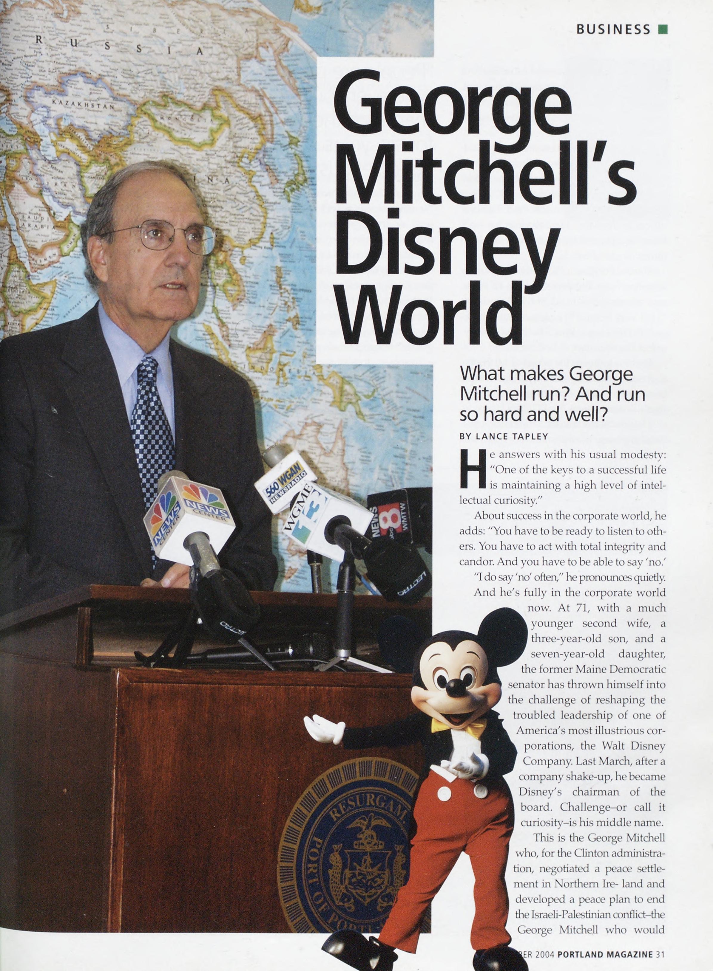 Maine's former Senator George Mitchell on the Magic Kingdom. By Lance Tapley Longfellow:sexyagain