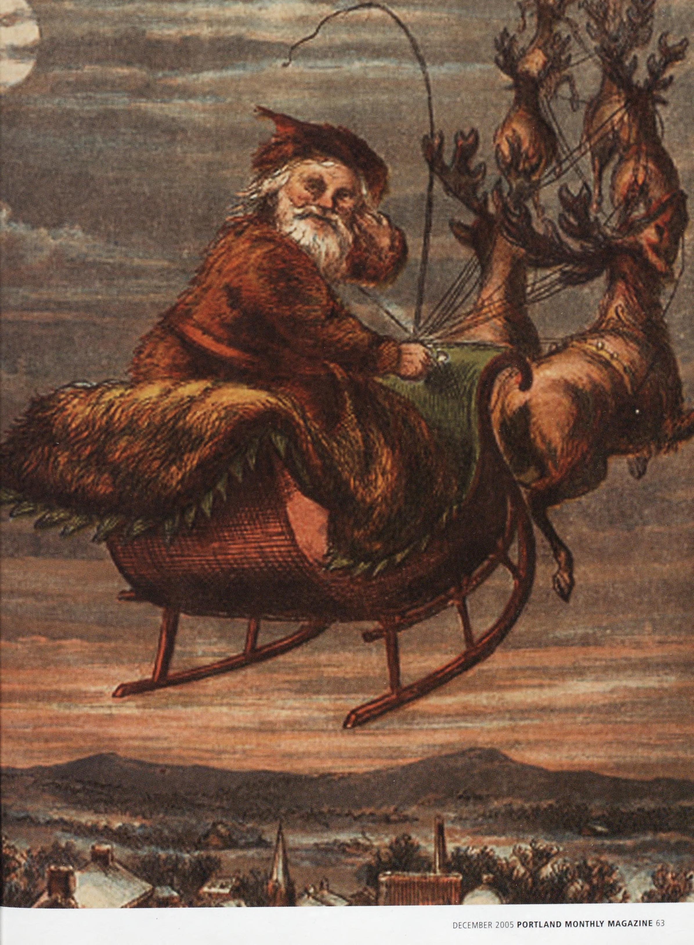 Maine Narrow Gauge Railroad & Museum, 58ForeStreet,Portland.SantaFest weekends through December 23, with added ridesChristmasweek.Steamtrainridealong CascoBay,lighteddisplays,refreshments,gifts, decoratedtrainmuseum,andpictureswith Santa. 828-0814 or www.mngrr.org