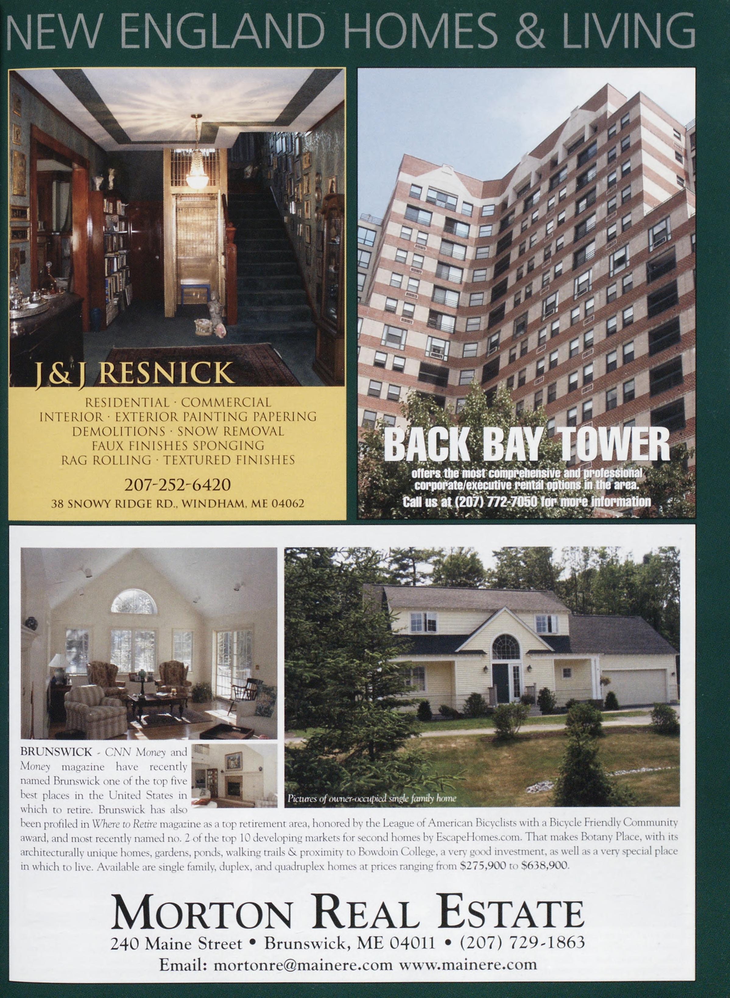 beenprofiledin WheretoRetire magazineasatopretirementarea,honoredbytheLeagueofAmericanBicyclistswithaBicycleFriendlyCommunity award,andmostrecentlynamedno.2ofthetop10developingmarketsforsecondhomesbyEsctipeHomes.com.TharmakesBotanyPlace,withits architecturallyuniquehomes,gardens,ponds,walkingtrails&proximitytoBowdoinCollege,averygtxxlinvestment,aswellasaven-specialplace inwhichtolive.Availablearesinglefamily,duplex,andquadruplexhomesatpricesrangingfrom S275,9OOroS638,900.