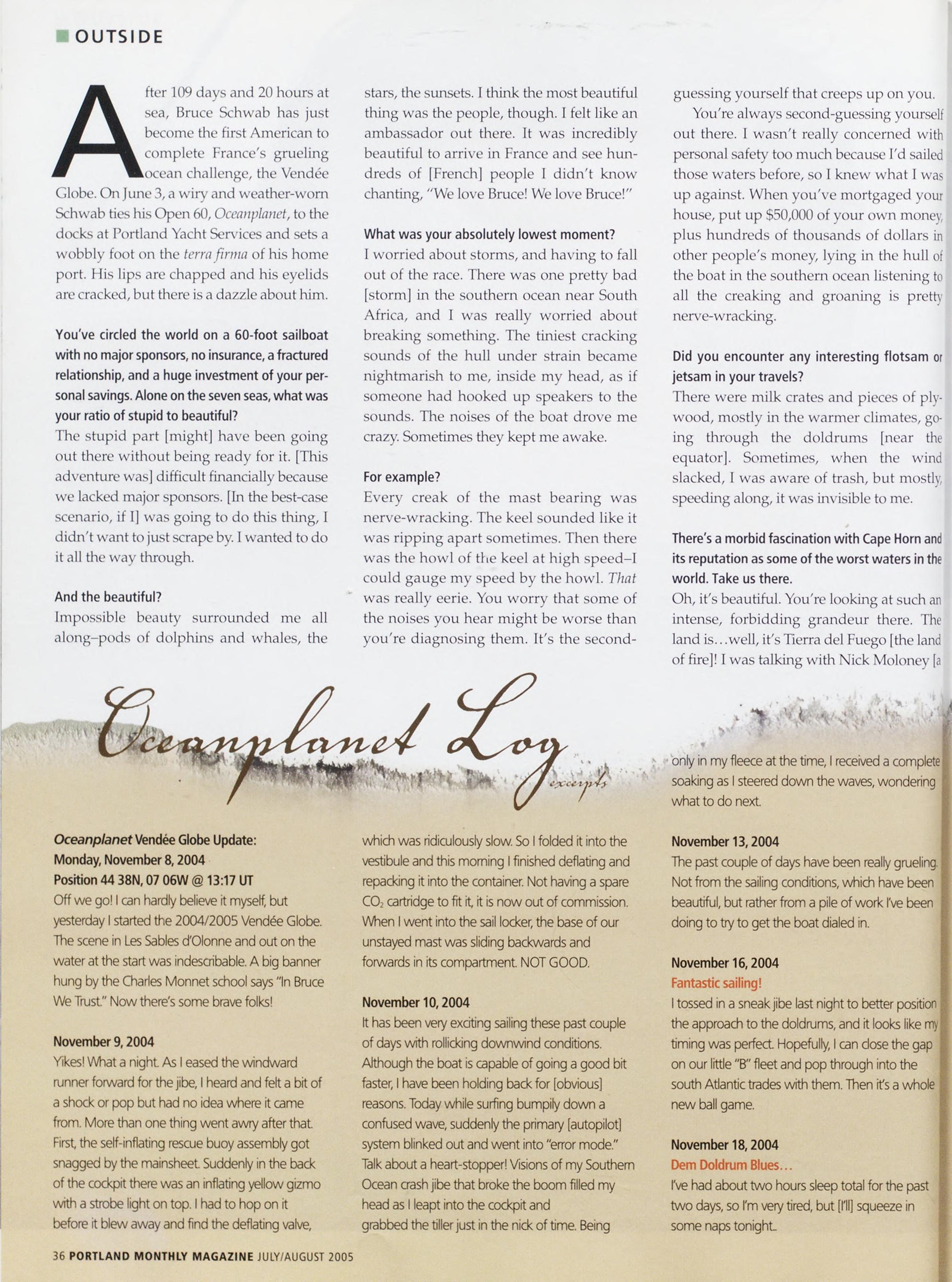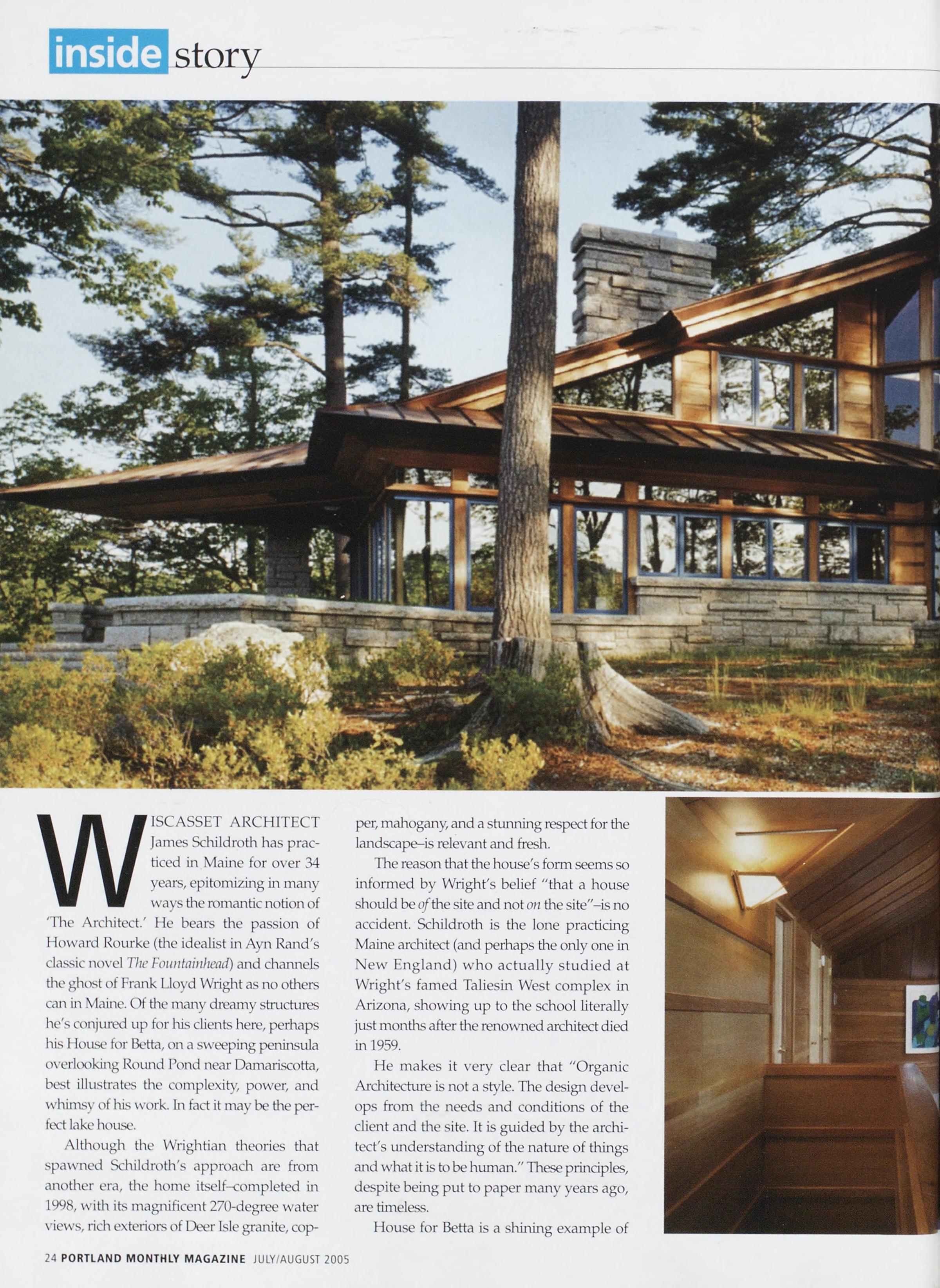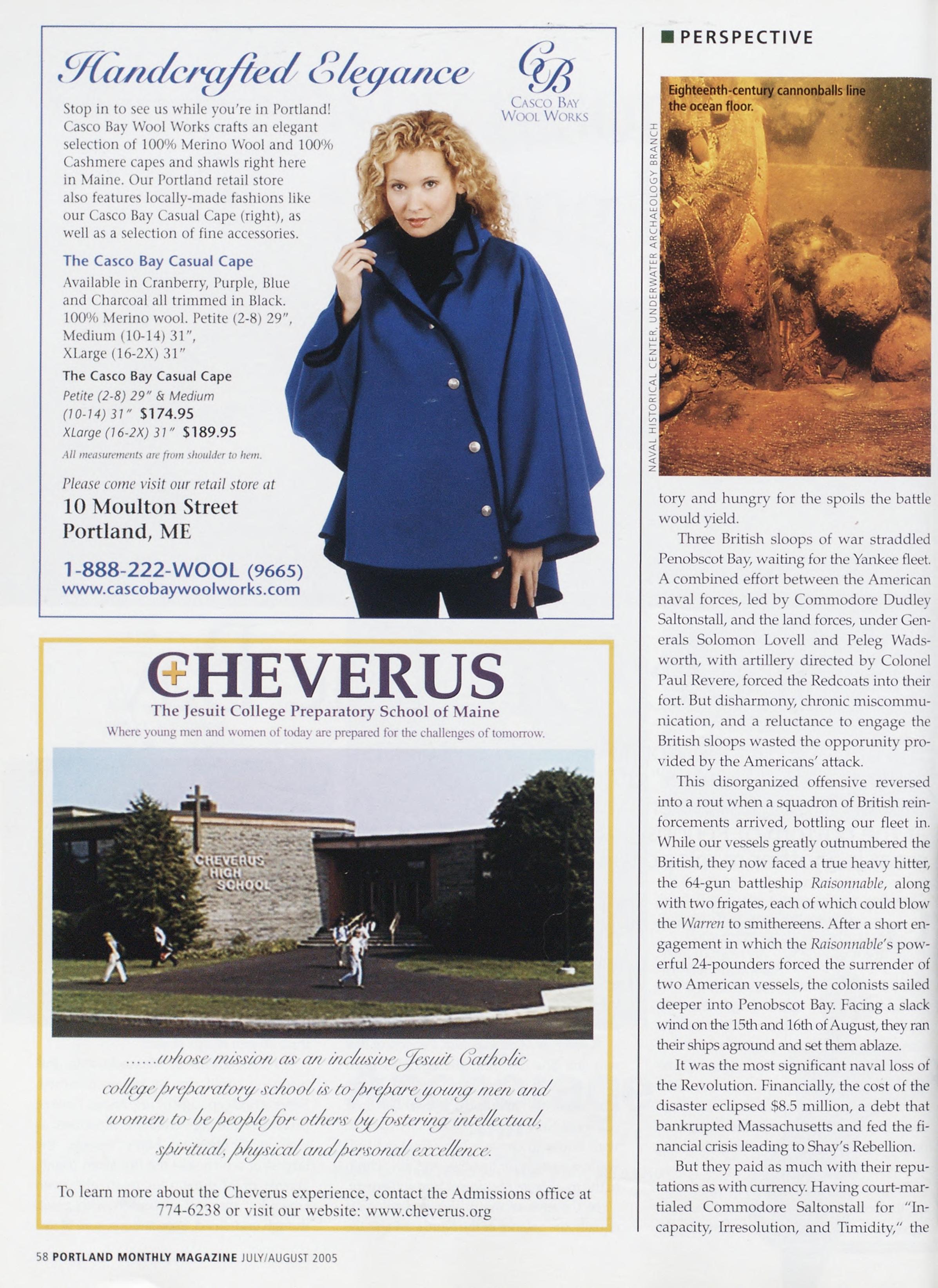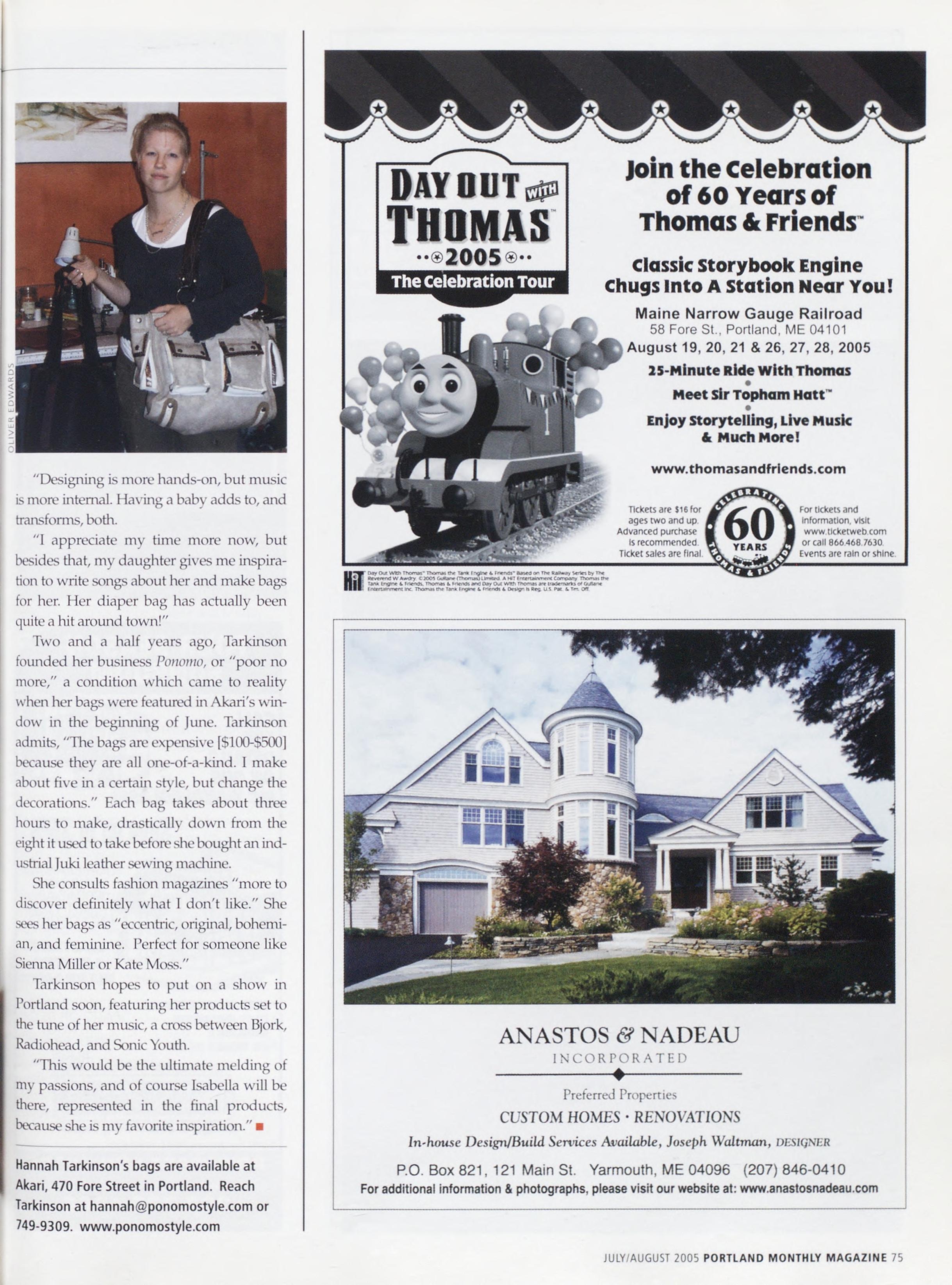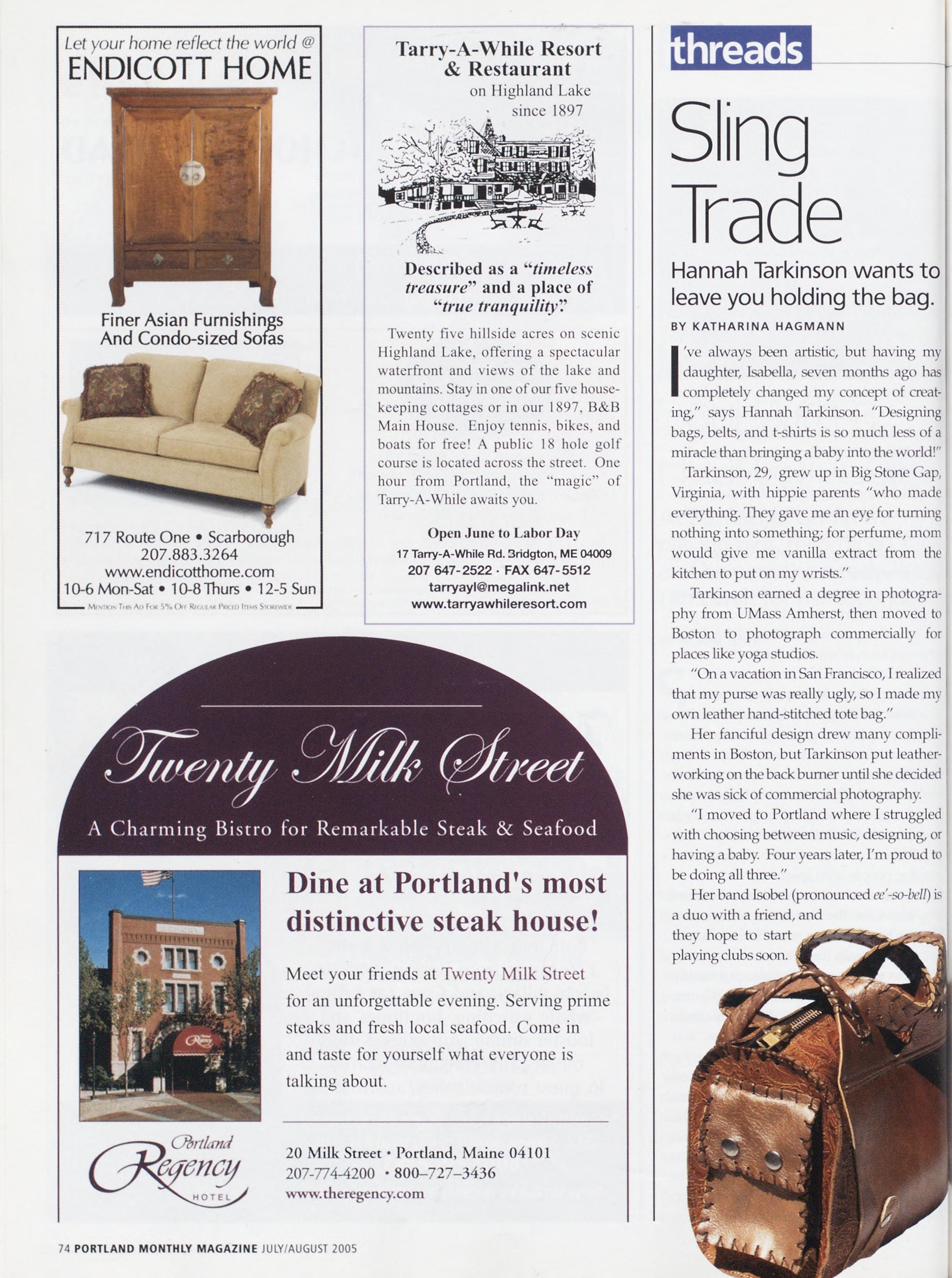 Newsstand Cover Date: July/August 2005, published in June 2005, Vol. 20, No. 5, copyright 2005.Portland Magazine ismailedatthird-class mail rates in Portland, ME 04101 (ISSN: 1073-1857). Opinions expressed in articles are those of authors and do not represent editorial positions ofPortland Magazine. Letters to the editor are welcome and will be treated as unconditionally assigned for publication and copyright pur¬ poses and as subject toPortland Magazine's unrestrictedrighttoedit and comment editorially. Responsible only for that portion of any advertisement which is printed incorrectly. Advertisers are responsible for copyrights of materials they submit. Nothing in this issue may be reprinted in whole or in part without written permission from the pub¬ lishers. Submissions welcome, but we take no responsibility for unso¬ licitedmaterials.