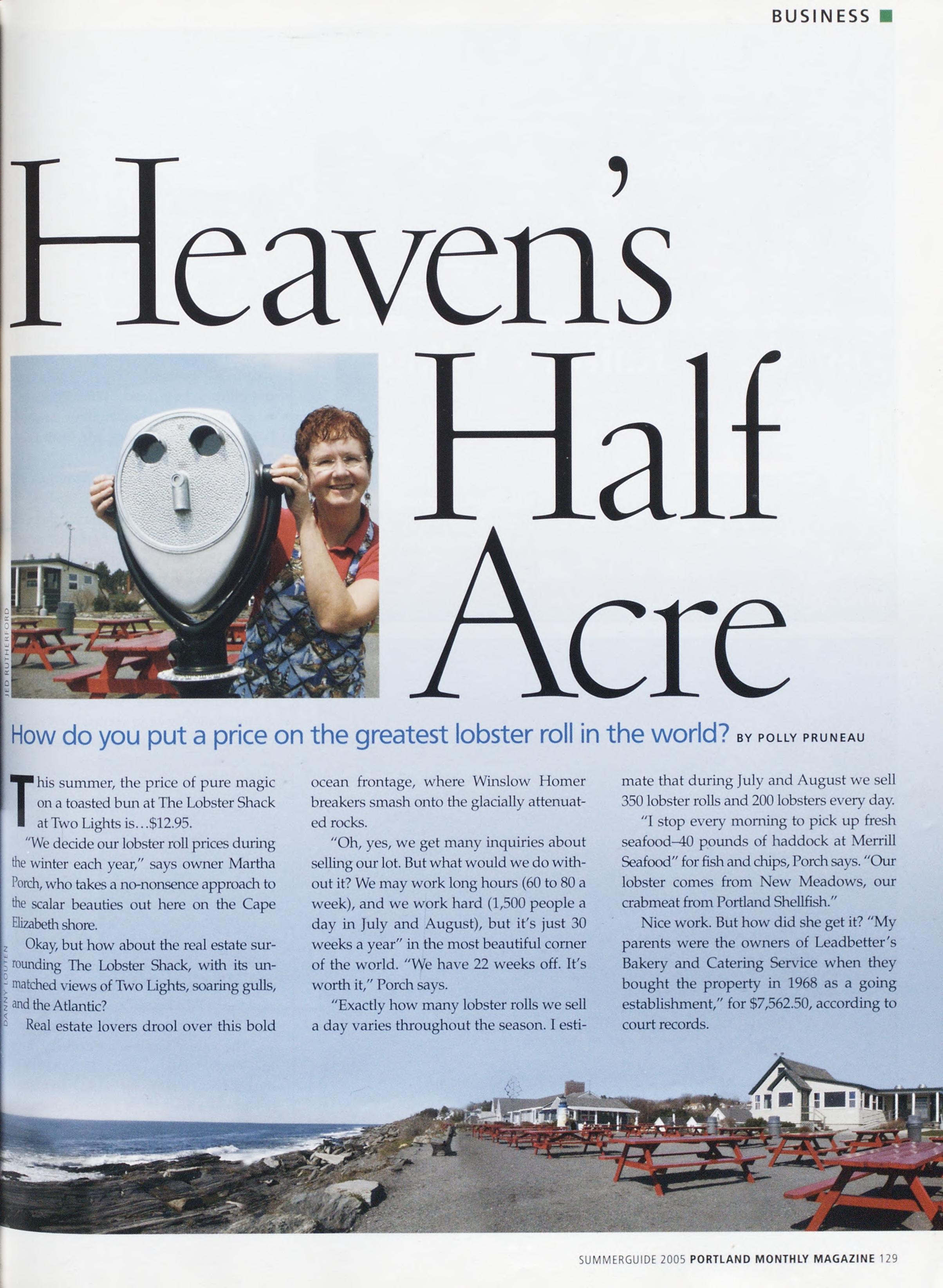 129Heaven'sHalfAcre Canyouyouputapriceonthe world'sgreatestlobsterroll? ByPollyPruneau