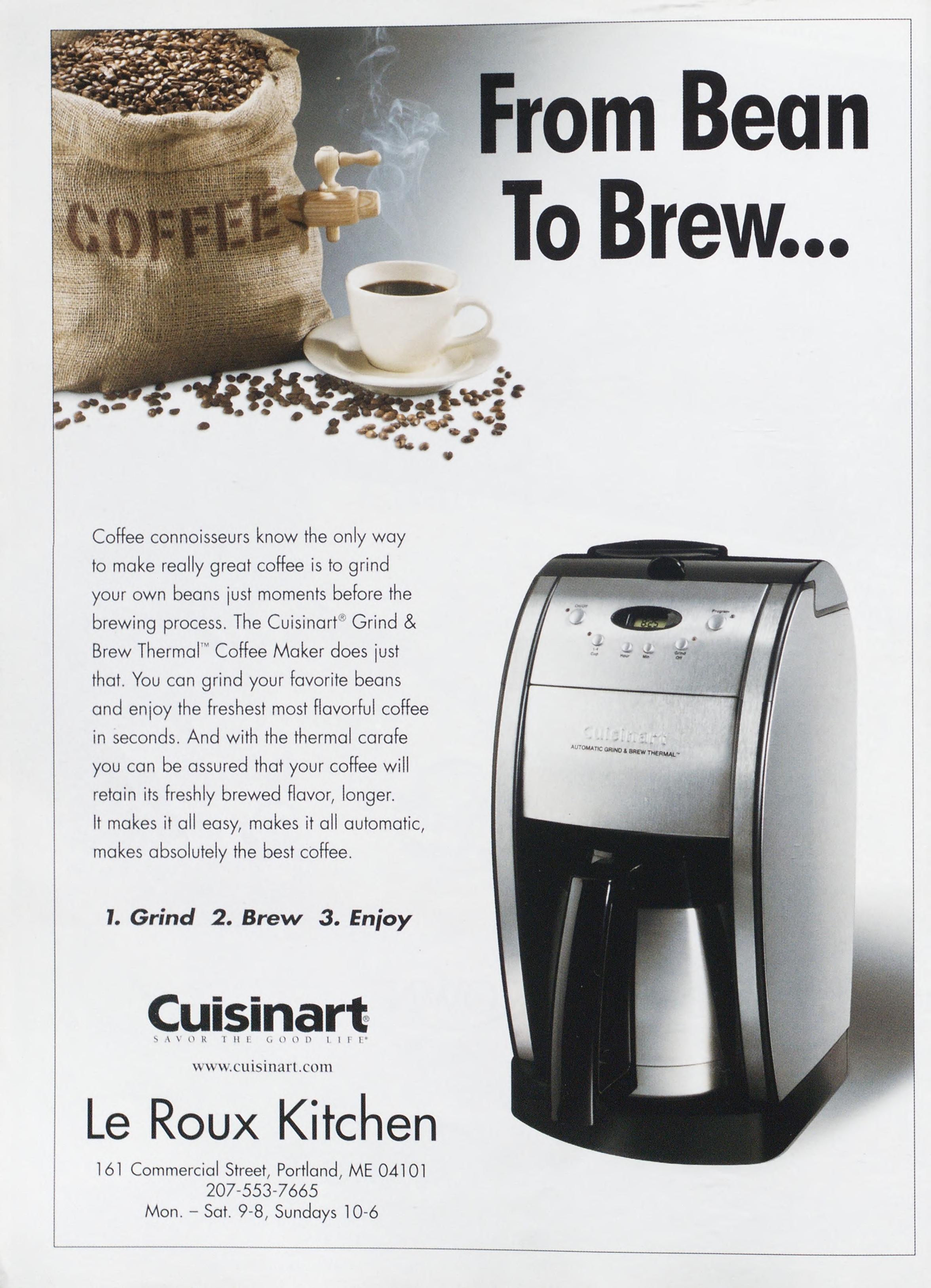 Coffee connoisseurs know the only way tomakereallygreatcoffeeistogrind your own beans just moments before the brewing process. The Cuisinart® Grind & Brew Thermal™ Coffee Maker does just that.Youcangrindyourfavoritebeans andenjoythefreshestmostflavorfulcoffee inseconds.Andwiththethermalcarafe youcanbeassuredthatyourcoffeewill retainitsfreshlybrewedflavor,longer. Itmakesitalleasy,makesitallautomatic, makesabsolutelythebestcoffee.