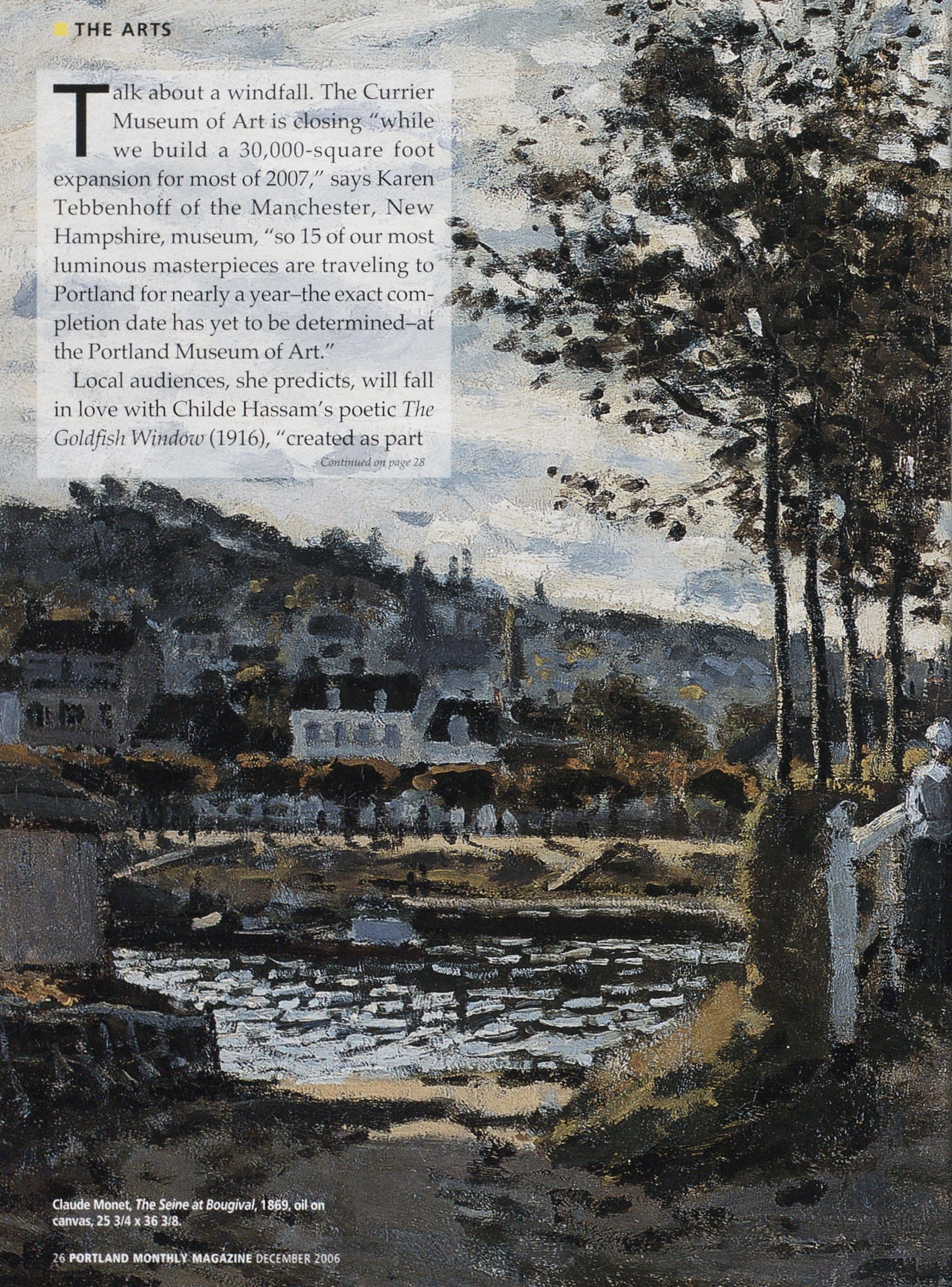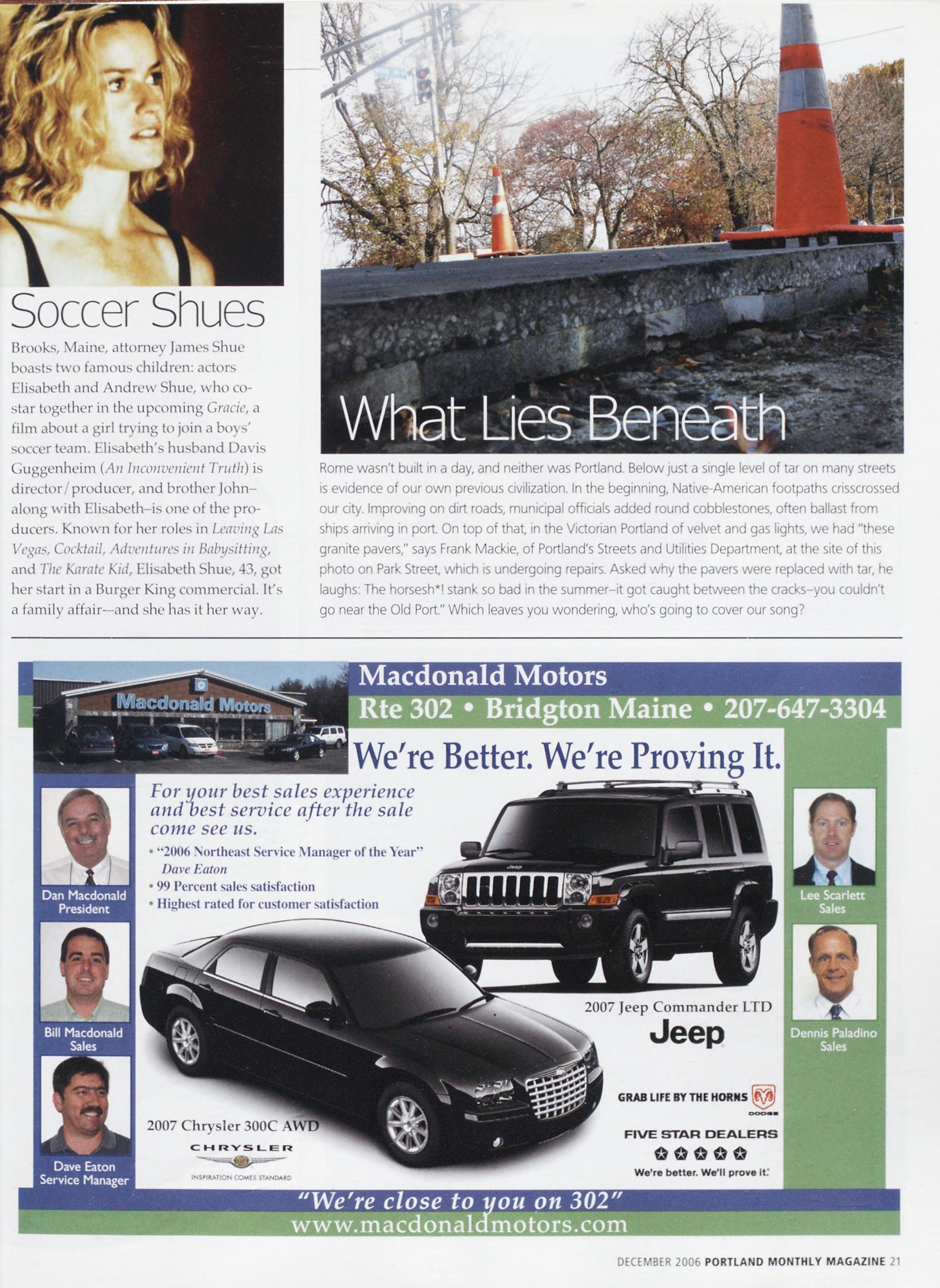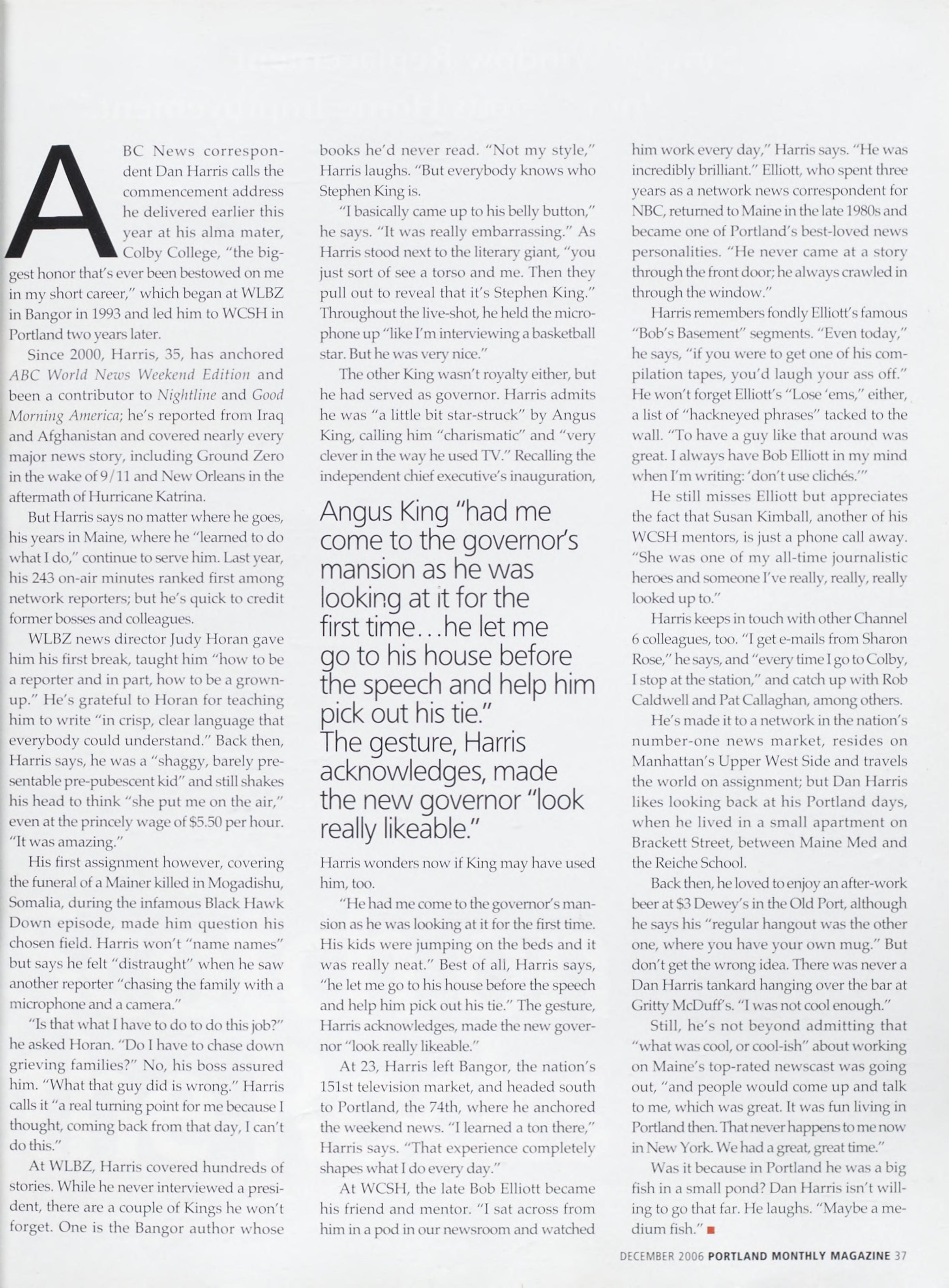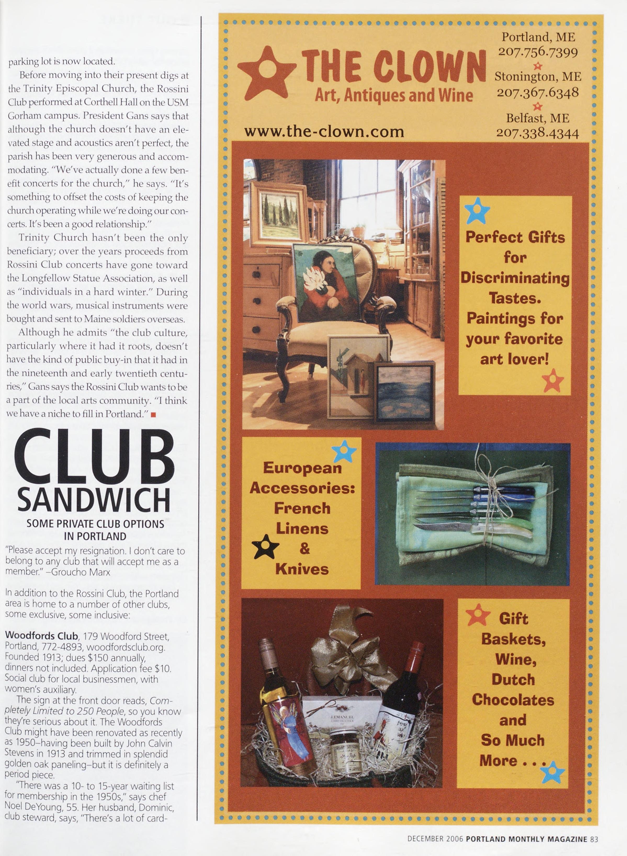 Newsstand Cover Date: December 2006, published in November 2006, Vol. 21, No. 9, copyright 2006.Portland Magazine ismailedatthirdclass mail rates in Portland, ME 04101 (ISSN: 1073-1857). Opinions expressed in articles are those of authors and do not represent editorial positions of Portland Magazine. Letters to the editor are welcome and will be treated as unconditionally assigned for publication and copyright purposes and as subject to Portland Magazine's unre¬ stricted right to edit and comment editorially. Responsible only for that portion of any advertisement which is printed incorrectly. Advertisers are responsible for copyrights of materials they submit. Nothing in this issue may be reprinted in whole or in part without written permission from the publishers. Submissions welcome, but we take no responsibil¬ ityforunsolicitedmaterials.