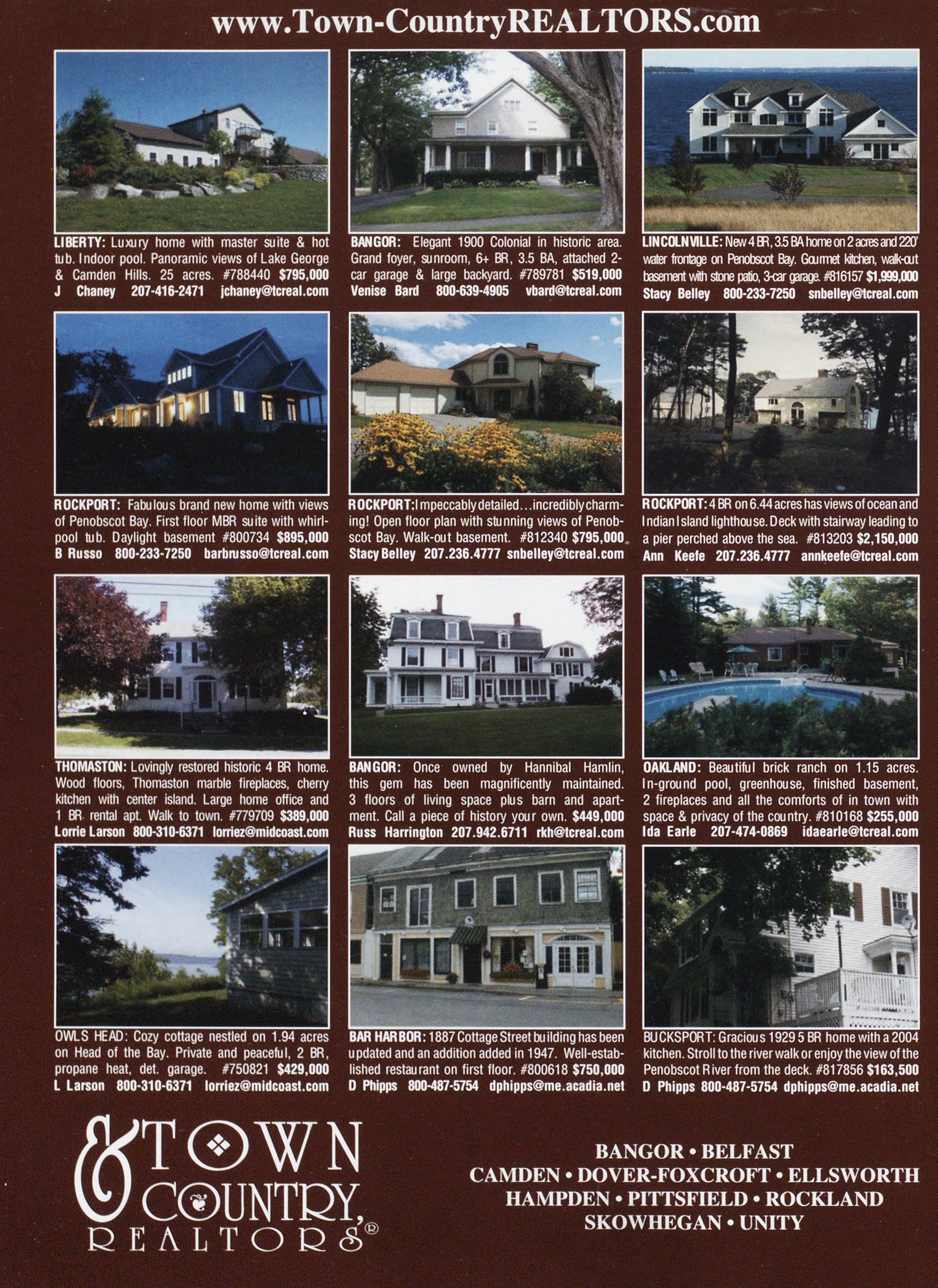 ROCKPORT:Impeccablydetailed...incrediblycharm¬ ing!OpenfloorplanwithstunningviewsofPenob¬ scotBay.Walk-outbasement.#812340$795,000. StacyBelley207.236.4777snbelley@tcreal.com