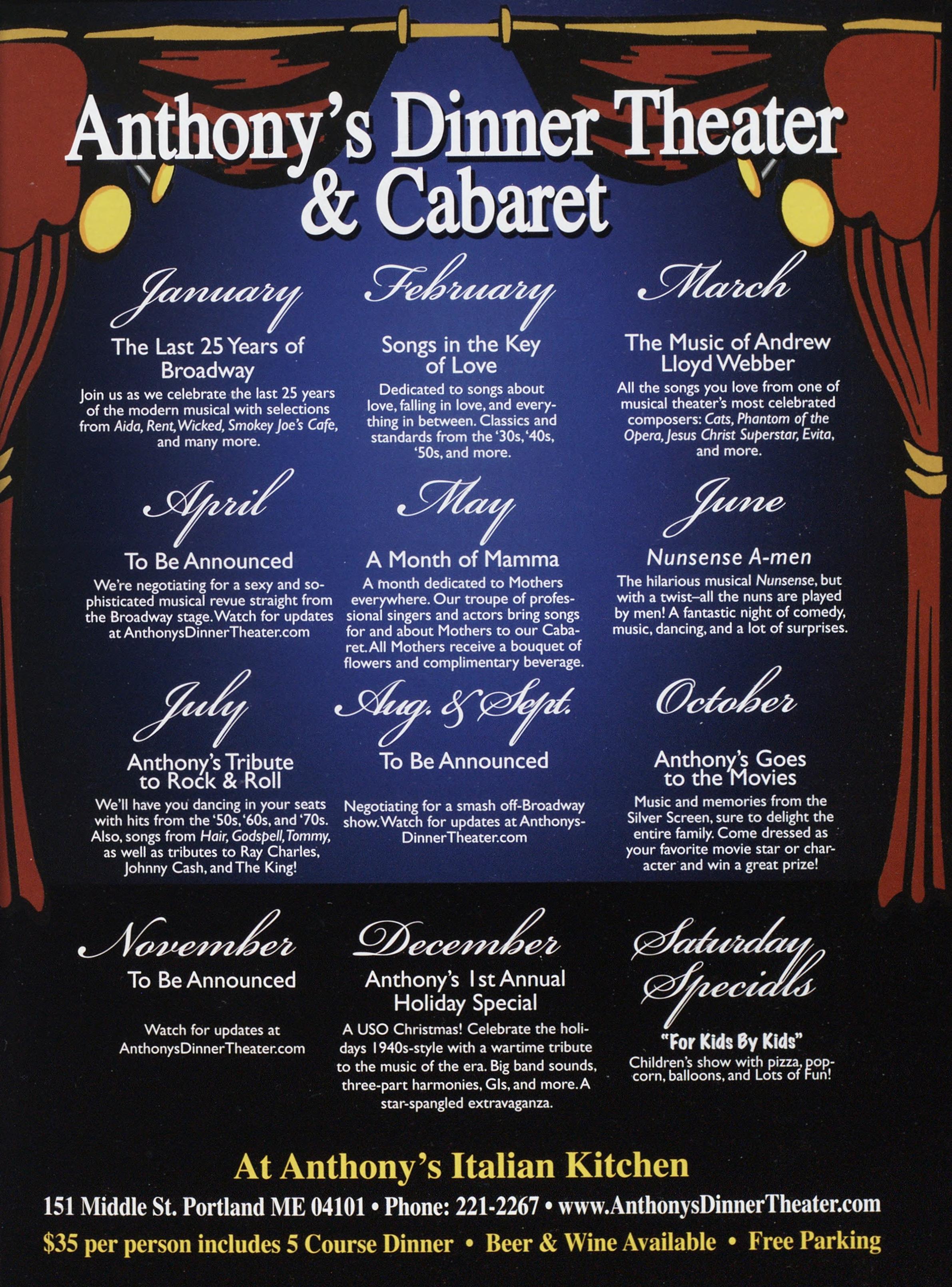 Portland Magazine ispublished10timesannuallybySargentPublishing, Inc, 722 Congress Street, Portland, Maine, 04102, with newsstand cover dates of Winterguide, February/March. April, May. Summerguide, July/ August, September, October. November, and December.