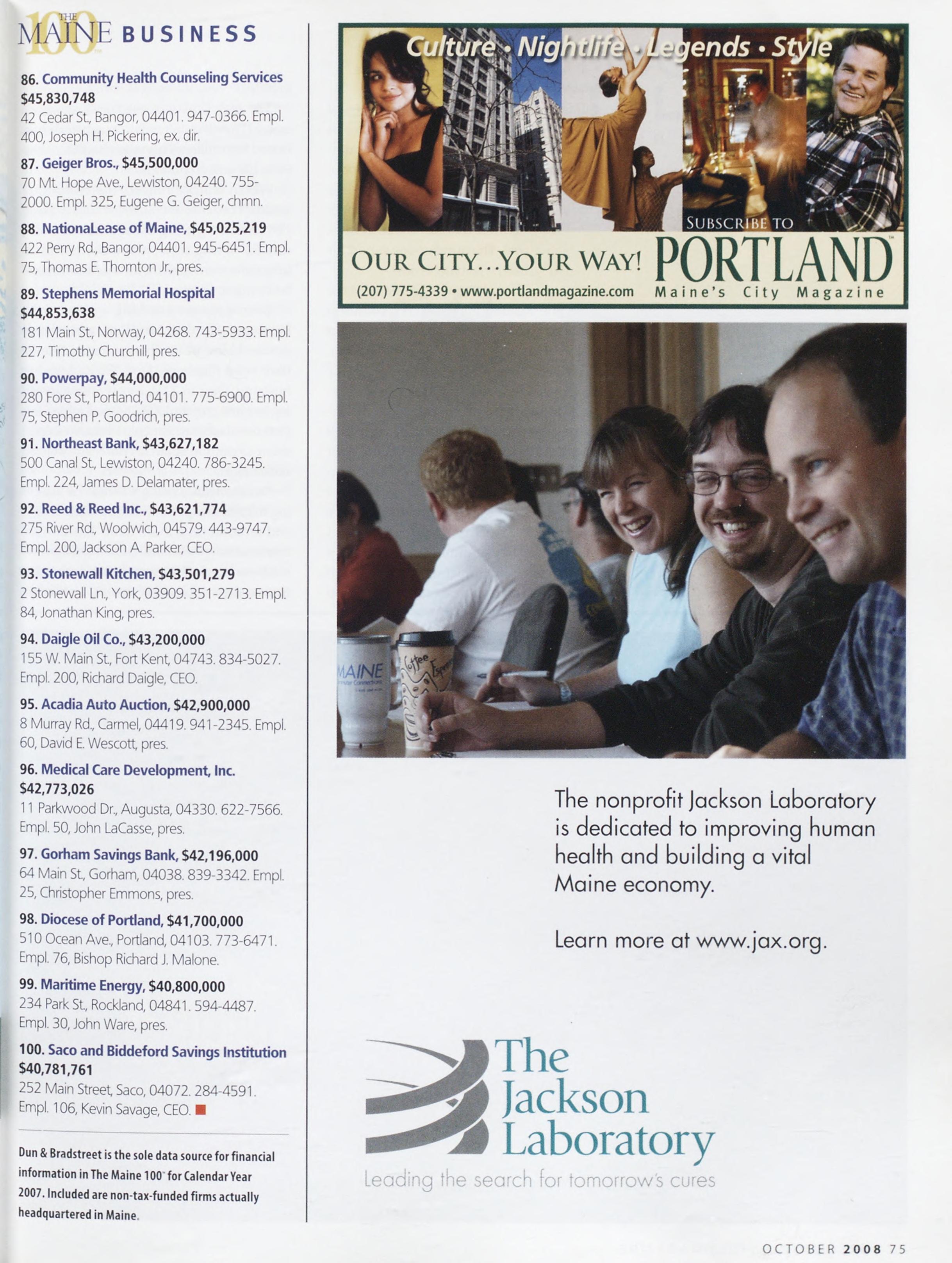 Exclusive:Our2008portfolioofthe topbusinessesheadquartered inMaine.