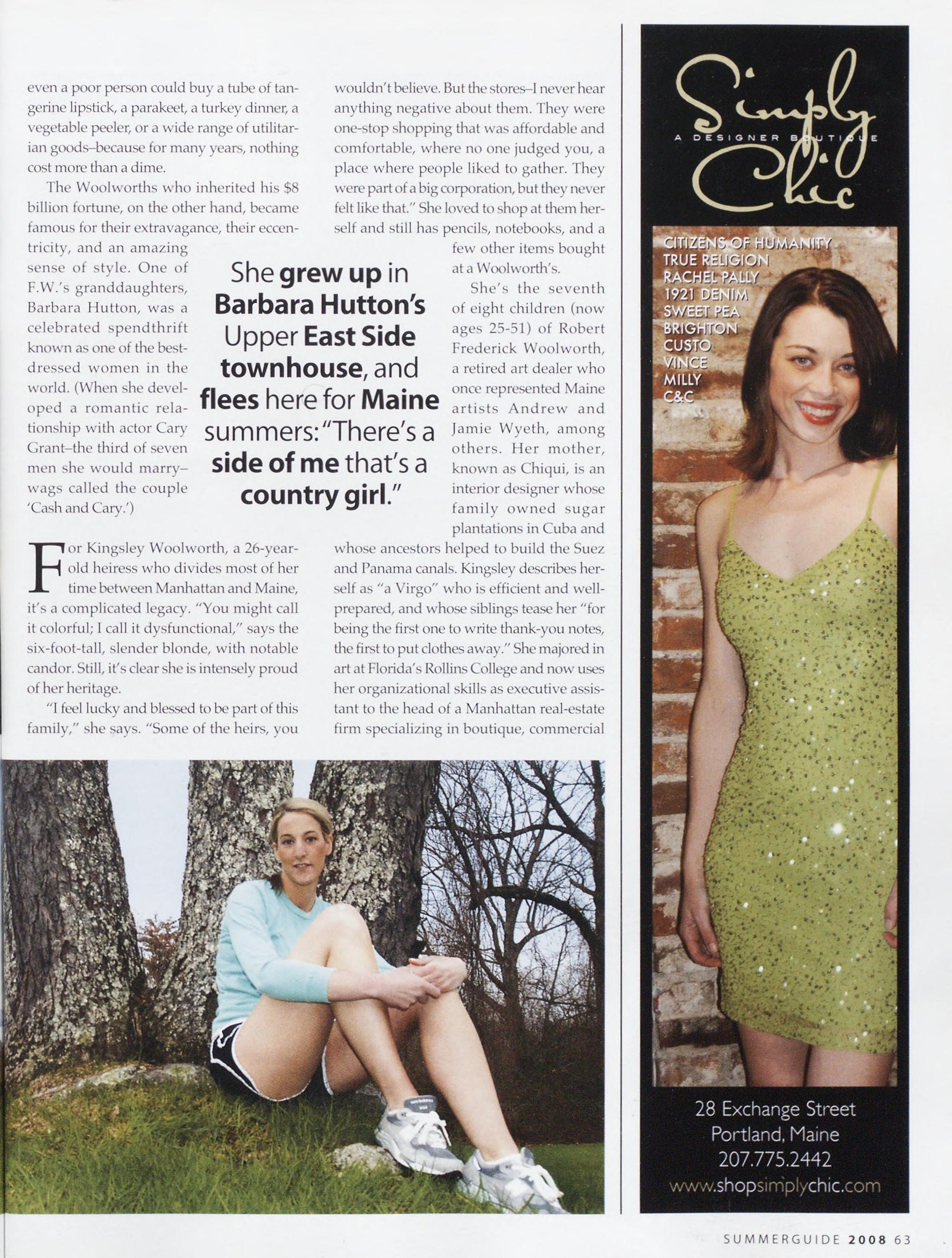 51 Growing Up Wool worth Nothingnickel-and-dimeabout thisWoolworthheiresswho embracesherMaineheritageto staygroundedinWinthrop.