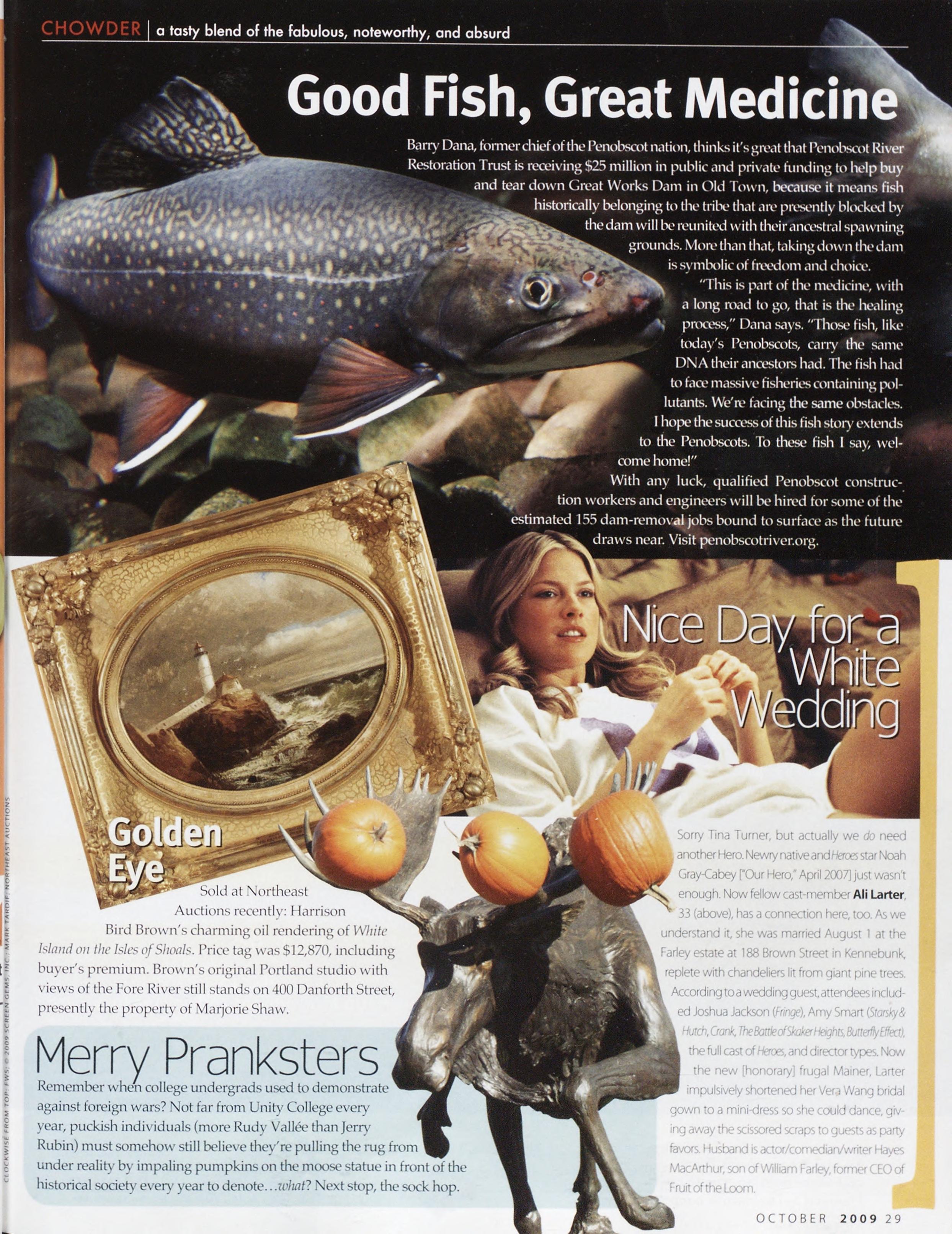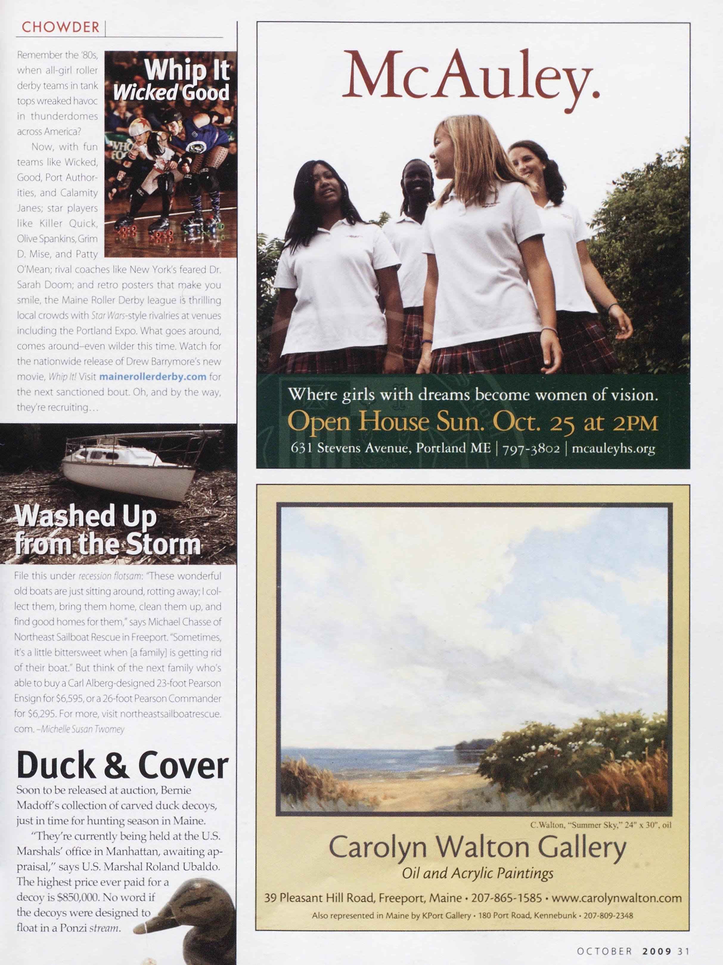 Newsstand Cover Date: September 2009, published in August 2009, Vol. 24, No. 6, copyright 2009. Portland Magazine is mailed at third-class mail rates in Portland, ME 04101 (ISSN: 1073-1857). Opinions expressed in articles are those of authors and do not represent editorial positions of Portland Magazine. Letters to the editor are welcome and will be treated as unconditionally assigned for publication and copyright purposes and as subject to Portland Magazine's unrestricted right to edit and comment editorially. Responsible only for that portion of any advertise¬ ment which is printed incorrectly. Advertisers are responsible for copyrights of materials they submit. Nothing in this issue may be reprinted in whole or in part without written permission from the publishers. Submissions welcome, but we take no responsi¬ bility for unsolicited materials.