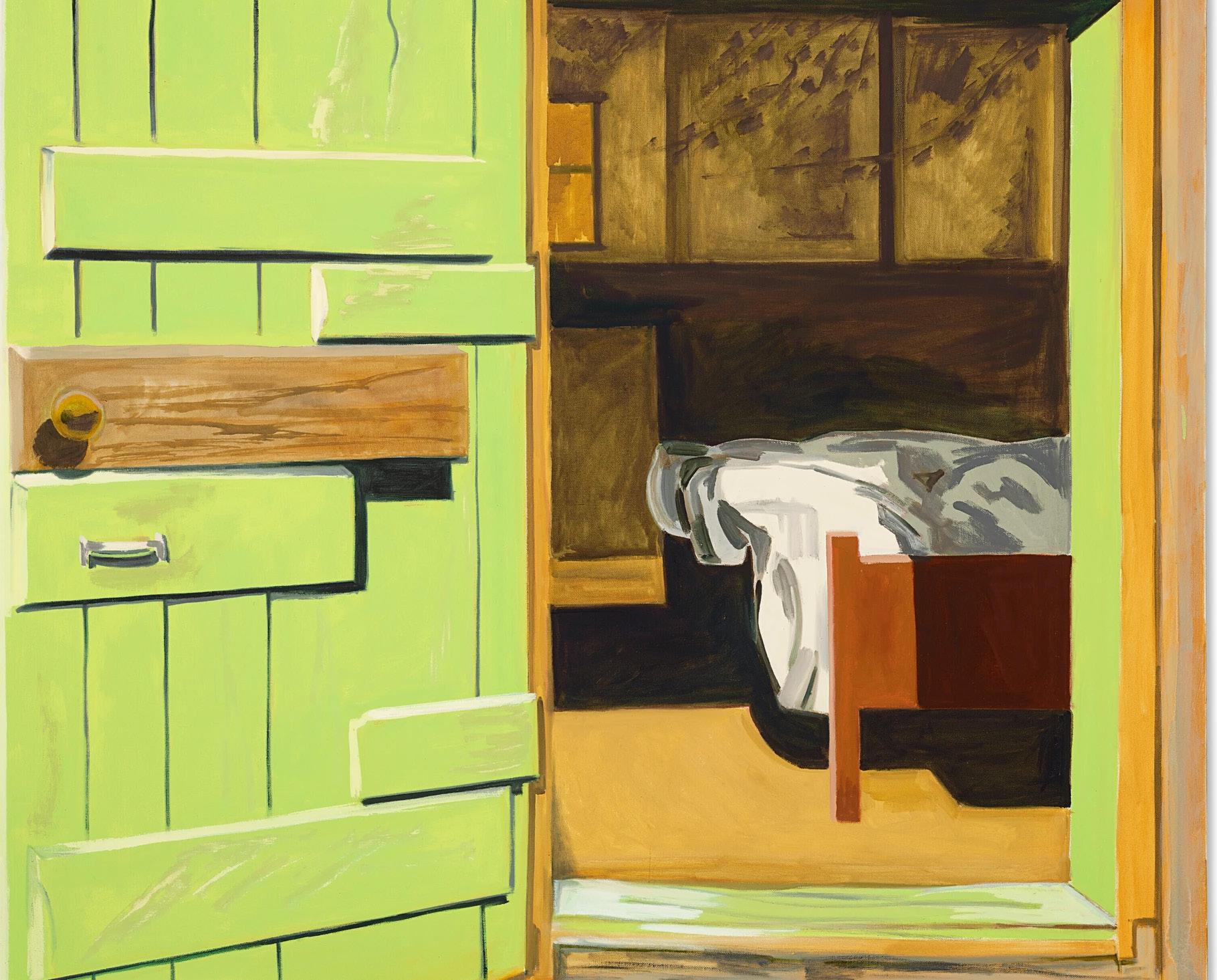 “Yes, she was two years ahead.” is house is a rare nd, a distinctive moment in time. When you peek through the gap in the curtain, you get a sense of the unobstructed views of the Fore River you might have after a few intimate moments with a chainsaw.