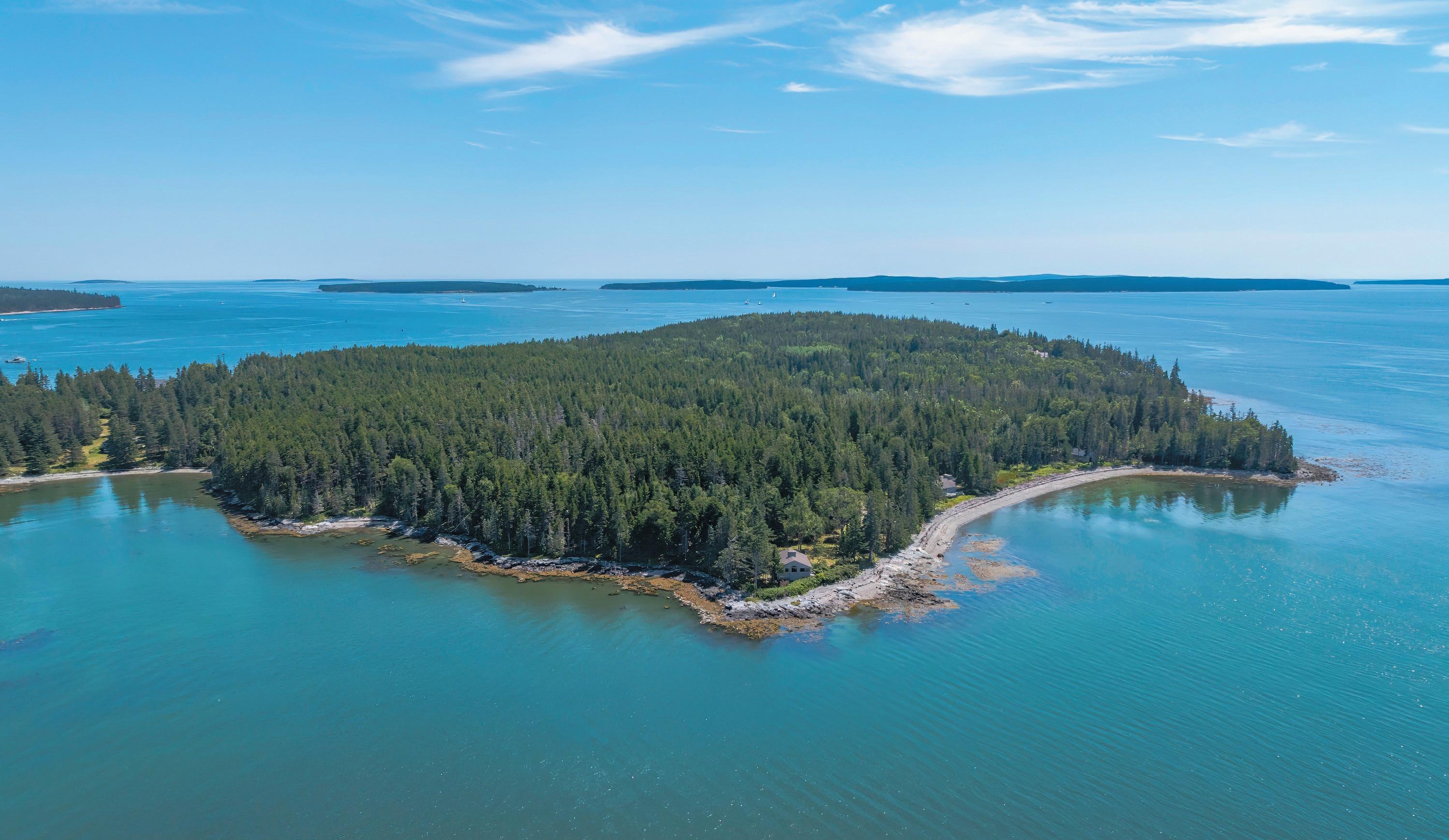 tine proper ty and an amazing 2,700± feet of sandy and pebbly shoreline This private haven, at the end of a secluded point, presents breathtaking westerly views across open waters, with the majestic mountains of Acadia National Park ser ving as your backdrop The proper ty is a unique blend of rustic charm and natural beauty, featuring several structures that add to