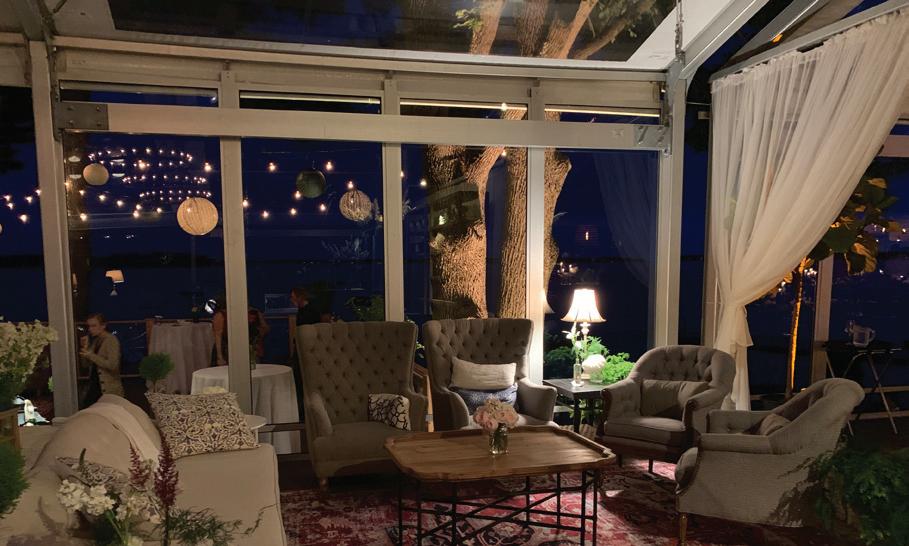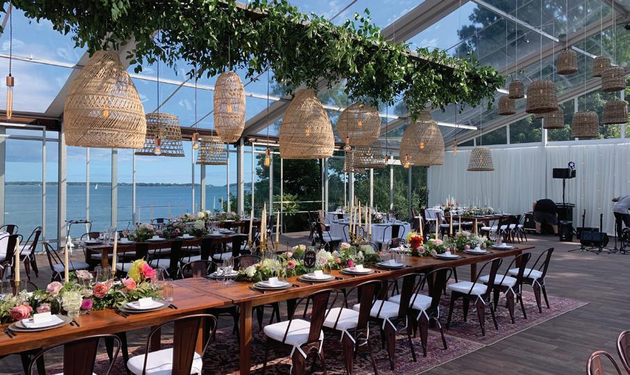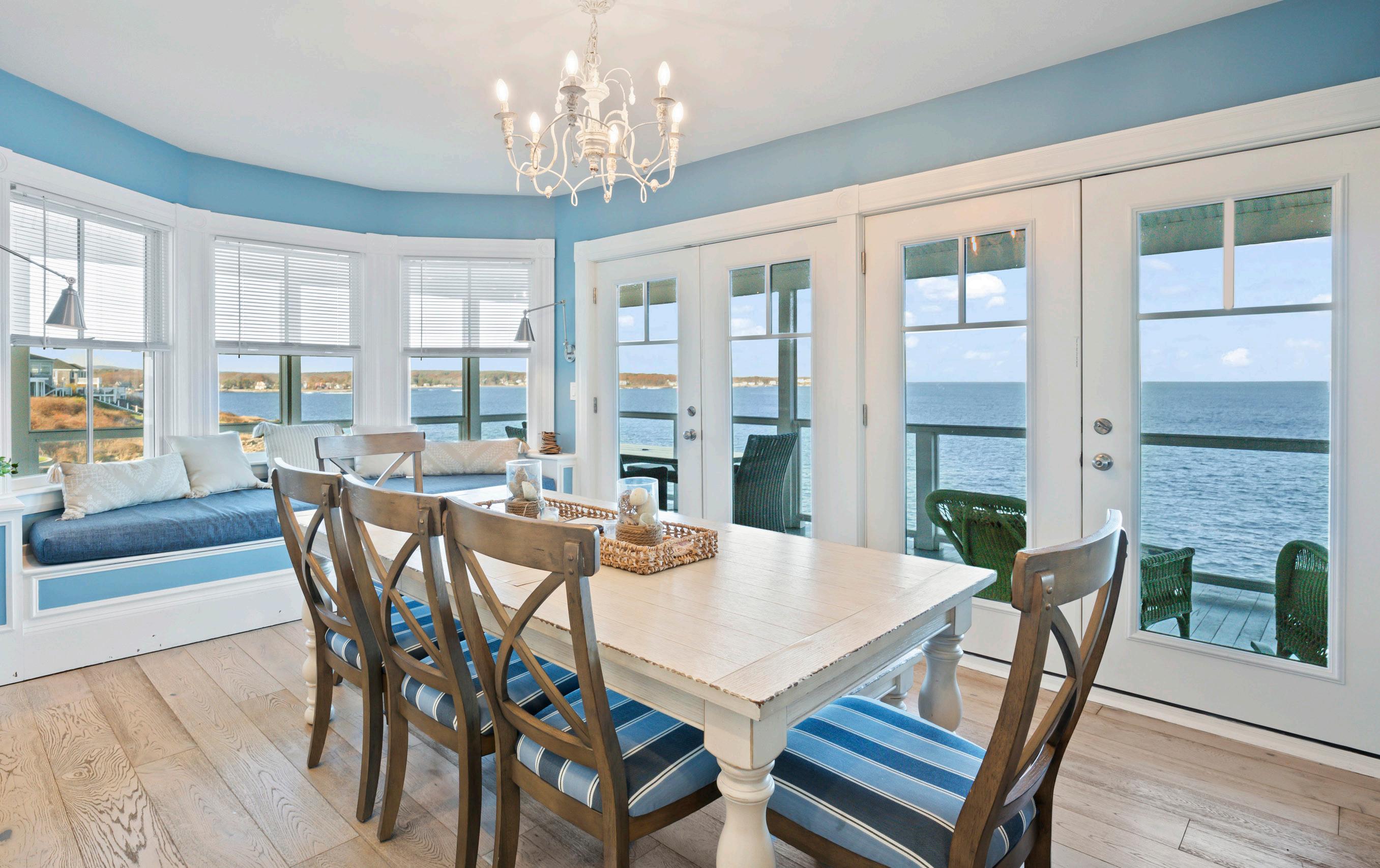 It’s only four and a half hours from Broadway in Manhattan to this Broadway, tra c permitting. Our guess is that a real lobster lover would drive at least nine hours to have a lobster feast here. e décor is grounded by a palette of marine colors to let the incredible views steal the show.