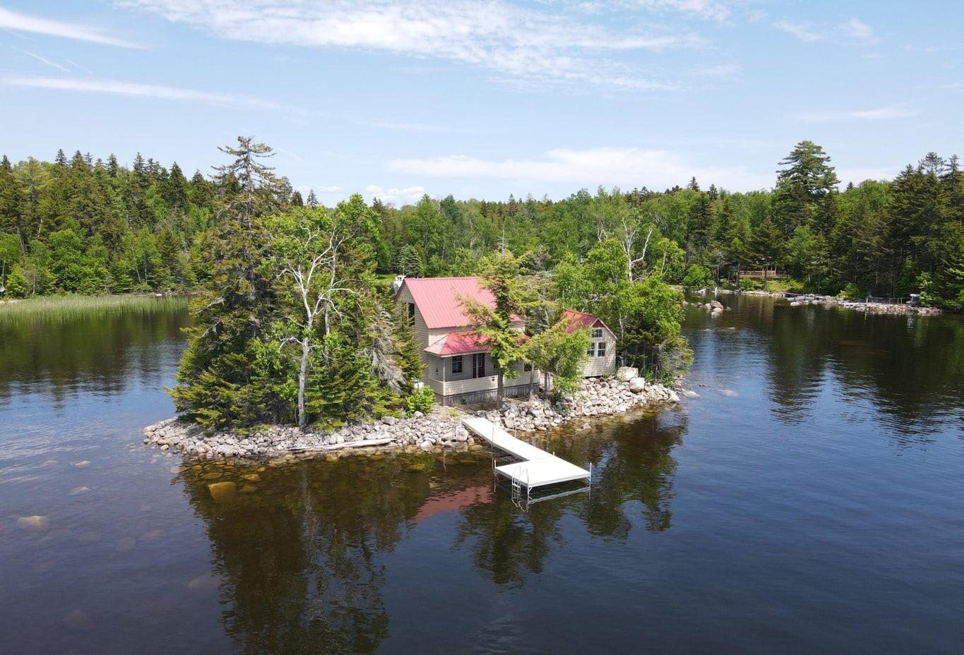 Bramble Island - An amazing opportunity to own a private island on Mooselookmeguntic Lake! Located of the Bald Mountain Road with deeded access and a mainland lot on the backside of the road. The island ofers a 2 bedroom cottage in immaculate condition with a small kitchenette, incinerating toilet and an outdoor shower. Fully powered with electricity, propane stove and hot water heater, all the comforts you can imagine! Wonderful covered porch, new aluminum dock and good sized boathouse for storage of all your toys. This island ofers miles of views across the lake at nothing but conservation land and no light pollution. If you are looking for the ultimate summer cottage...look no further, call today for a private showing! $649,000.