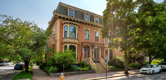 and George Burnham, this pocket mansion is subtly di erent. “I like the feng shui of the rounded front stairs, the faux balconies in gloss black below the windows.” Not to mention the curved portico—shades of the Gardner-Pingree House in Salem, Massachusetts.