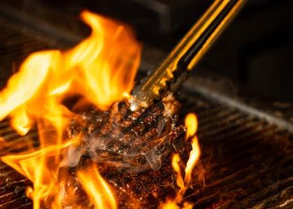 tack into the tangy Halibut Piccata ($31), “seared Atlantic halibut, fresh spaghetti, lemon caper sauce, and chives,” and the Seafood Stu ed Shrimp ($35): a generous and very rich portion of jumbo Gulf shrimp and “ ngerling potato, broccolini, lobster-sherry sauce.”