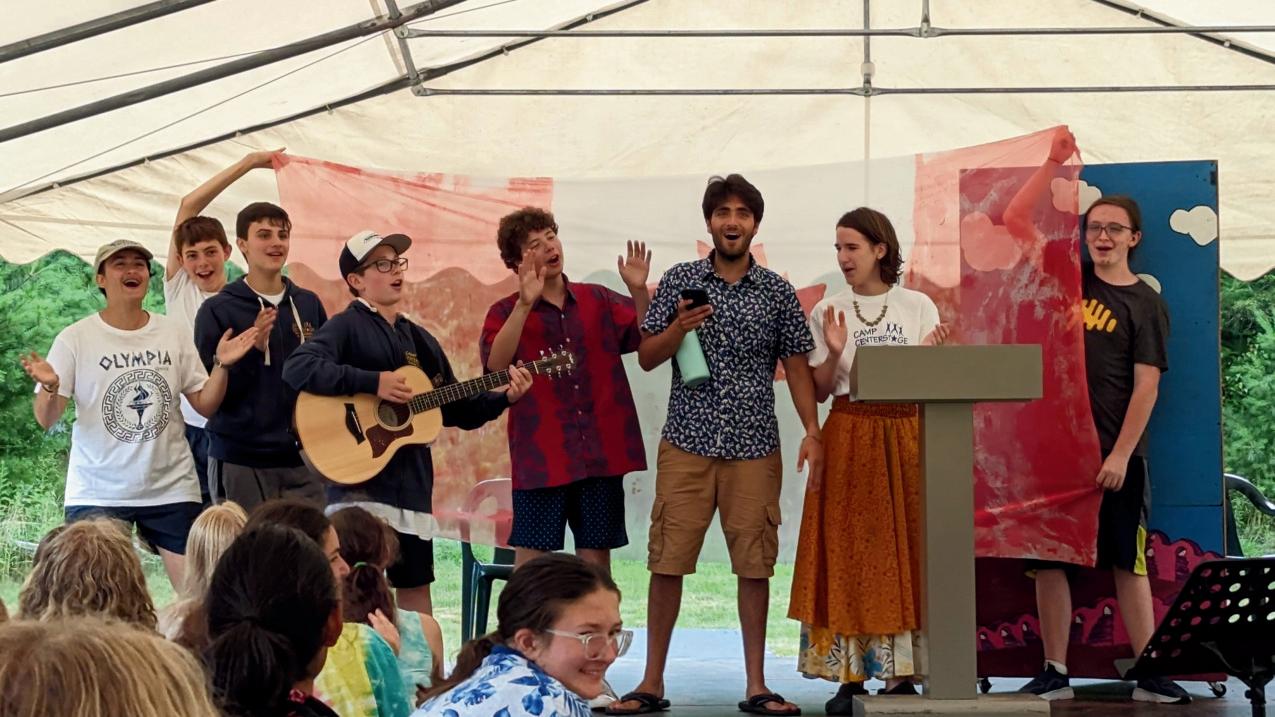 Come that rst suppertime in the Lodge dining room, I was startled but then entranced when a counselor began singing mid-meal. Others, more and more, joined in to create a rich chorus of female voices. Around me was so much laughter and ease that it was impossible not to be swept along, and I was happy with the sweeping. Mine was a family of individual solitudes, so all this openness was breathtaking, yet it took no time for me to realize how much I enjoyed breaking a taboo to sing with a full table of new friends.