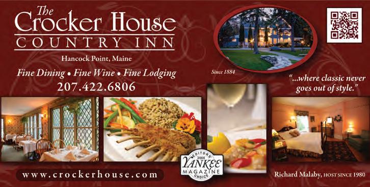 To my right, two boys are pegging clamshells at the sanderlings feeding at the water’s edge, and nally, that’s my limit. “Hey!” I tug Vivaldi out of my ear. “Leave the birds alone! You’re in Maine now.” Whatever the hell that means. ey stare. I turn for home, braced to take a clamshell in the back. But it doesn’t happen. I replace my earbuds. Now it’s just the big sun on my back and “Winter” in my head…which reminds me: Travel + Leisure has just named Ogunquit the 2nd best Christmas town in the United States. n