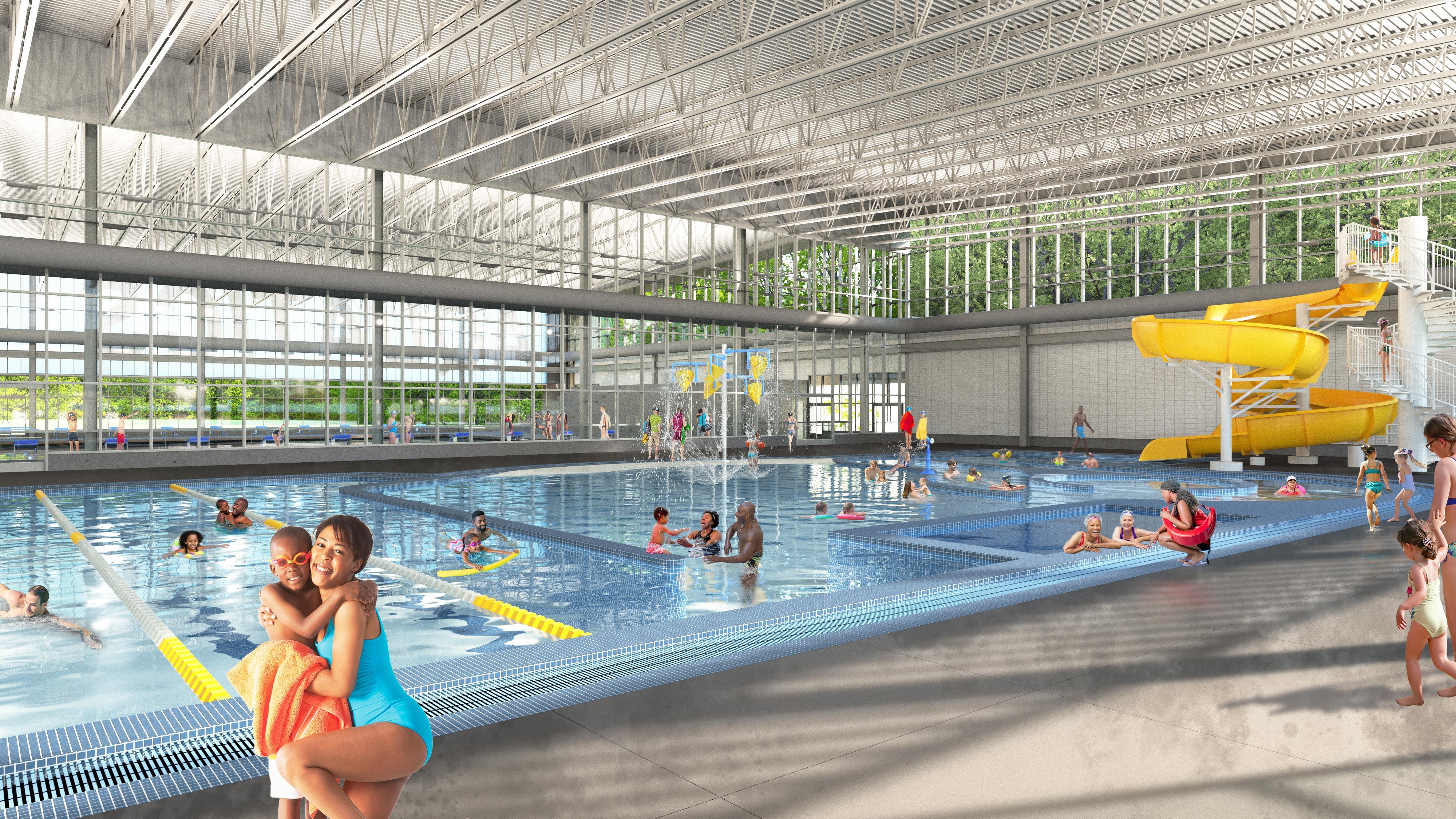 Columbia Park Aquatic Facility Concept: Fun Water Natatorium – Looking west towards interior of Columbia Park