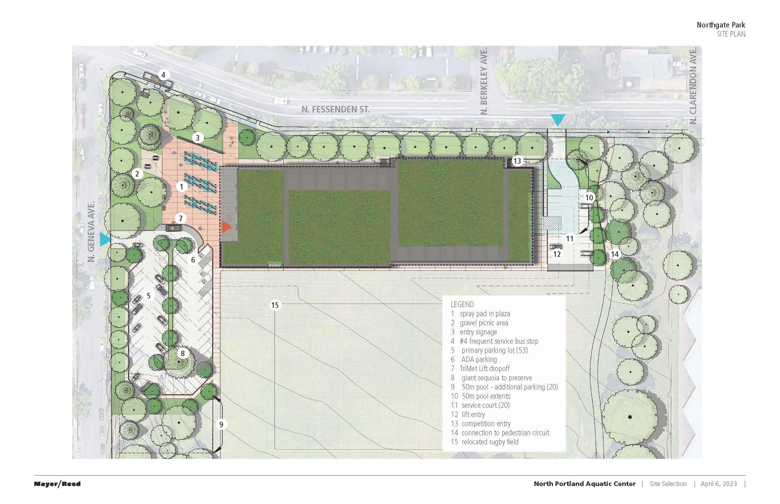 Northgate Park Aquatic Facility Concept: View looking southeast from North Fessenden Street
