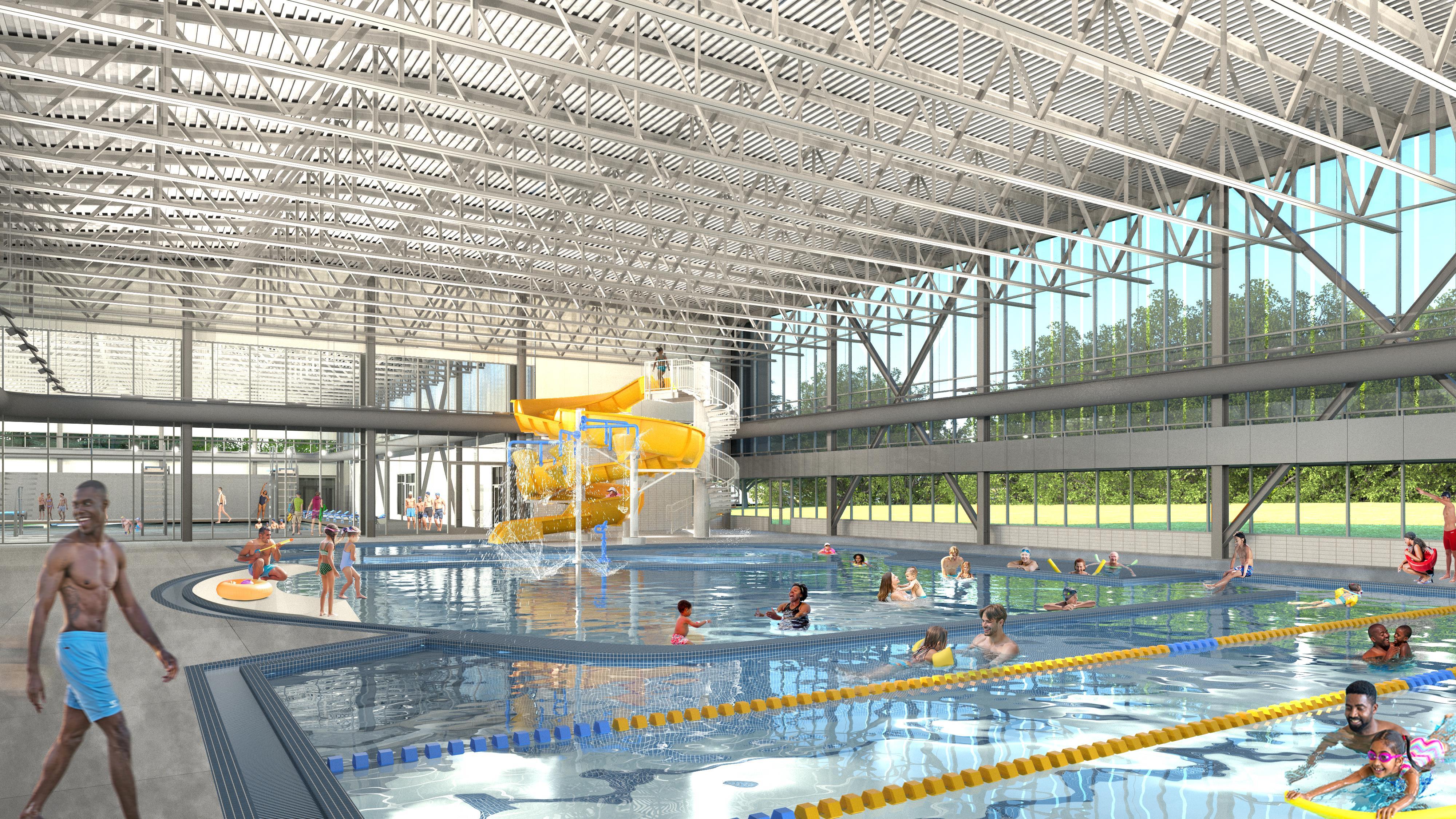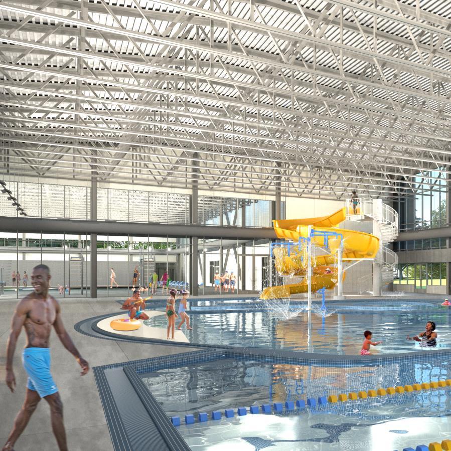 Park Aquatic Facility Concept: Fast Water Natatorium – View looking south towards University Park
