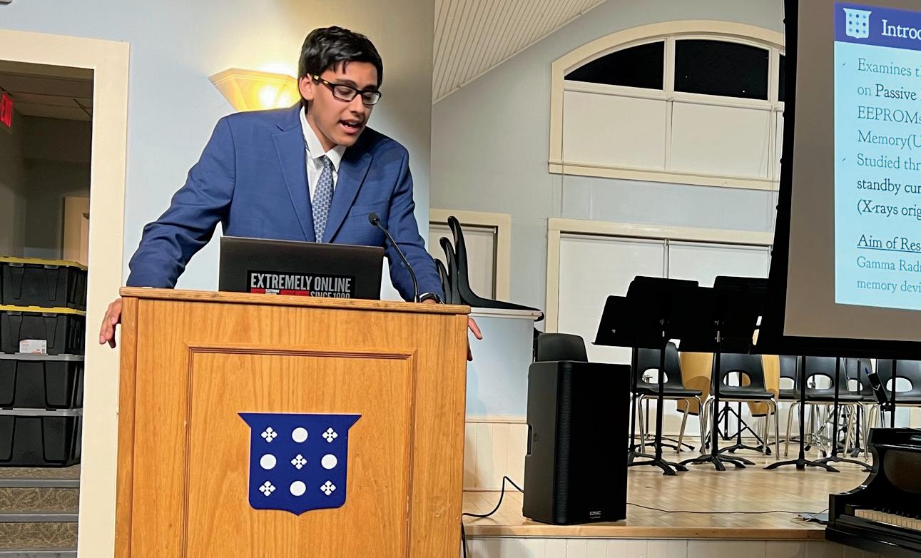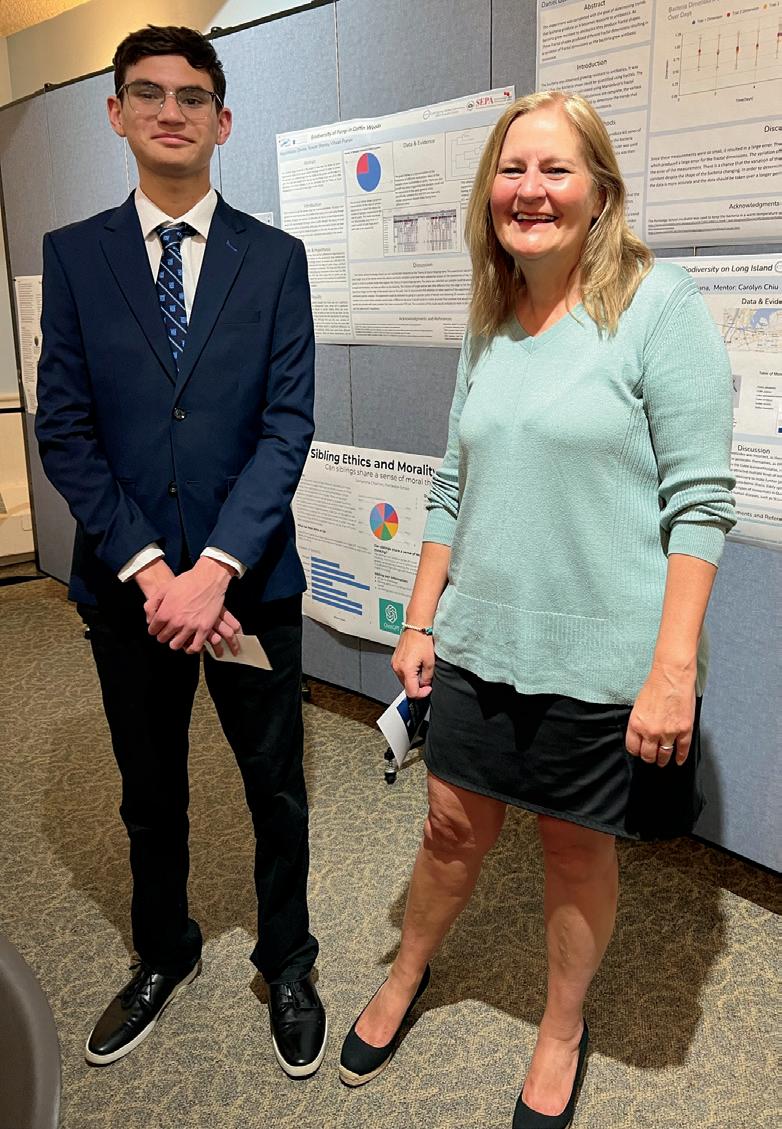 Rowan Shenoy ’26 and Carolyn Chiu ’85 at the Second Annual Science Symposium.