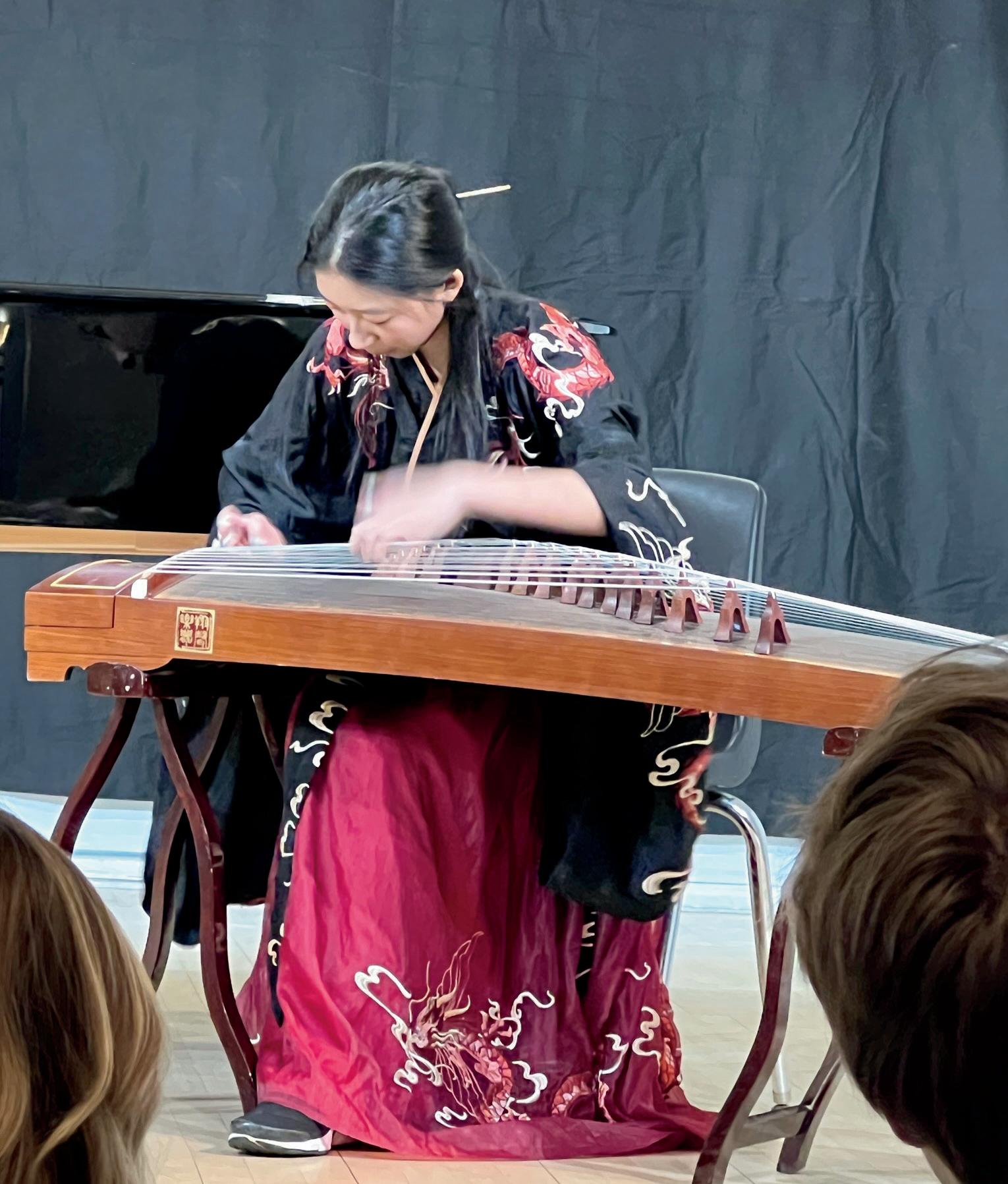 The audience sits quietly, completely enamored by the rich, vibrant sound of the cello played by 8th-grade student Joshua Lee. John DeLuca ’23 takes the crowd through myriad emotions with his vocal solo. And sophomore Shirley Zhang stuns the room to silence and then applause while she strums her guzheng with a pick on every finger.