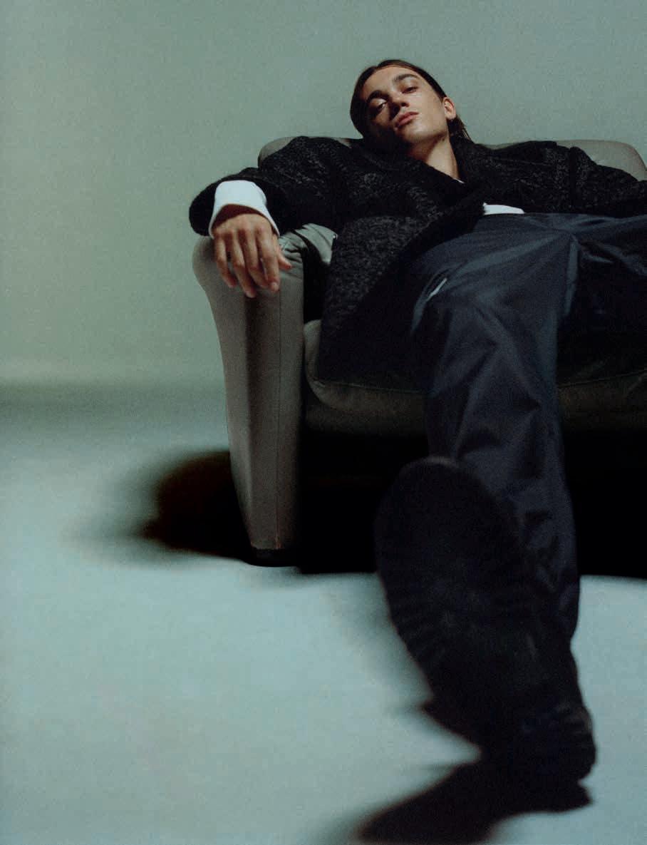 Stéphane Bak, photographed in Paris by Anatheine, wears LOEWE