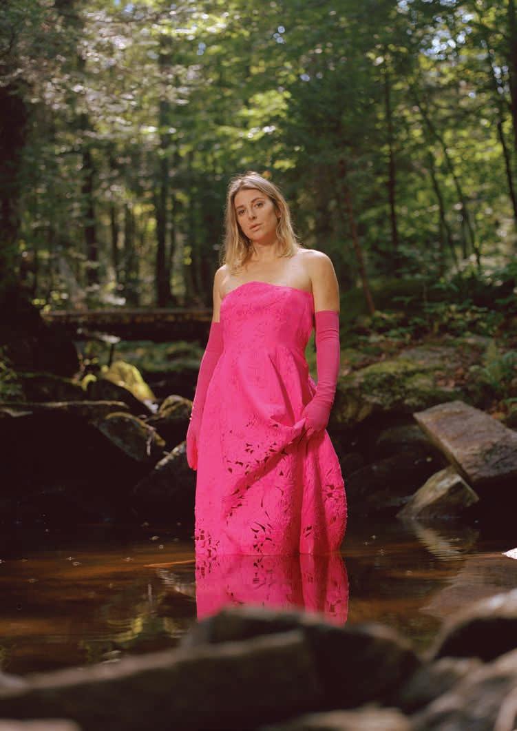Torrey Peters, photographed in Vermont by Eric Chakeen, wears VALENTINO PINK PP FALL/WINTER 22-23 COLLECTION