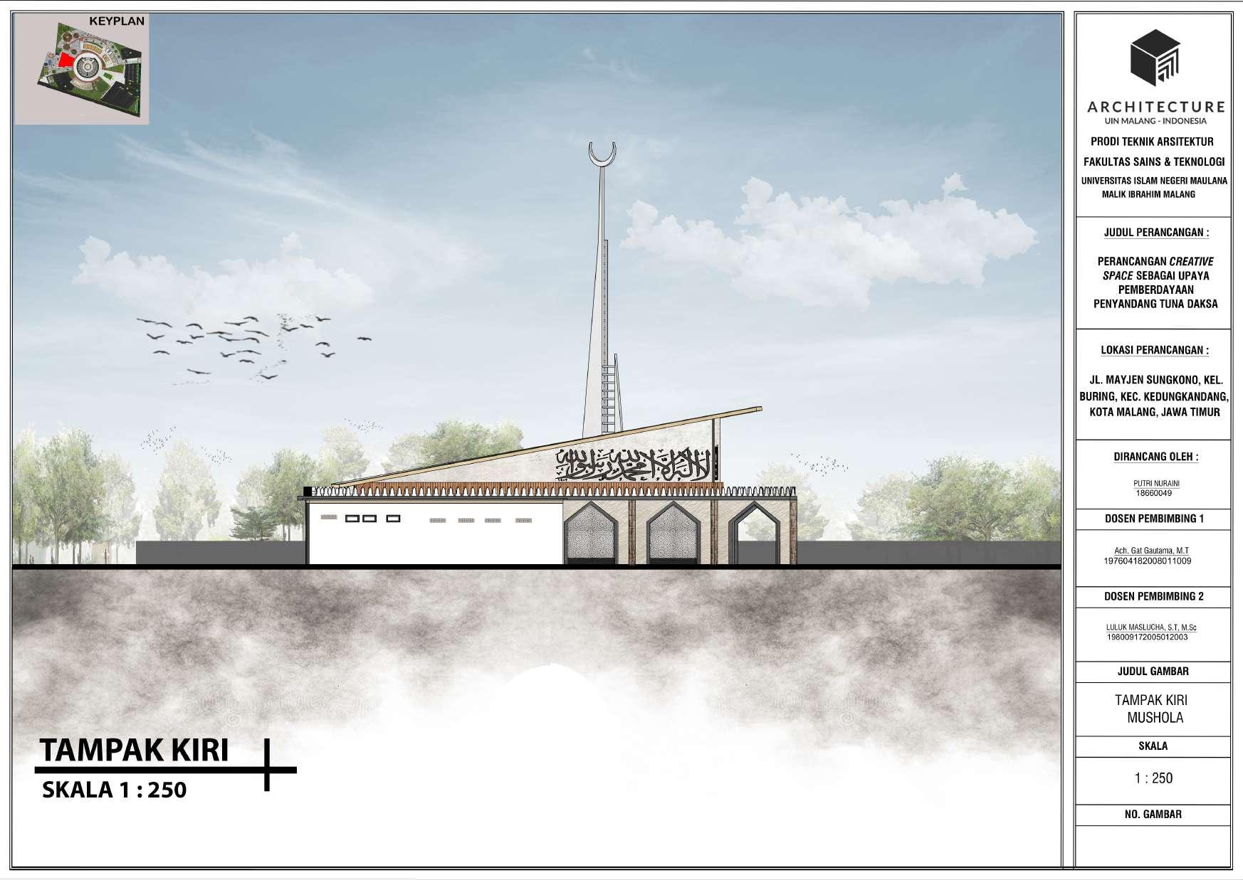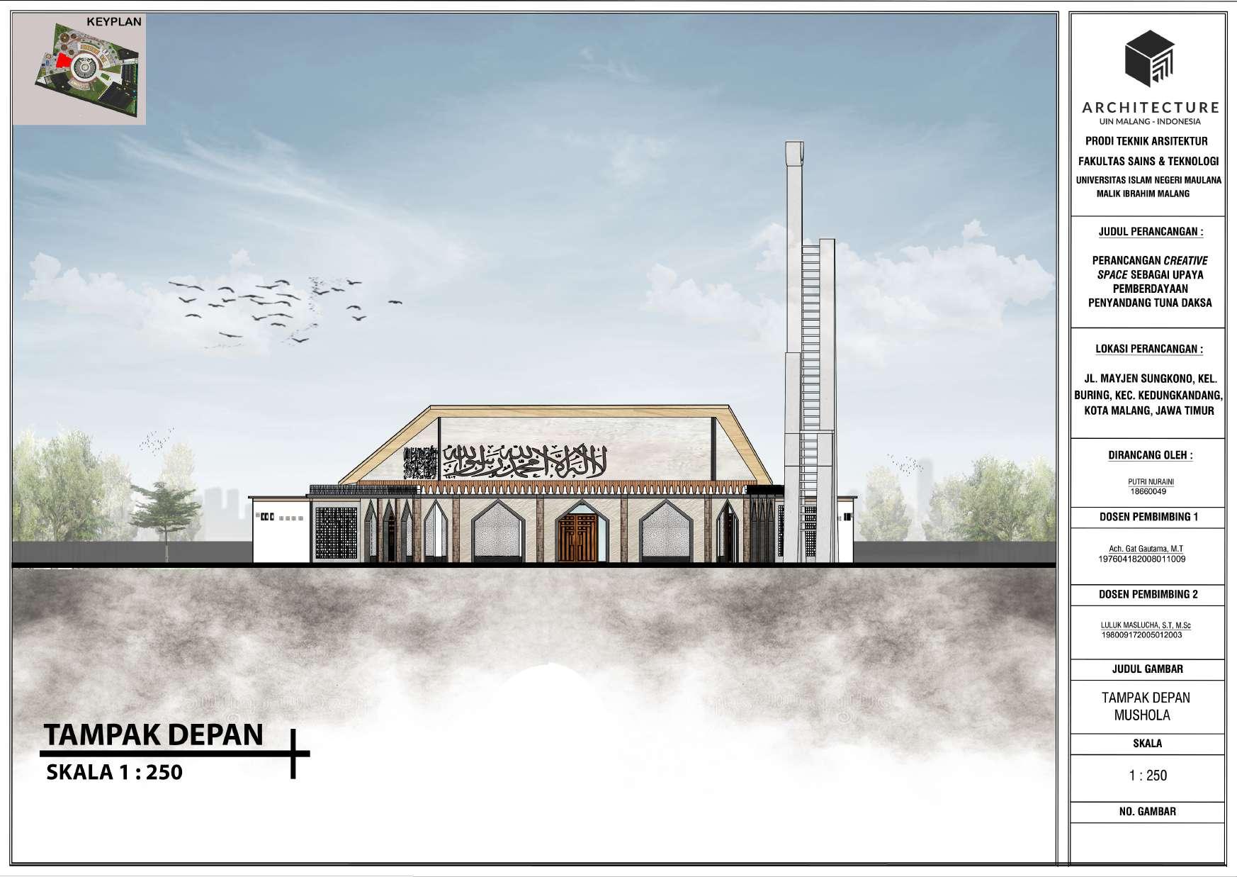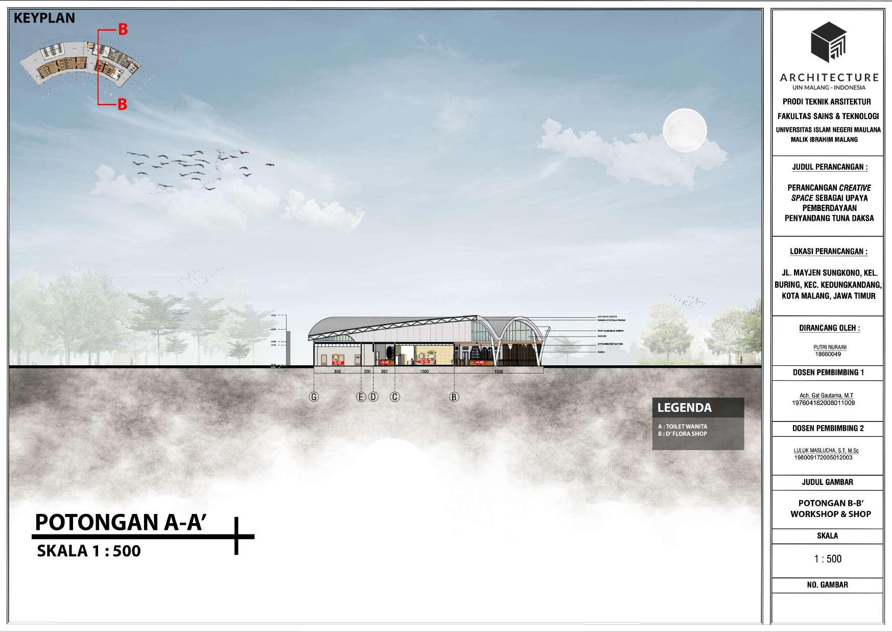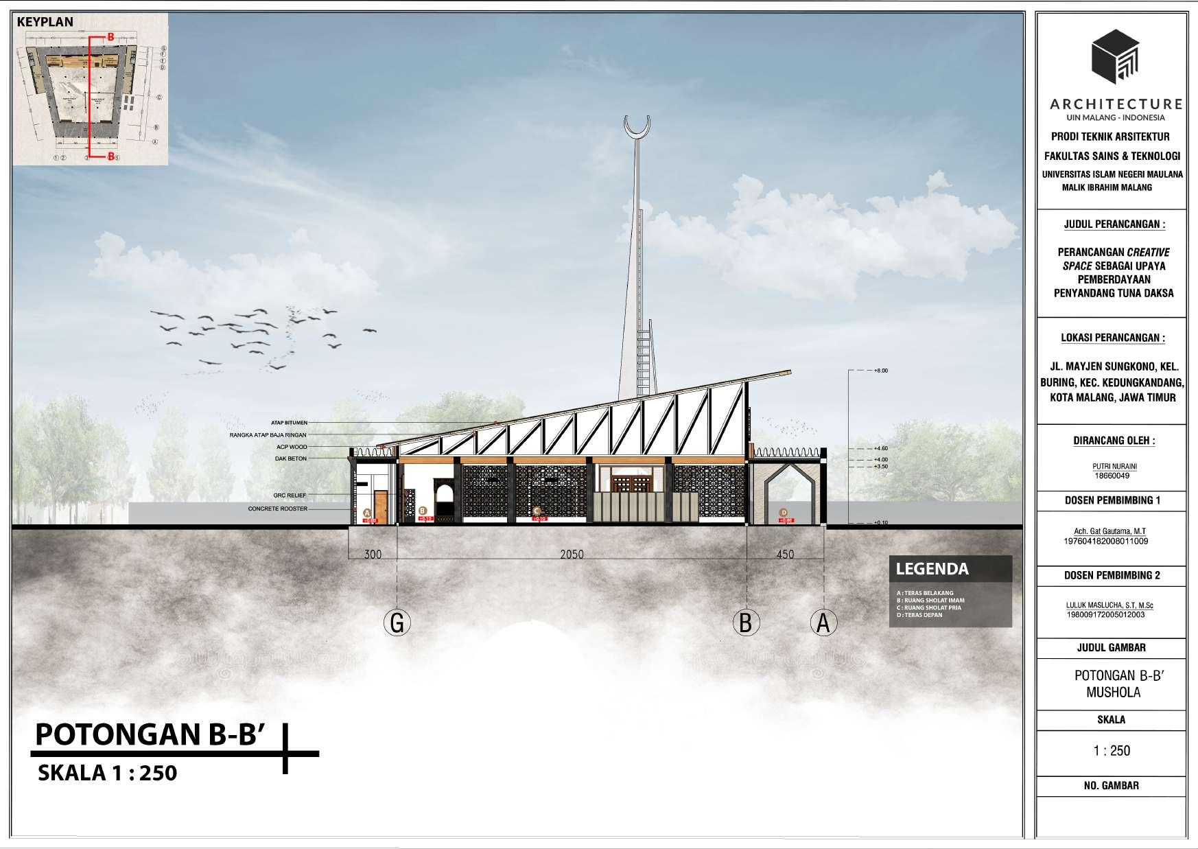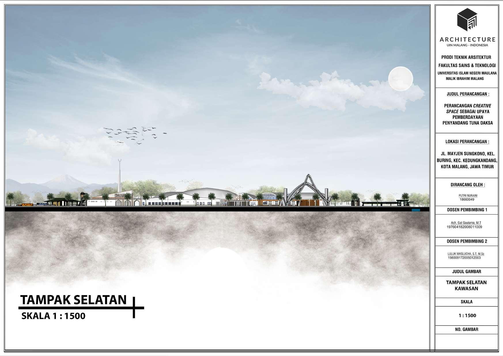 Laporan tugas akhir ini telah dipertahankan di hadapan dewan penguji dan diterima sebagai salah satu syarat memperoleh gelar Sarjana Arsitektur (S.Ars) di UIN Maulana Malik Ibrahim Malang Oleh: PUTRI NURAINI 18660049 Judul : Perancangan Creative Space sebagai Upaya Pemberdayaan Penyandang Tuna Daksa Tanggal Ujian : 16 Juni 2022 iii