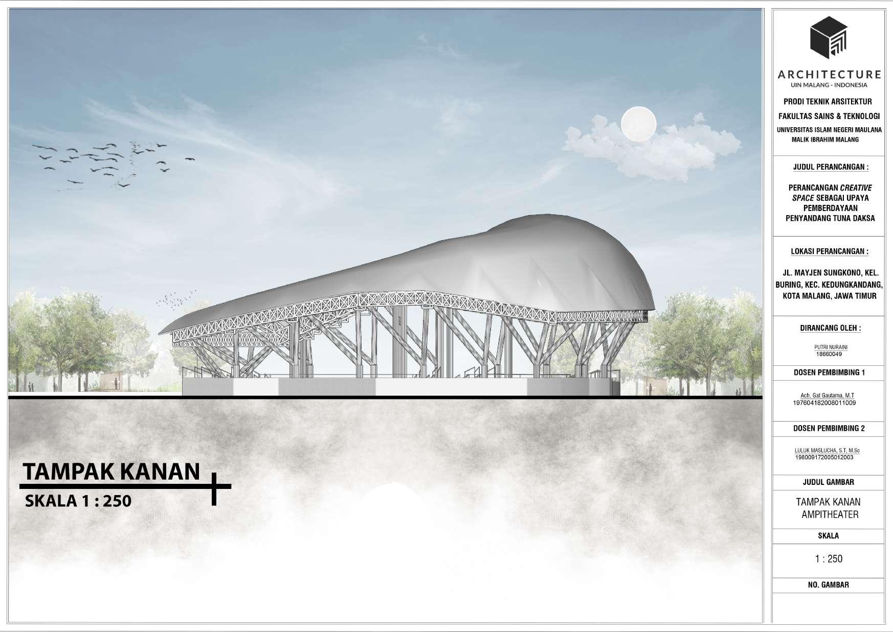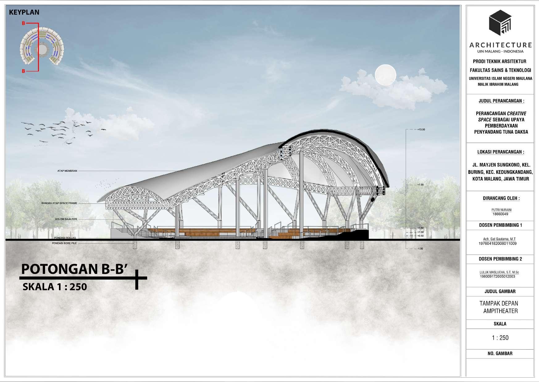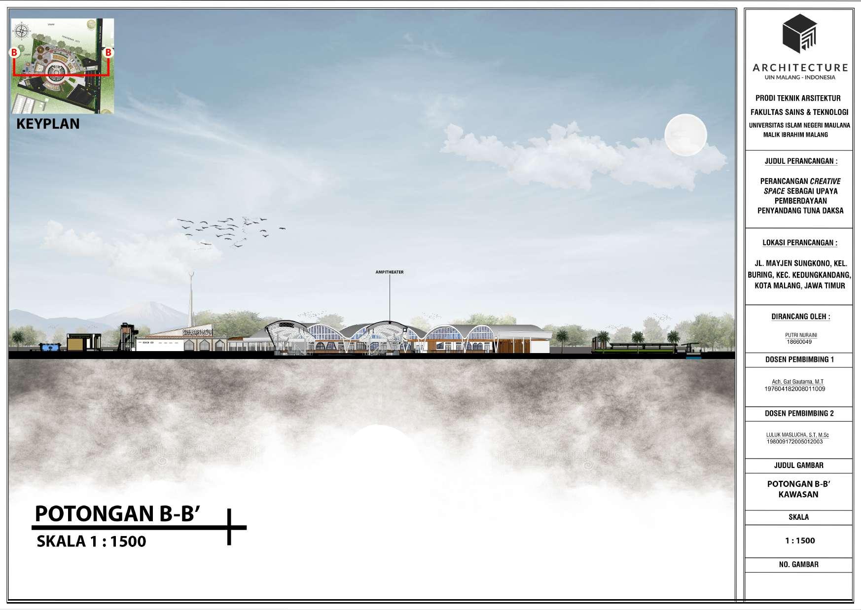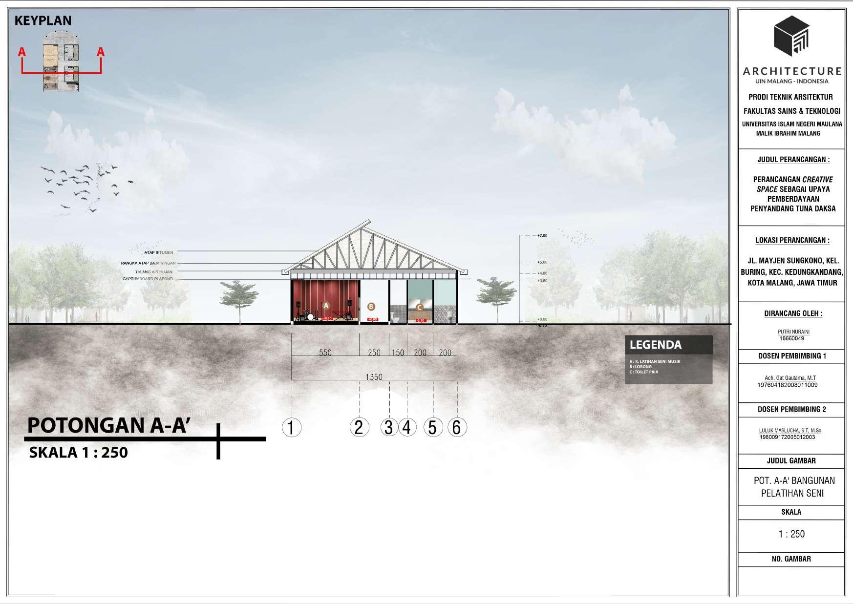 Laporan tugas akhir ini telah dipertahankan di hadapan dewan penguji dan diterima sebagai salah satu syarat memperoleh gelar Sarjana Arsitektur (S.Ars) di UIN Maulana Malik Ibrahim Malang Oleh: PUTRI NURAINI 18660049 Judul : Perancangan Creative Space sebagai Upaya Pemberdayaan Penyandang Tuna Daksa Tanggal Ujian : 16 Juni 2022 iii