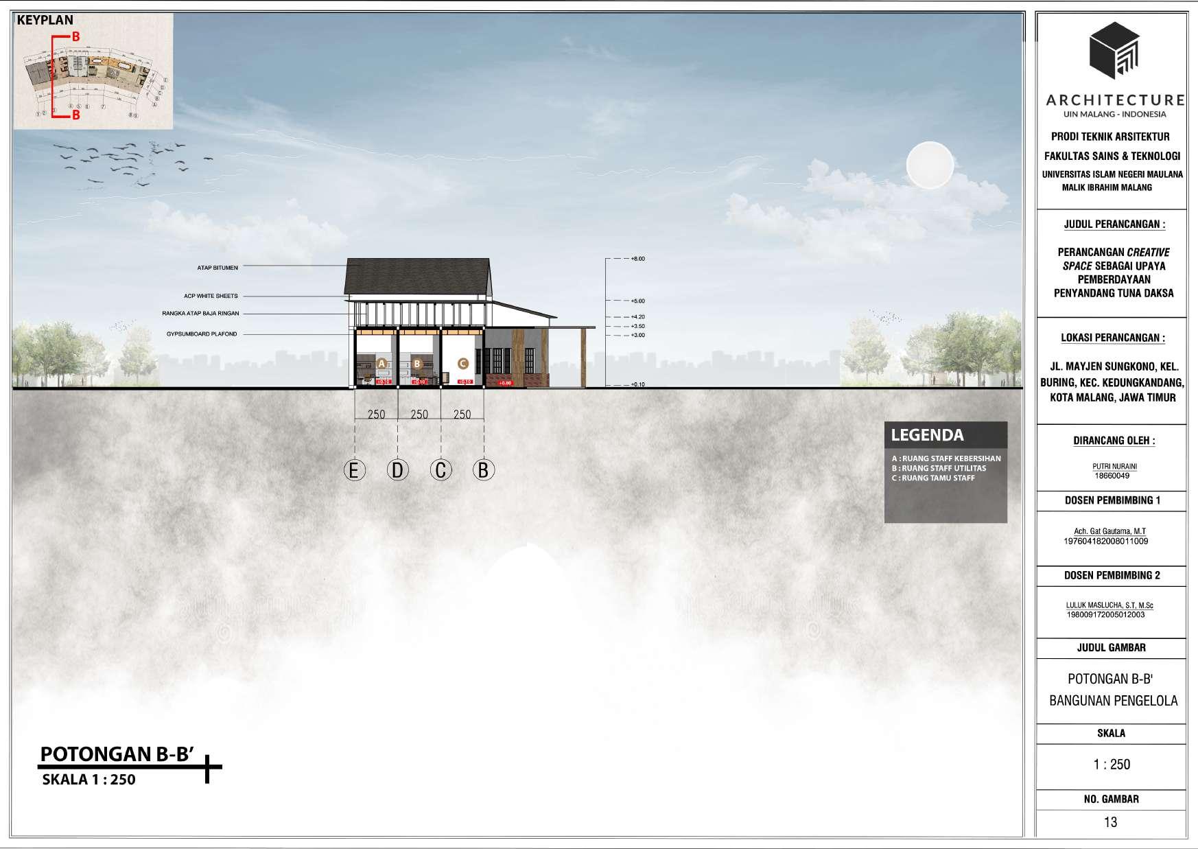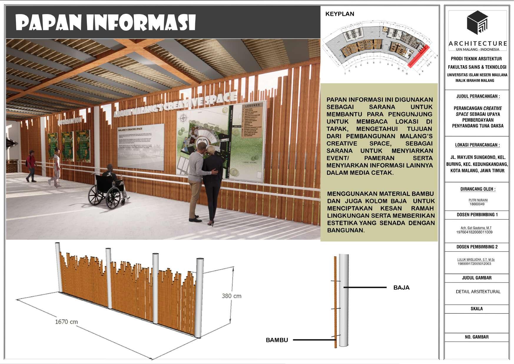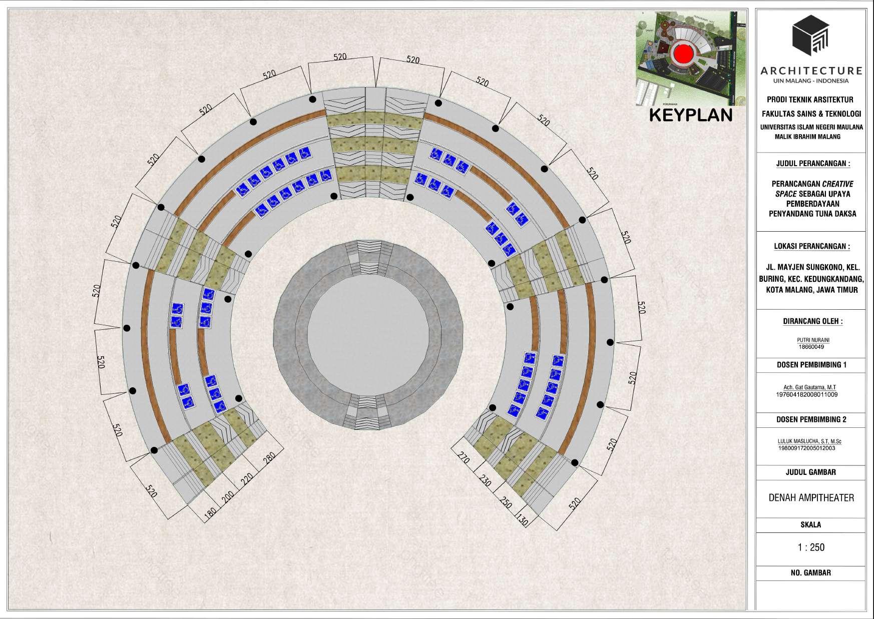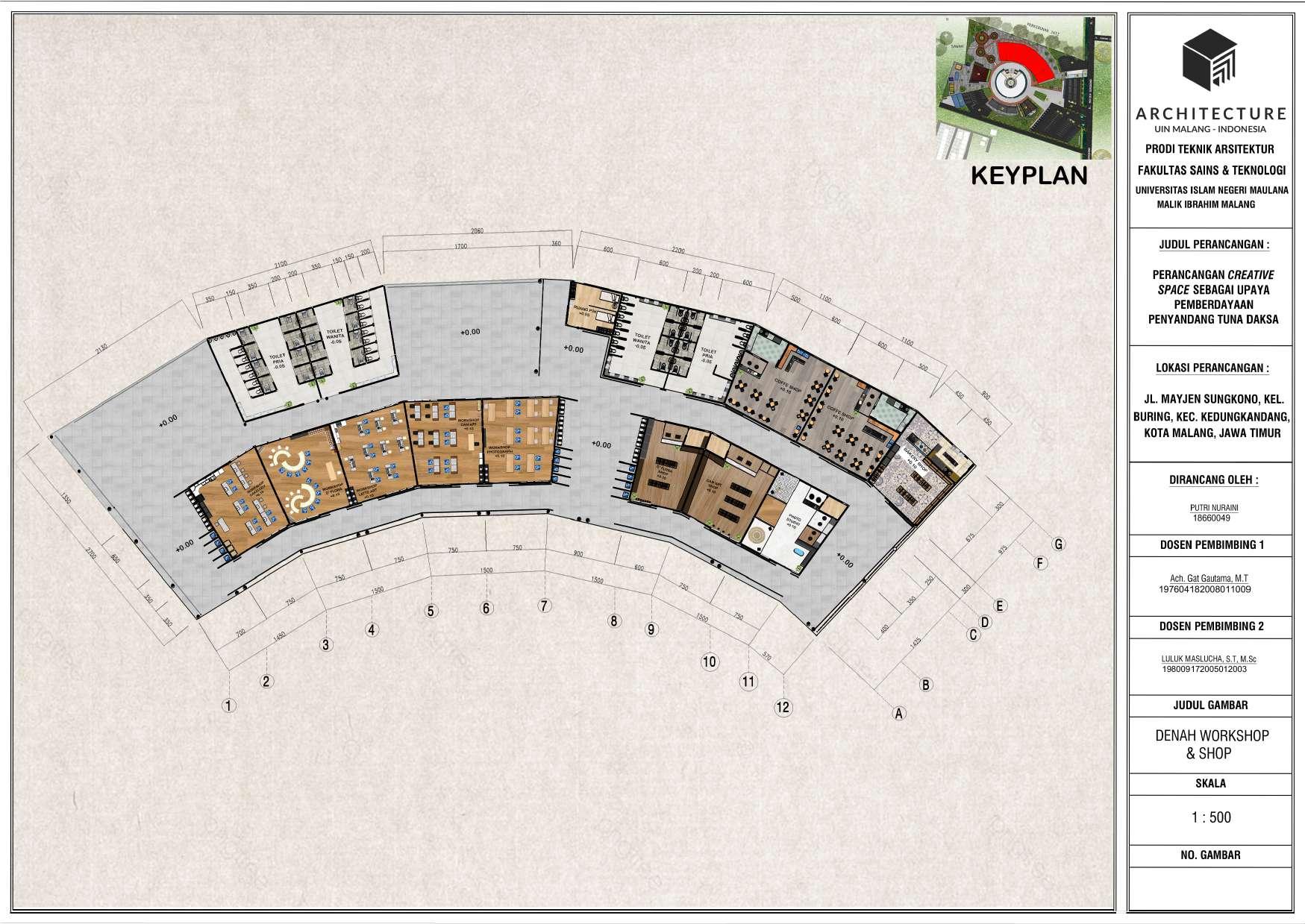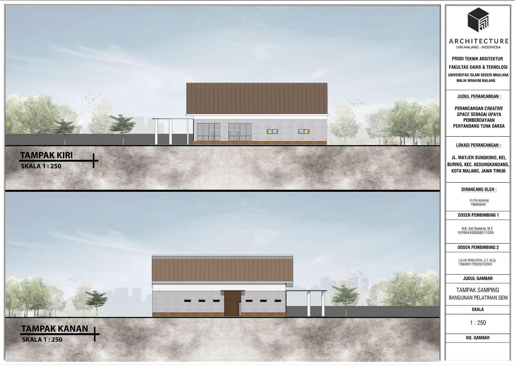 Laporan tugas akhir ini telah dipertahankan di hadapan dewan penguji dan diterima sebagai salah satu syarat memperoleh gelar Sarjana Arsitektur (S.Ars) di UIN Maulana Malik Ibrahim Malang Oleh: PUTRI NURAINI 18660049 Judul : Perancangan Creative Space sebagai Upaya Pemberdayaan Penyandang Tuna Daksa Tanggal Ujian : 16 Juni 2022 iii