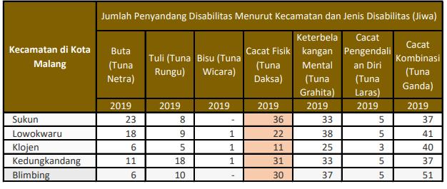 Tabel 1.2 Data Jumlah Penyandang Disabilitas Kota Malang (Jiwa), 2019 Sumber : BPS Kota Malang