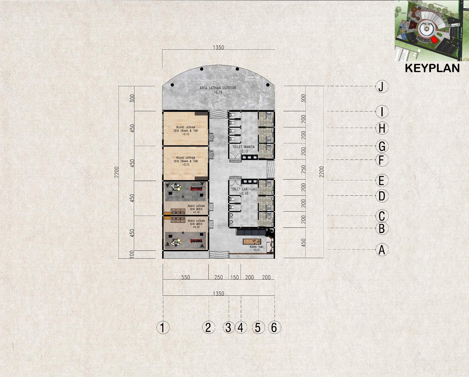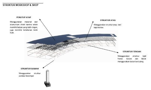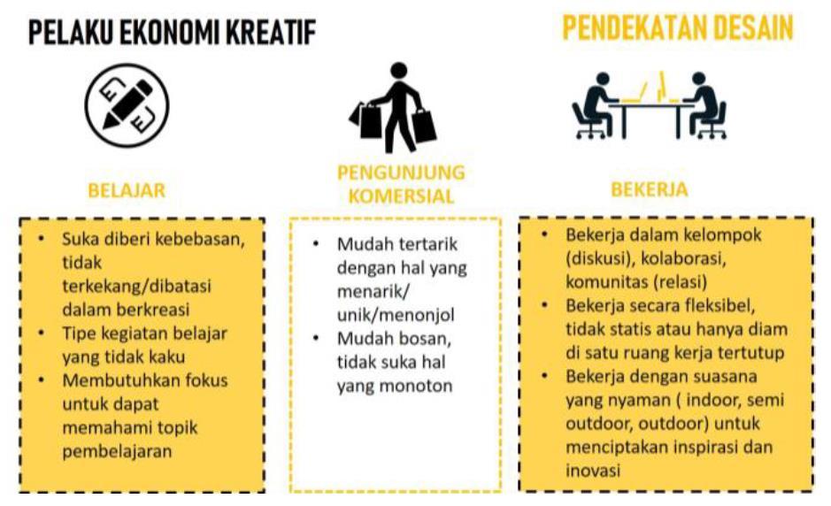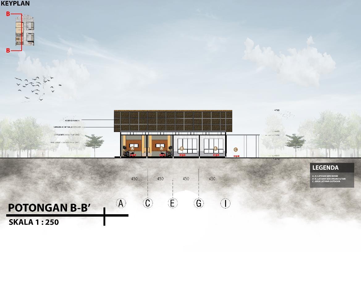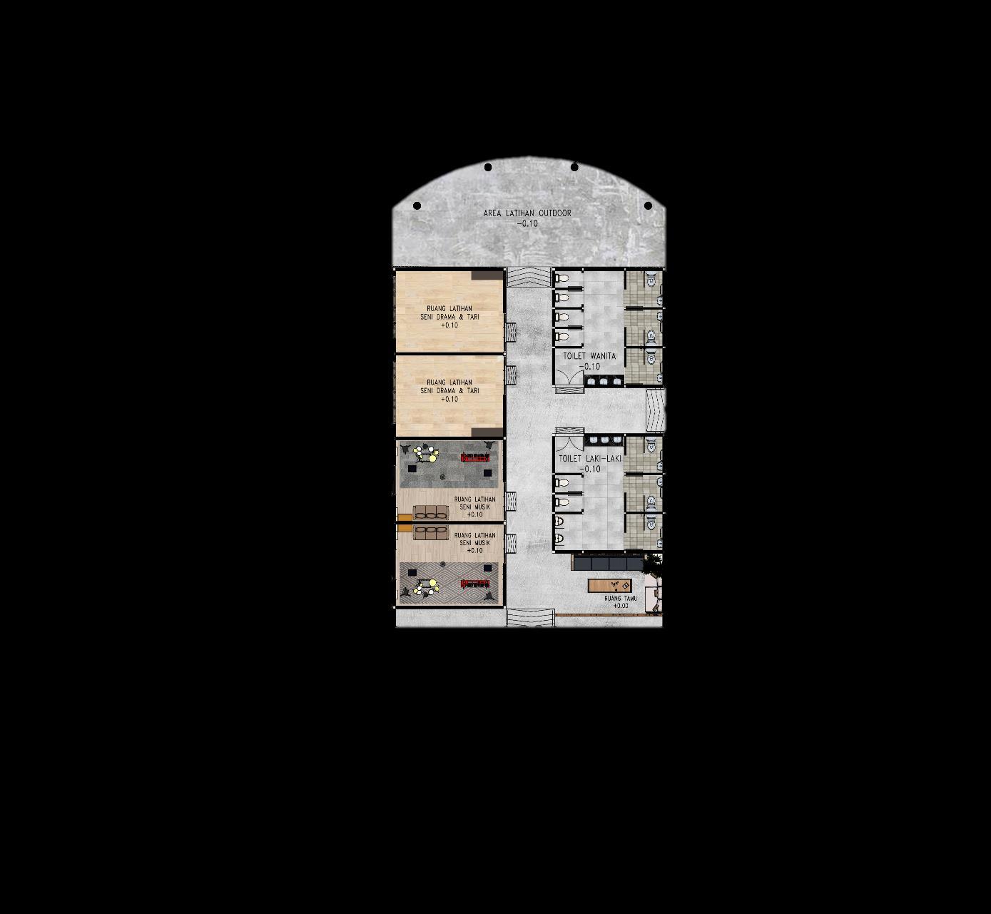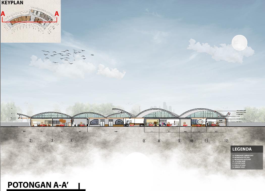 Terkait dengan fungsinya yang sebagai edukasi dan pengembangan potensi, perancangan ini mencakup workspace, tempat pengembangan pelatihan, tenant untuk mewadahi umkm, dan gedung serbaguna yang digunakan sebagai tempat pertunjukanseni maupungaleri seni.
