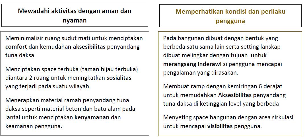 Kriteria Desain perancangan ini merupakan penerapan dari pendekatan “Arsitektur Perilaku” yang mana penyandang tuna daksa ini menjadi objek dari perancangan ini. Diharapkan melalui pendekatan ini, perancangan objek mampu mengatasi permasalahan fasilitas yang ramah terhadap penyandang disabilitas, terlebih kepada penyandangtunadaksa.