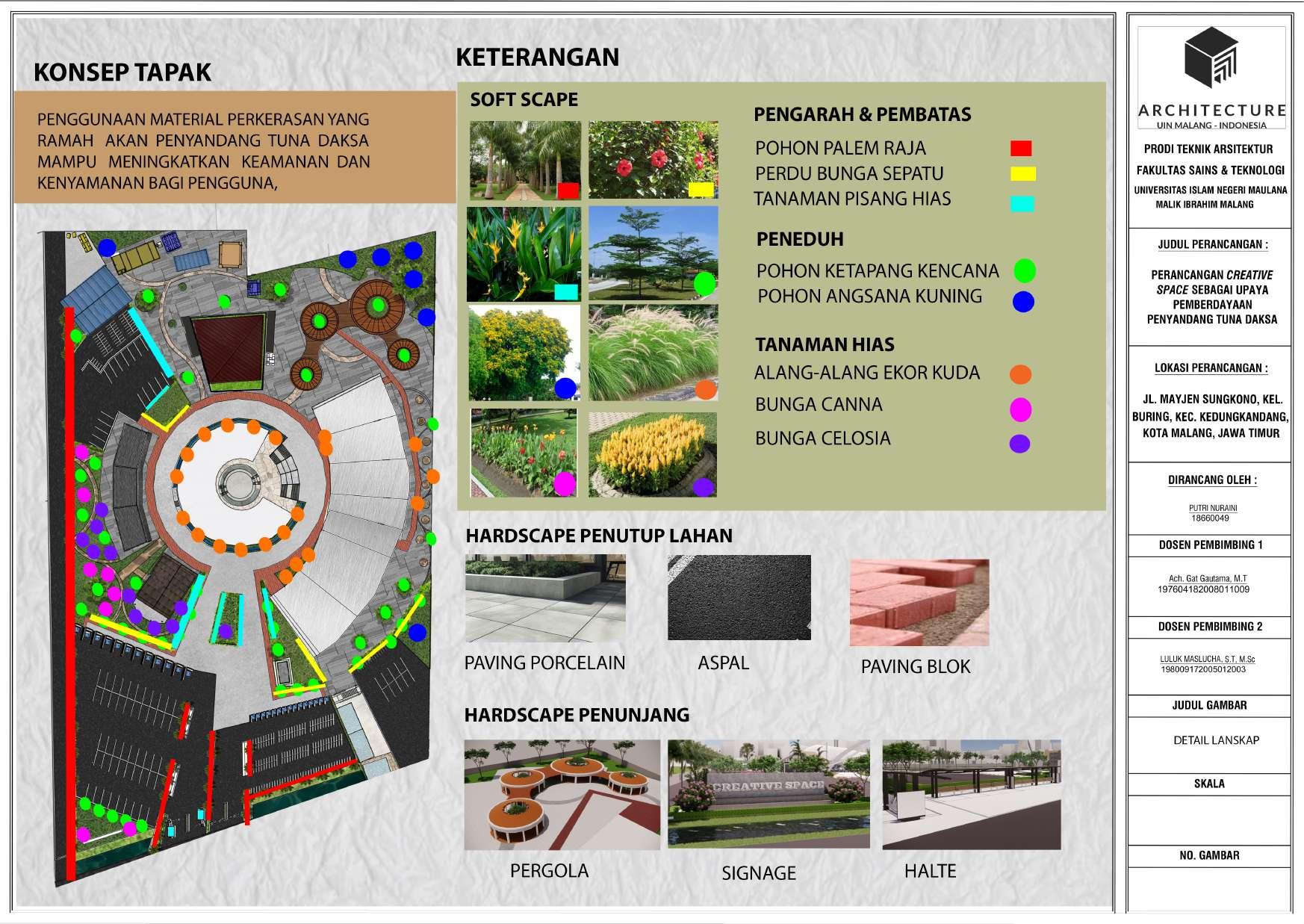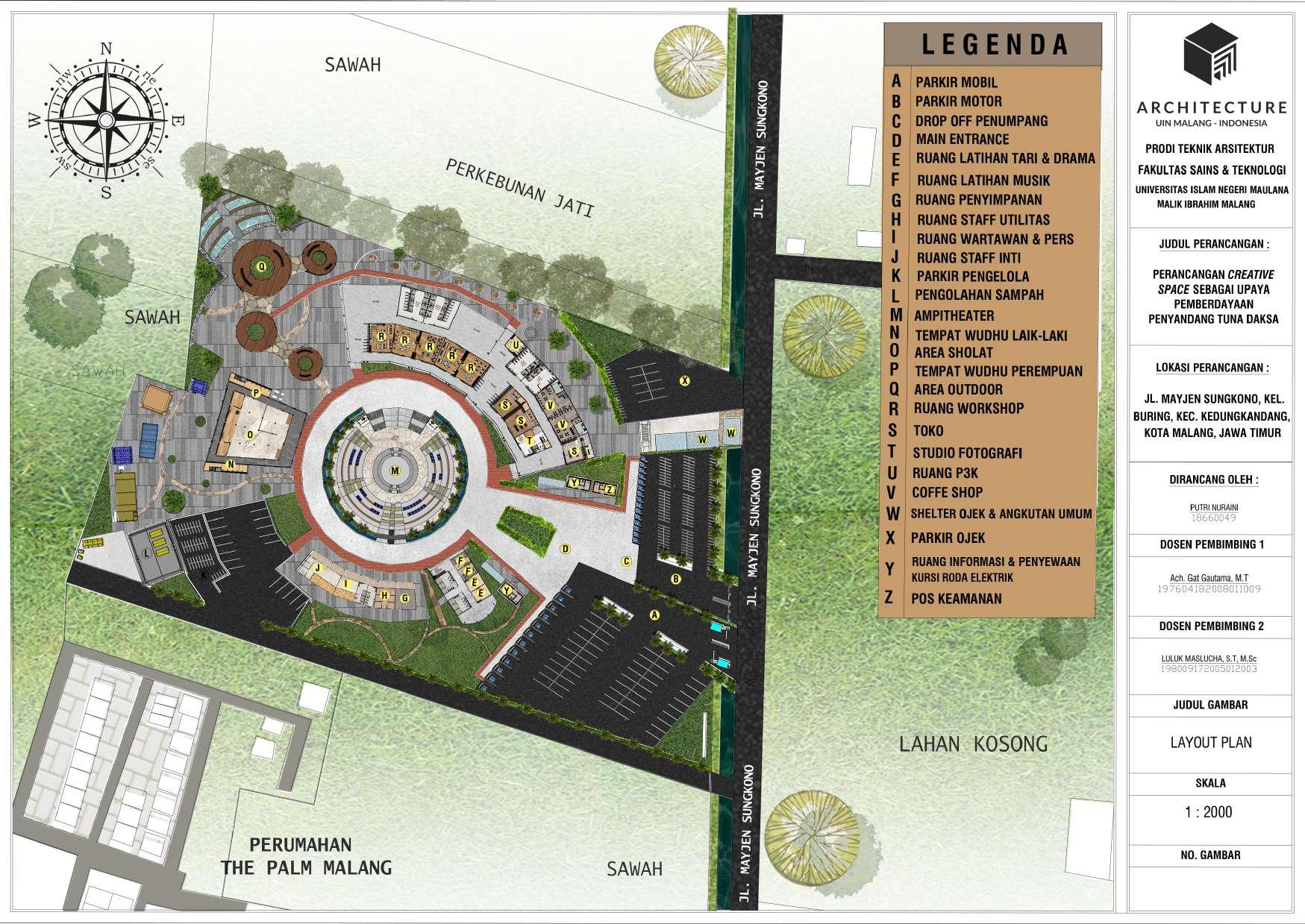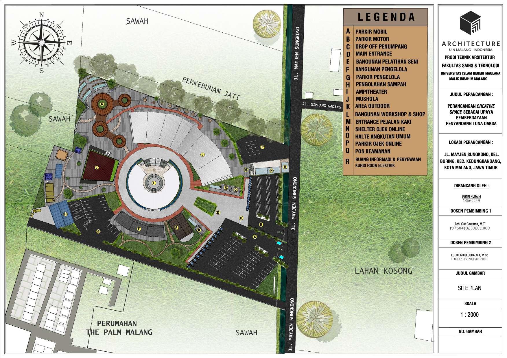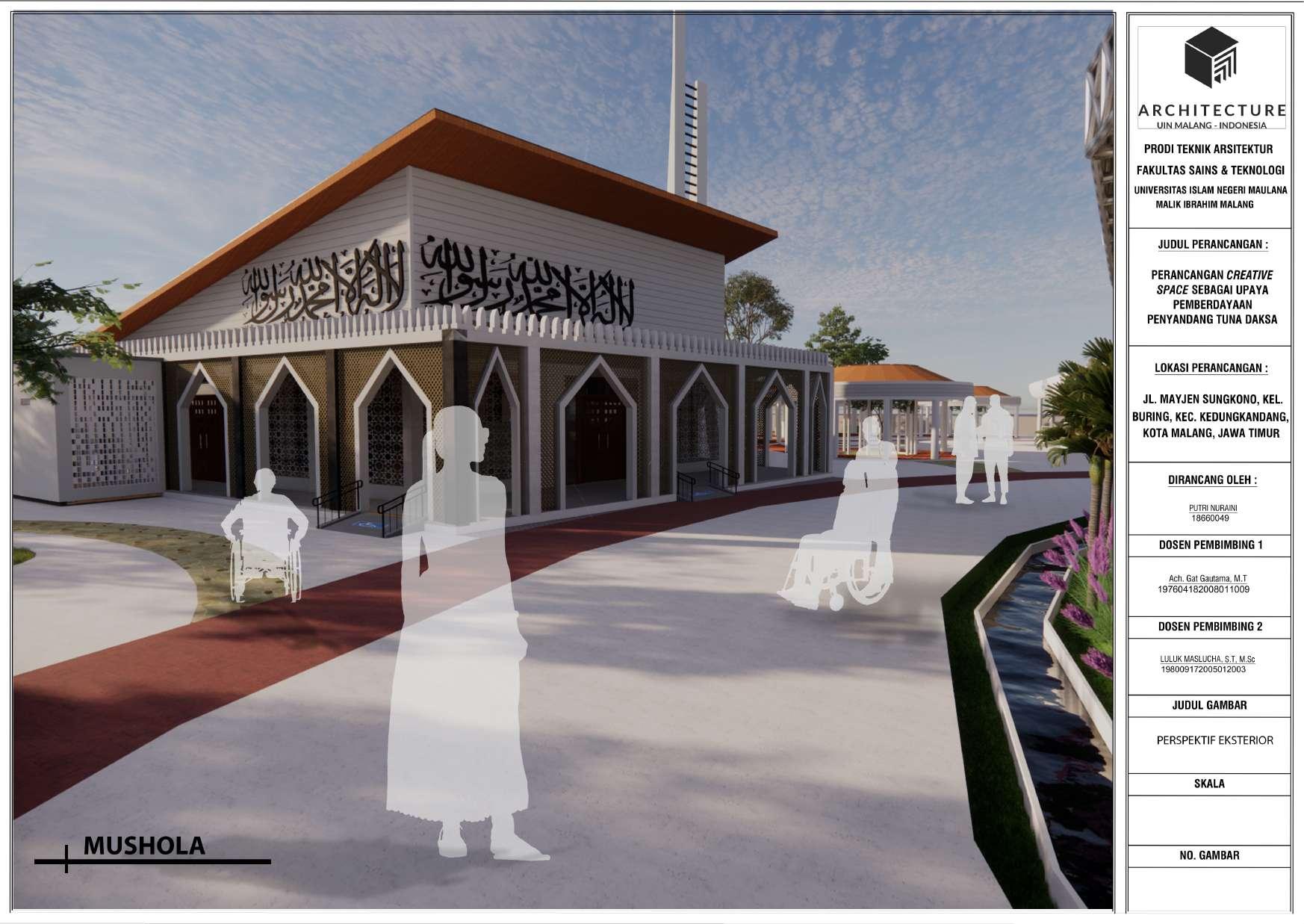 Laporan tugas akhir ini telah dipertahankan di hadapan dosen pembimbing dan diterima sebagai salah satu syarat memperoleh gelar Sarjana Arsitektur (S.Ars) di UIN Maulana Malik Ibrahim Malang Oleh: PUTRI NURAINI 18660049 Judul : Perancangan Creative Space sebagai Upaya Pemberdayaan Penyandang Tuna Daksa Tanggal Ujian : 16 Juni 2022 Disetujui Oleh : ii Perancangan Creative Space: Upaya Pemberdayaan Penyandang Tuna Daksa