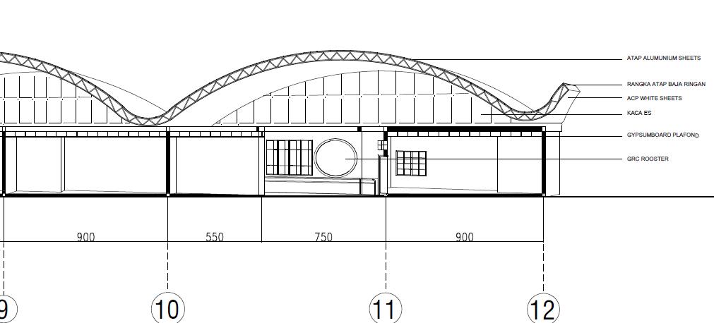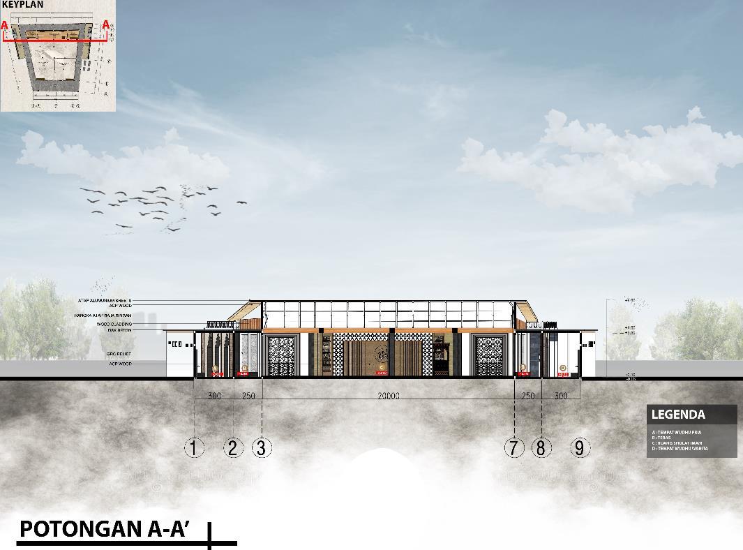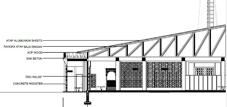 NO.GAMBAR POTONGANA-A' MUSHOLA 123 789 -0.03 +0.10 +3.50 +4.00 +6.00 ACPWOOD GRCRELIEF DAKBETON WOODCLADDING RANGKAATAPBAJARINGAN ACPWOOD ATAPBITUMEN POTONGANA-A' AA