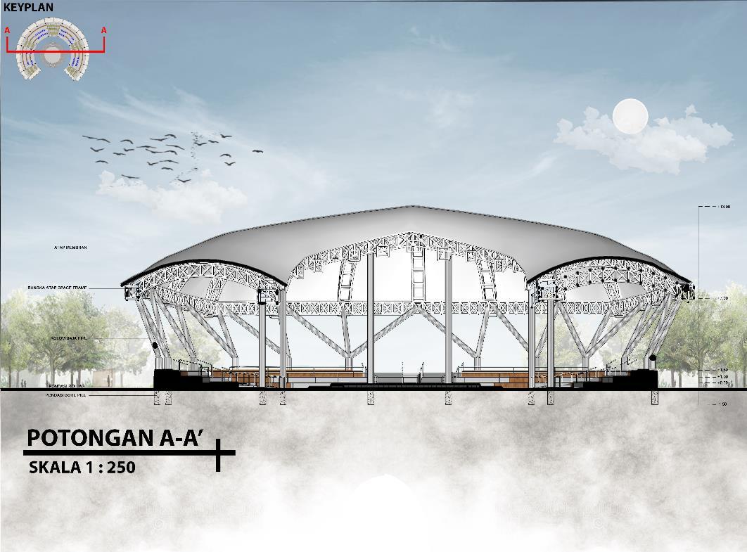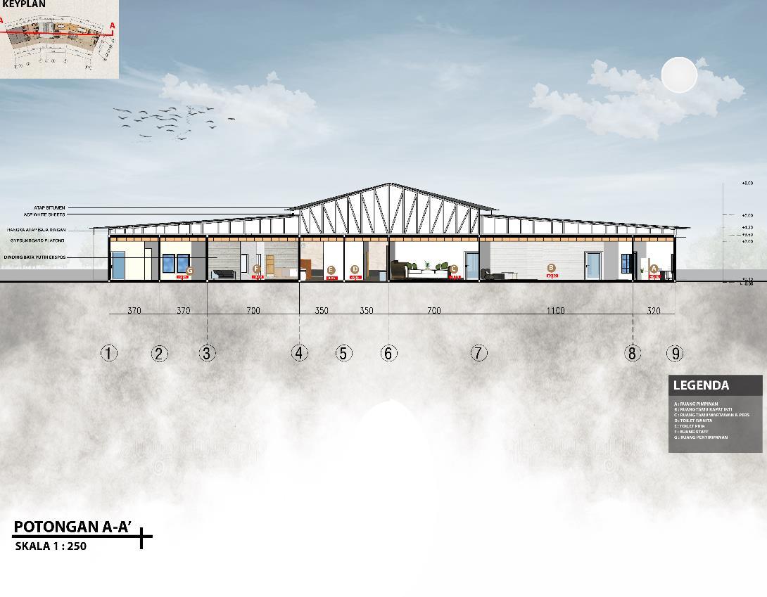 JUDULPERANCANGAN: LOKASIPERANCANGAN: JL.MAYJENSUNGKONO,KEL. BURING,KEC.KEDUNGKANDANG, KOTAMALANG,JAWATIMUR NO.GAMBAR POT.A-A'BANGUNAN PELATIHANSENI +0.00-0.10 +4.00