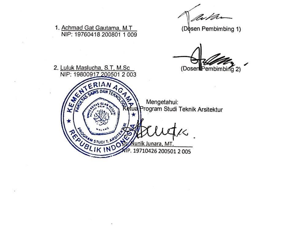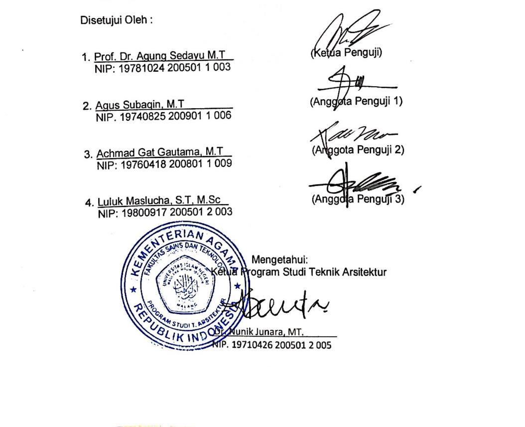 3. Dr. Nunik Junara, MT, selaku Ketua Program Studi Teknik Arsitektur UIN Maulana Malik Ibrahim Malang