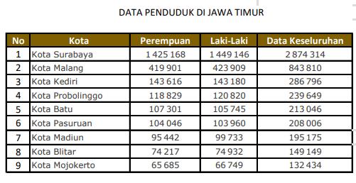 Tabel 1.1. Data Jumlah Penduduk Provinsi Jawa Timur (Jiwa), 2020