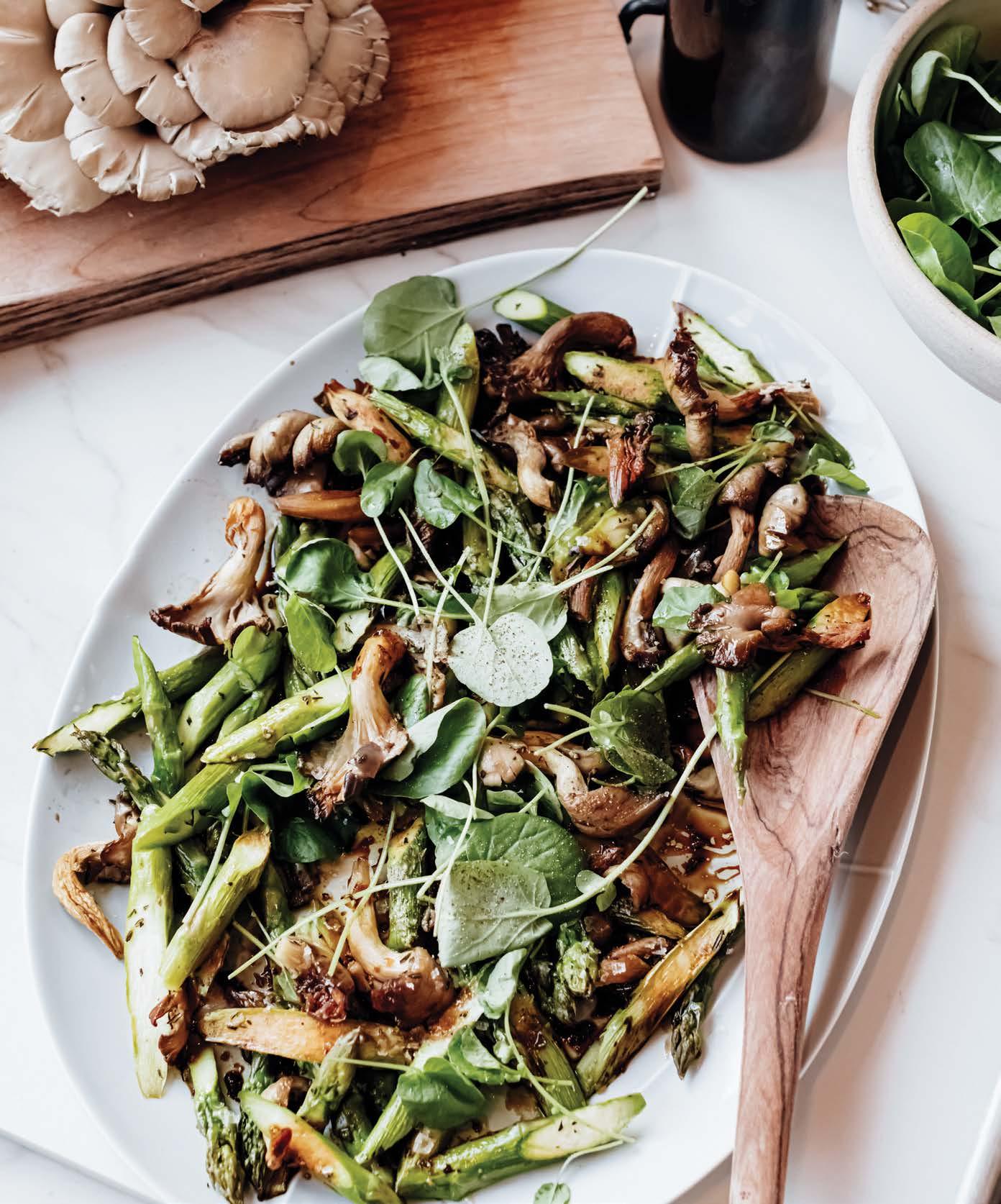 Roasted Asparagus & Mushrooms with Cress & Balsamic