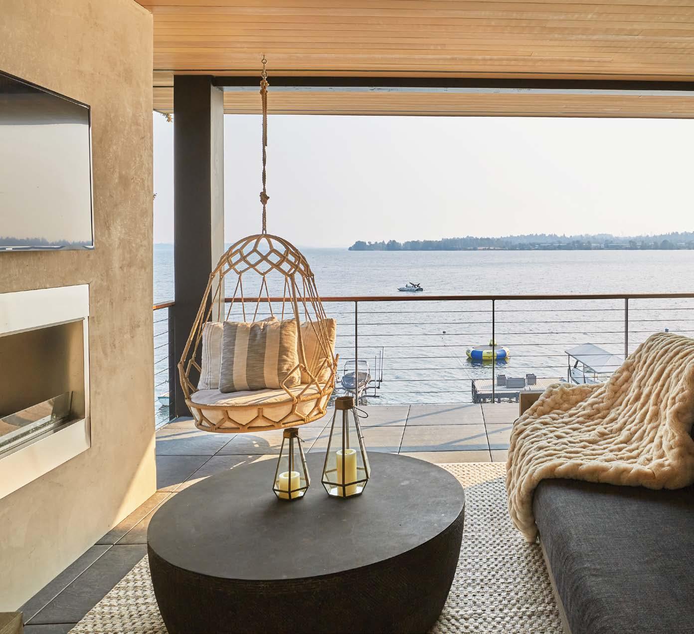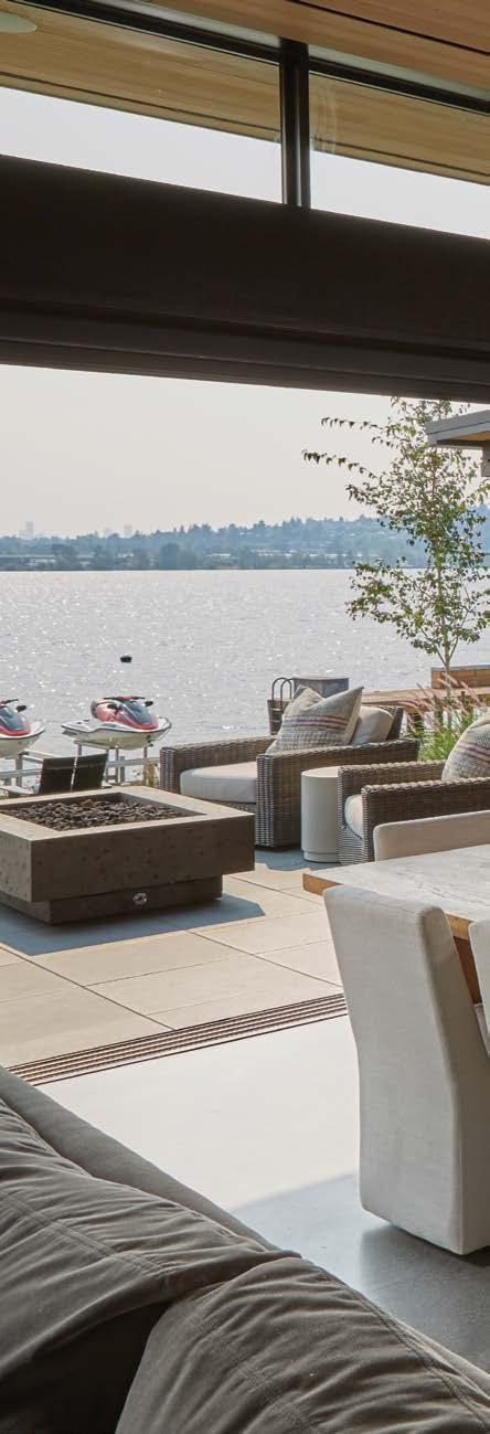 Vanillawood outfits a waterfront Lake Oswego bungalow with natural light, custom furnishings and finishes, and multiple outdoor spaces for enjoying lakeside life.