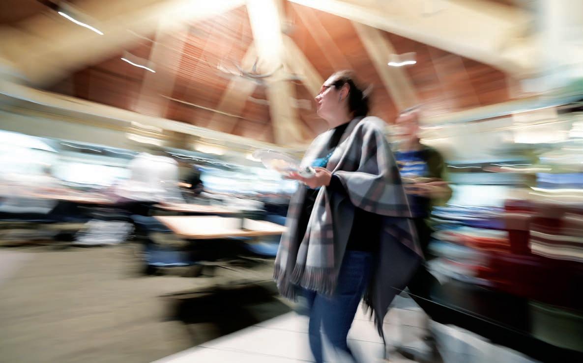 Dr. Adina Frantescu, coordinator of international student services and global citizenship, negotiates the busy dining hall.
