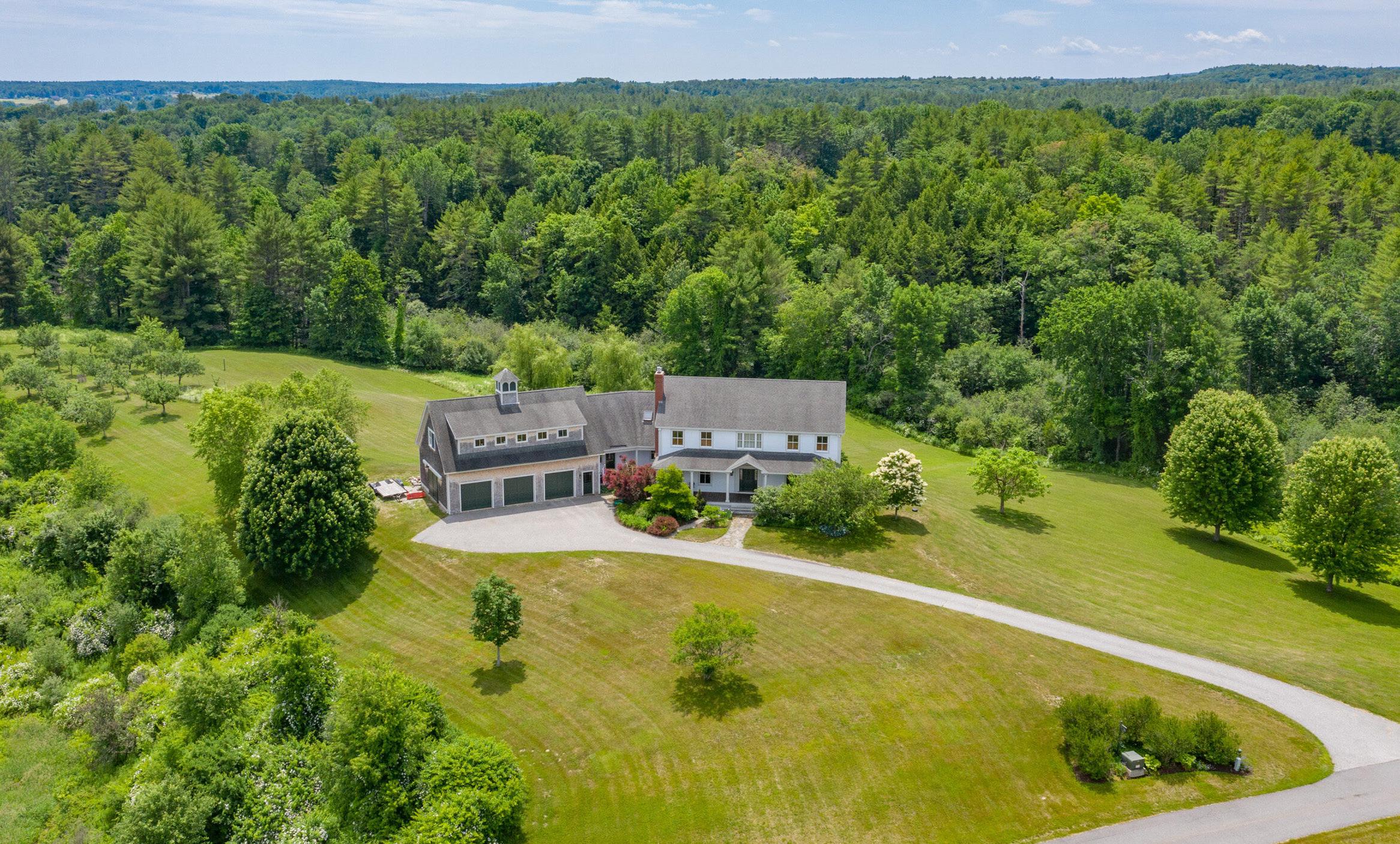 Extraordinary property designed and built by Houses and Barns by John Libby with great attention to fit, finish and detail. A private and secluded elevated site with views of Old Speck and the White Mountains. Open and truly versatile living spaces with opportunities for home schooling and multi-generational living including a private in-law apartment. True timber frame post and beam barn with cupola, a grand open second floor, 5 car heated garage spaces, fully ADA compliant, 3 level elevator, 20KW generator, central a/c and all situated on a 45-acre lot only minutes to Bradbury Mountain. A rare offering.
