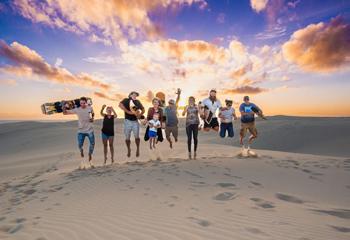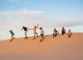 Our Unlimited Sandboarding Tours are the perfect mix of excitement, laughter and a whole lot of fun for all ages. Ride in our custom 4WD buses across the breathtaking Worimi Conservation Lands, then slide, squeal, and zoom down the sandy slopes, creating memories that will last a lifetime.