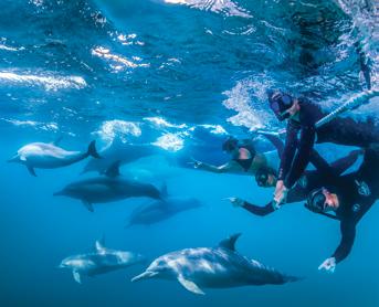 Have you ever dreamt of swimming with WILD dolphins? Dolphin Swim Australia’s tour takes place in the open ocean for 4 hours of adventure! Our swimmers enter the water and can get up close and personal with inquisitive and energetic oceanic dolphins. The dolphins come so close to the swimmers it is like being a part of their pod! Swimming with wild dolphins truly is a ‘bucket list’ experience and Dolphin Swim Australia provides this adventure like no other!